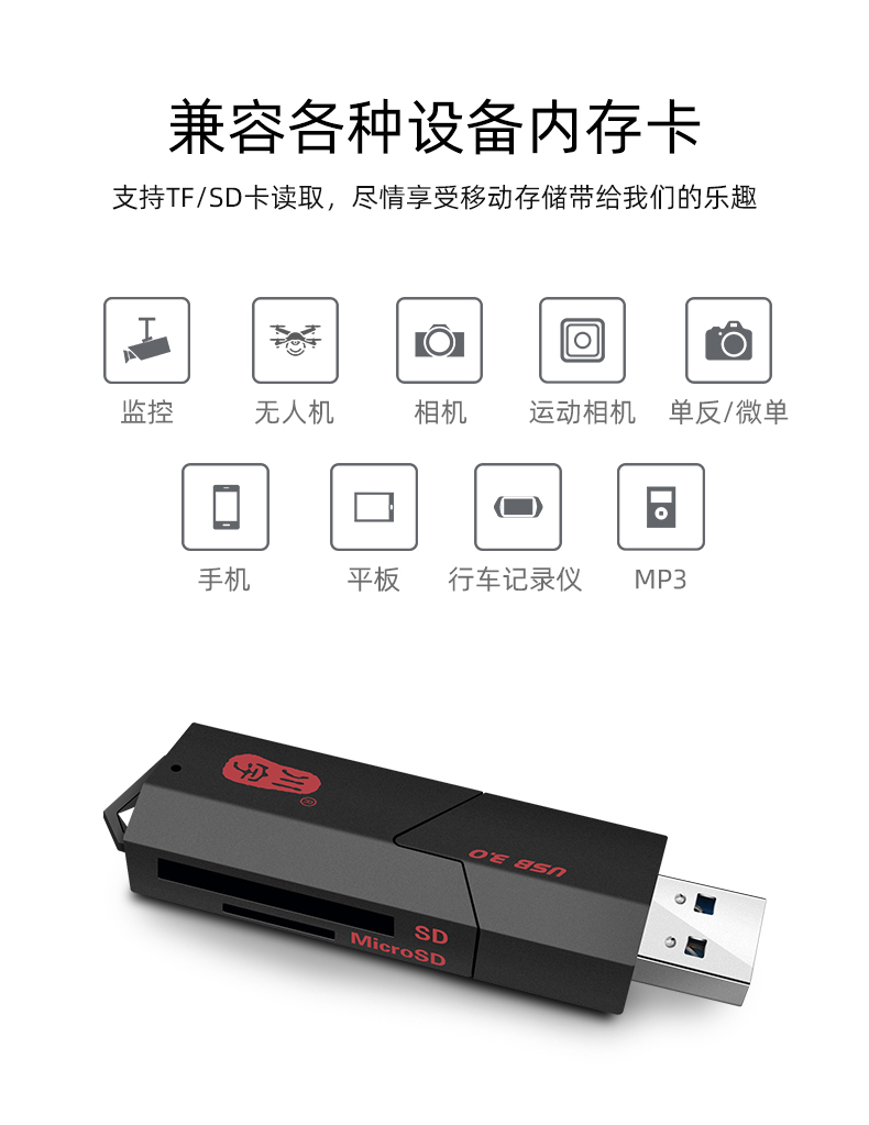 【满两件送卡套】支持TF/SD卡,USB2.0高速传输。兼容多种设备,可分别读取SD/TF卡,轻松满足你的读卡需求,【七天无理由退货】