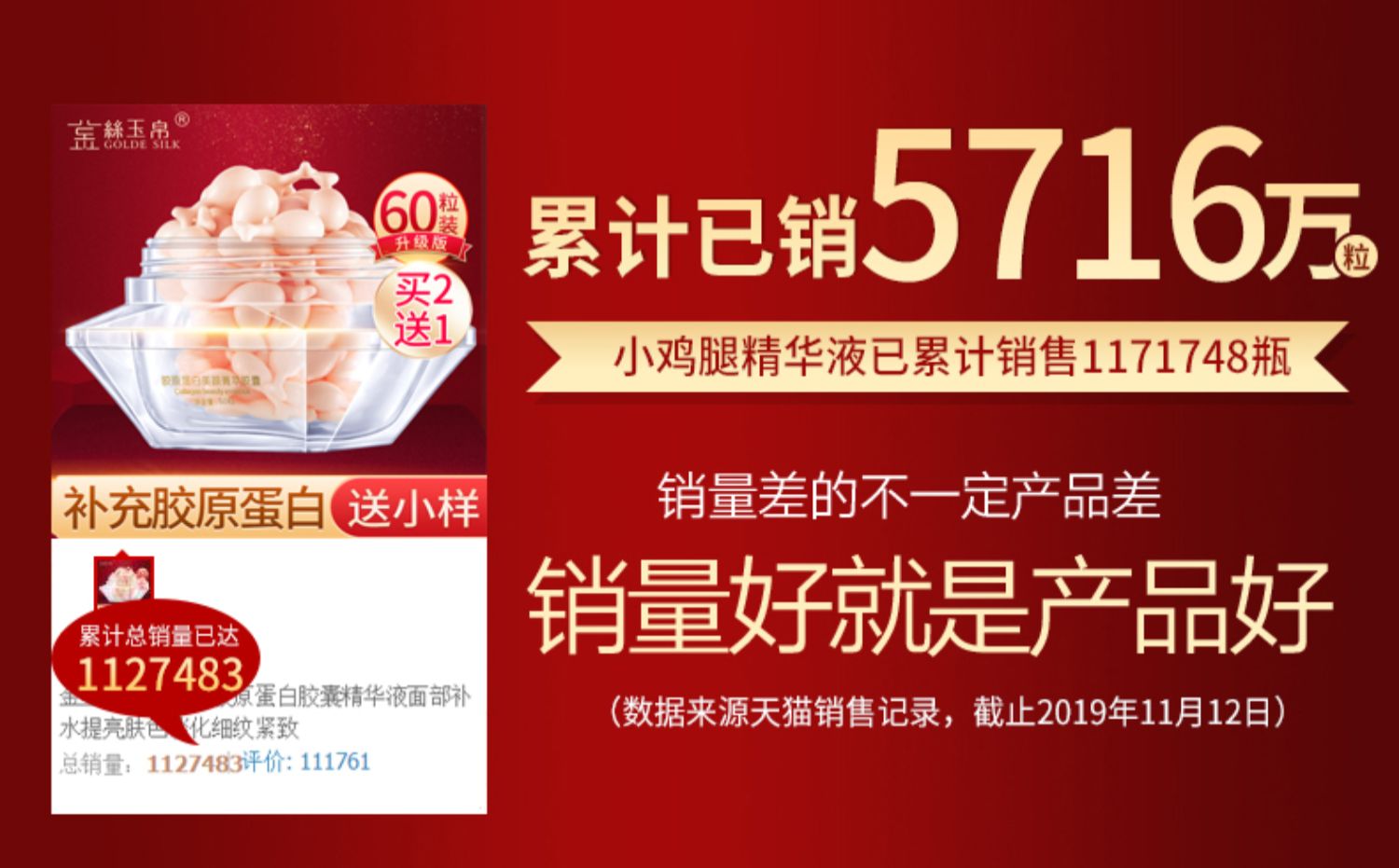 4.9高评,7W+好评!杨丞琳代言的,金丝玉帛小鸡腿精华液!线下专卖店上千家,累计销量5716w粒,上过CCTV,等各大卫视,不仅补水保湿,亮肤色,还能淡皱纹,敷出水嫩肌肤!