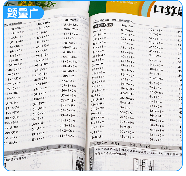 【每天100道/共10000道】每天一页,100道口算计时训练、坚持打卡,家长批改,记录孩子的用时、正确率,孩子改错,每日都有收获!活动价5.8元,宝妈速抢~【赠运费险】