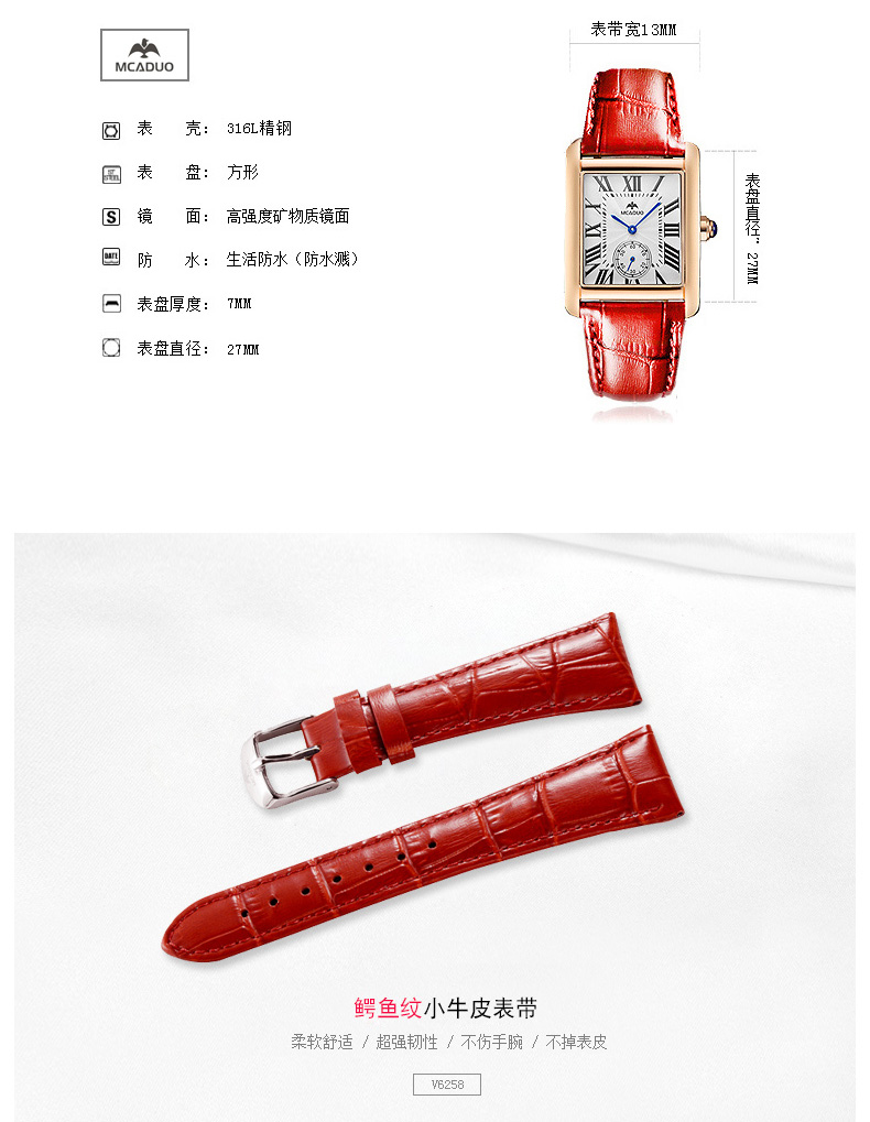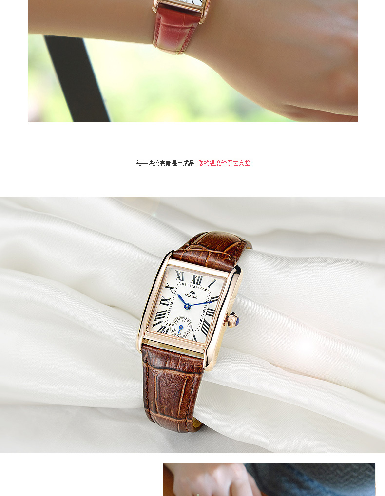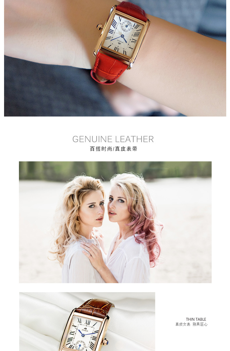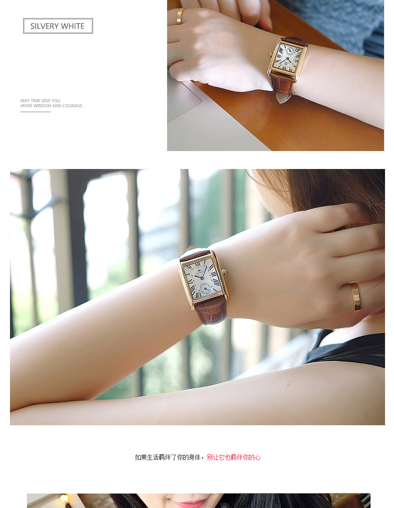极速发货,专属礼盒套装,代写贺卡,免费专属刻字,进口机芯,真皮表带,复古潮流方形女士腕表,方表盘显手瘦,有型有范!【赠运费险】