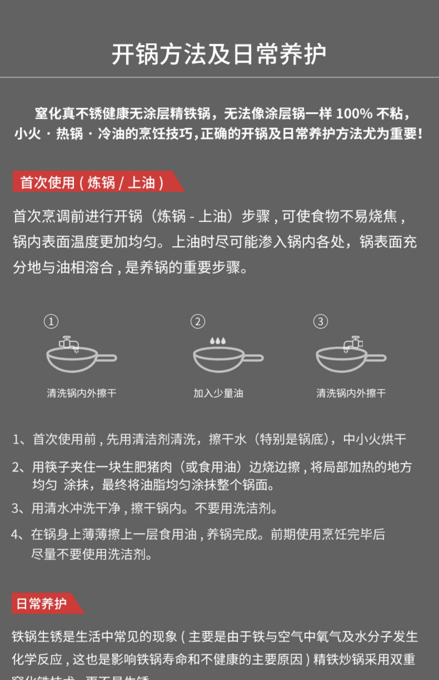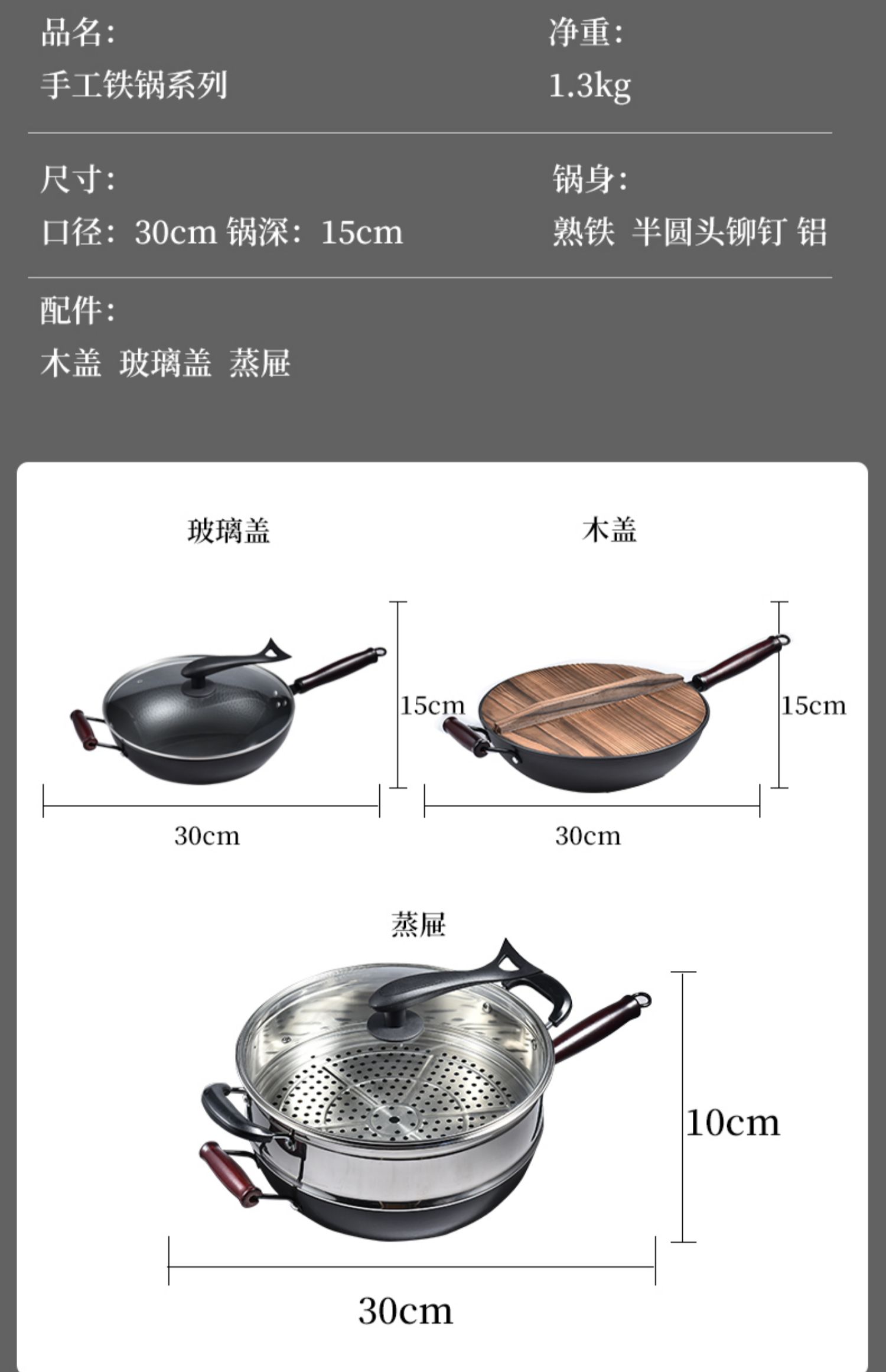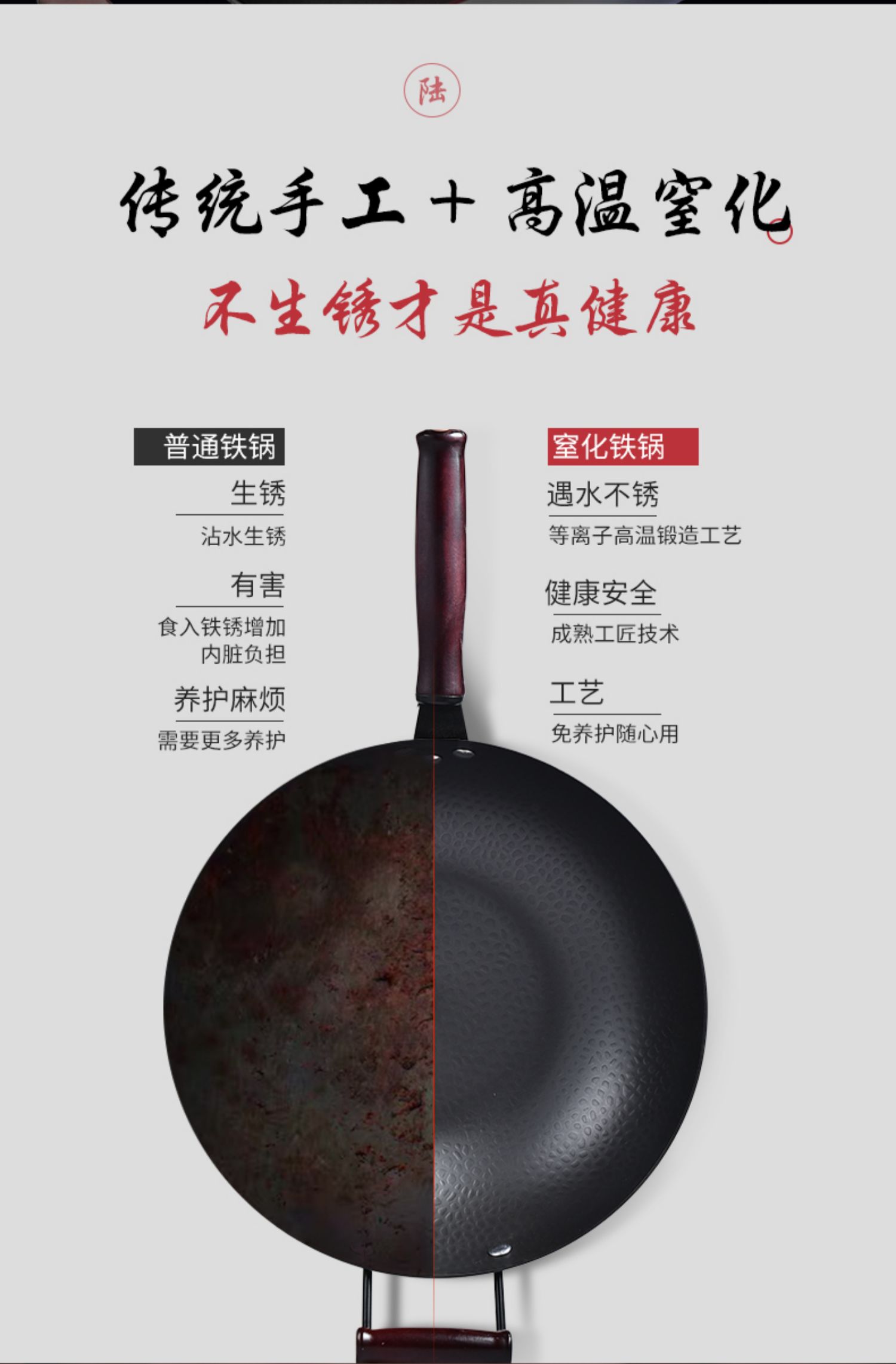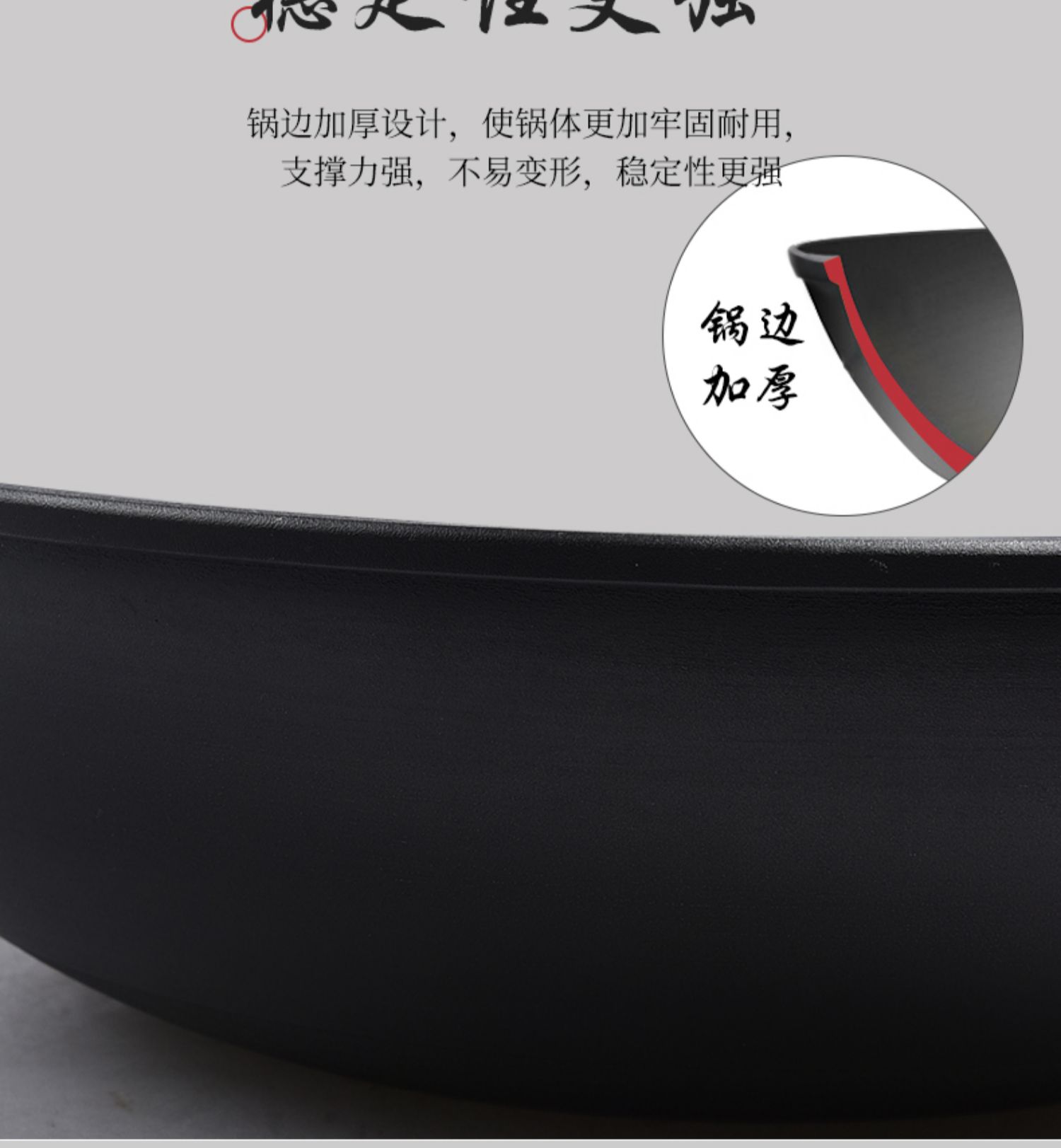 精选优质生铁铸造成型,拒绝涂层健康补铁,不生锈不易粘,健康少油烟,铁铲随便翻,让爆炒更痛快!电磁炉燃气灶通用哦