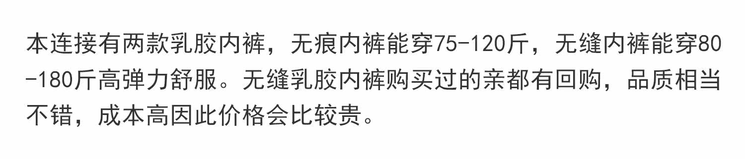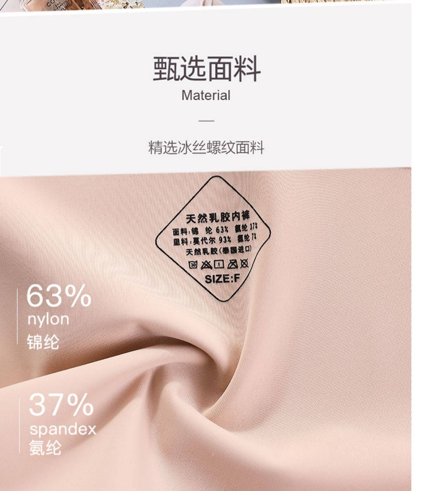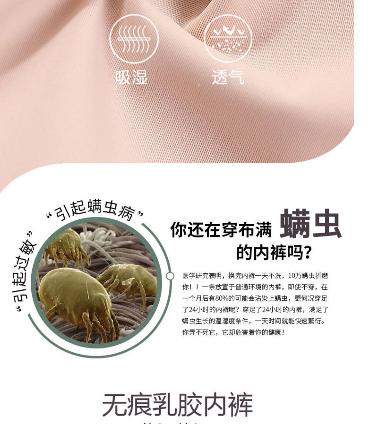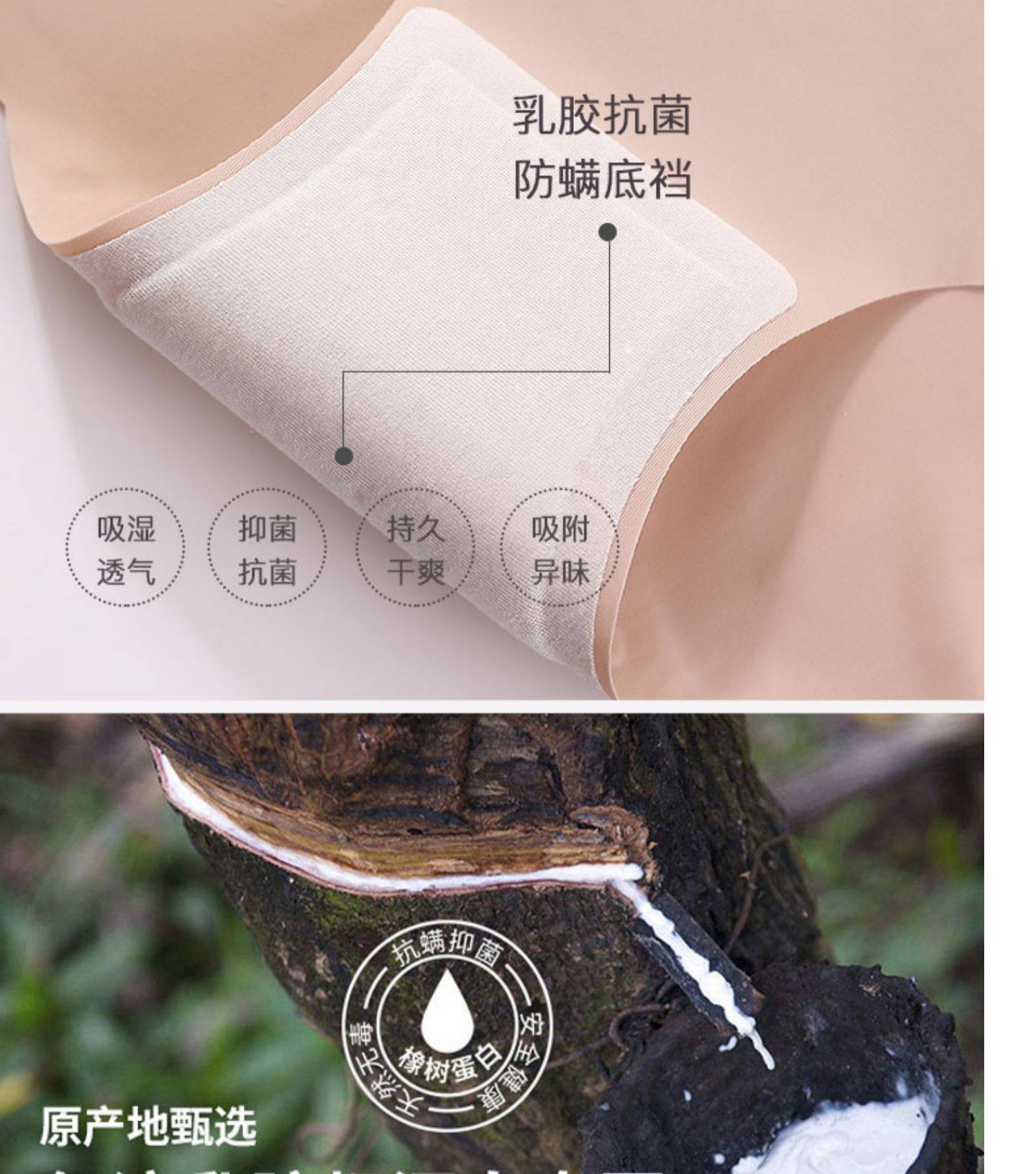 【百人验货!满满好评】内裤底裆为泰国天然乳胶,抑菌率高达99%,天然蜂巢气孔透气防潮,真正感受到“私处会呼吸”!一片式冰丝无痕,爱上这种“裸穿”的感觉,满满好评,谁穿谁知道.
