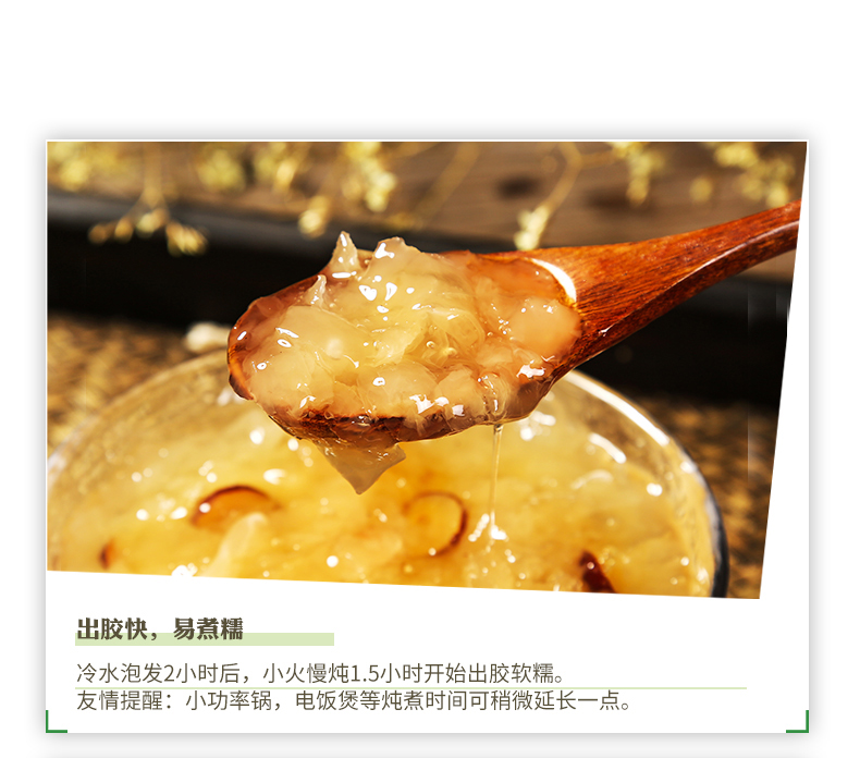 纯天然新鲜无硫,手工采摘,大朵不碎,色泽金黄~胶质浓稠,口感软糯香甜,祛斑养颜,纤维减肥,营养丰富,吃出来的美味~