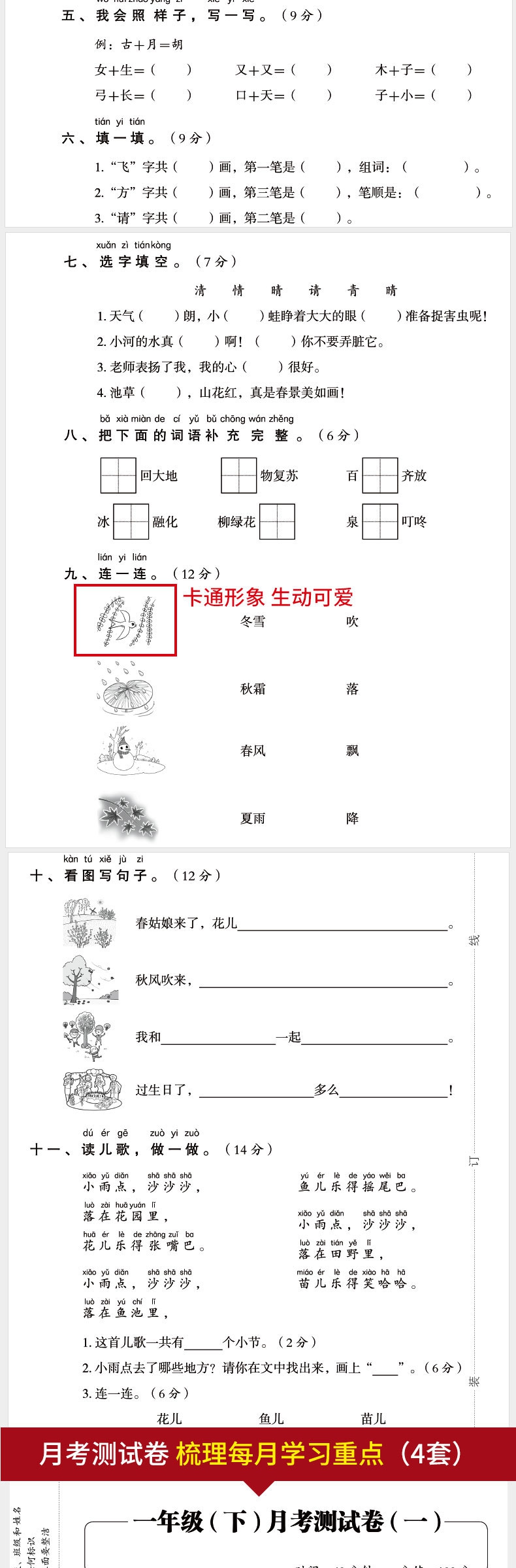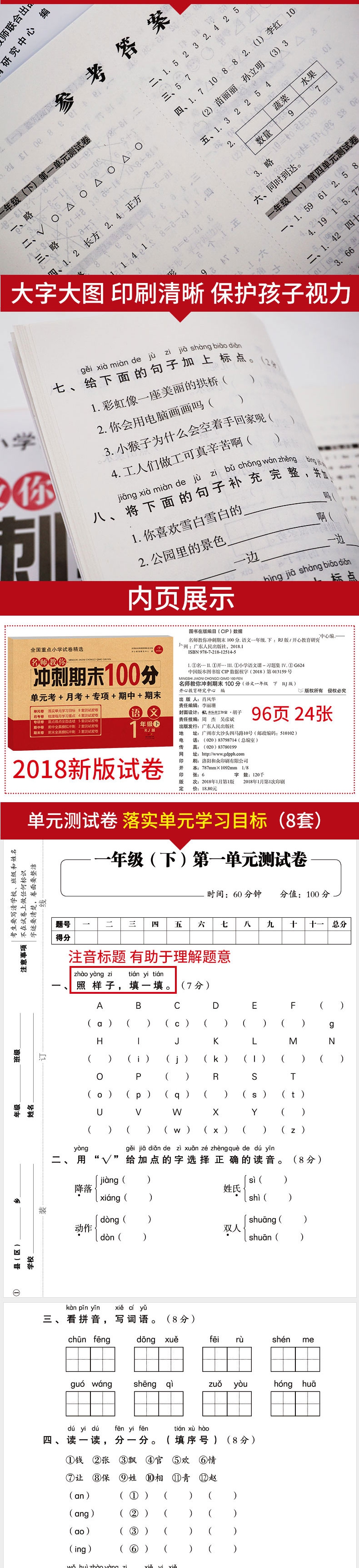 新版一年级下册数学语文试卷来了 仅需8.8,满分带回家 语文+数学,名师带你学 题型丰富,内容全面,轻松考双百