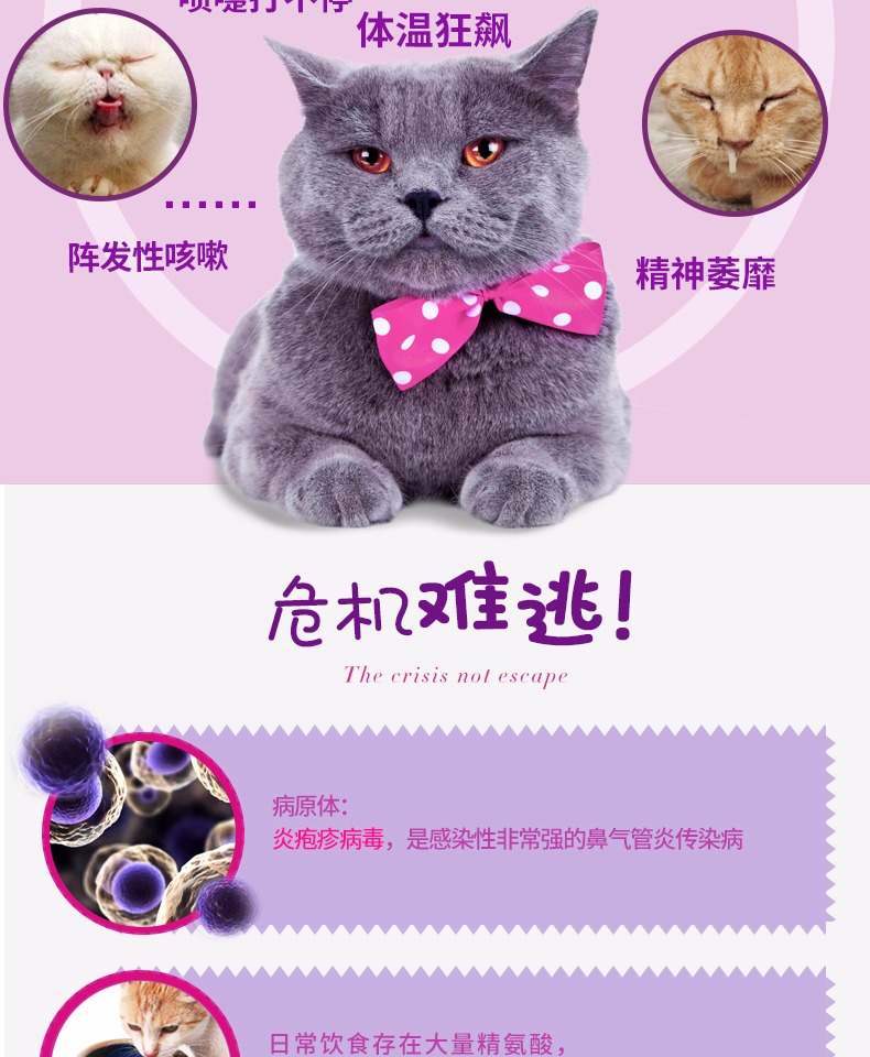 天猫正品,品质保证,猫咪专用,富含牛磺酸,治疗,打喷嚏,流泪,感冒,流鼻涕。
