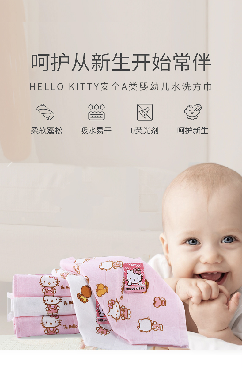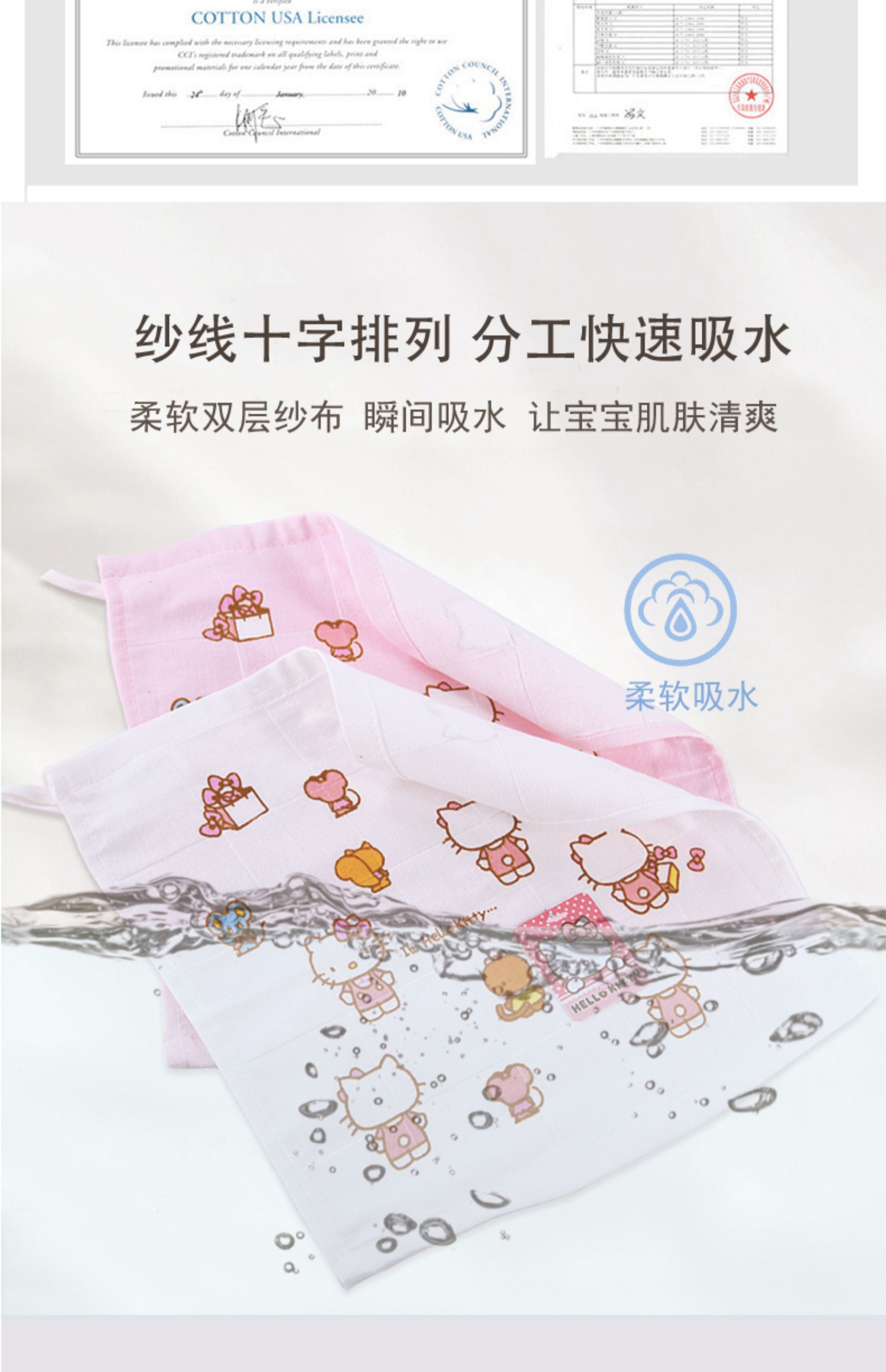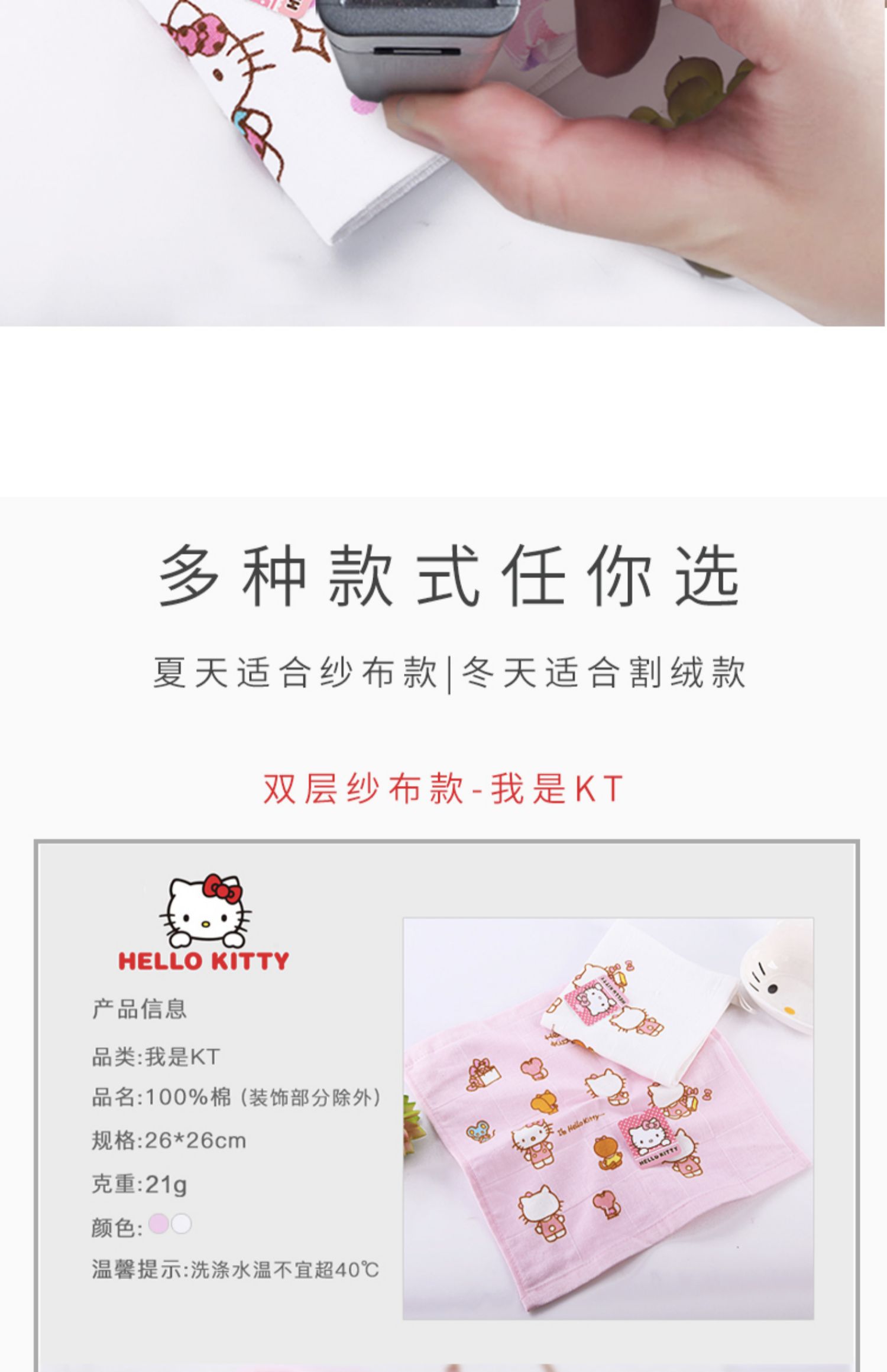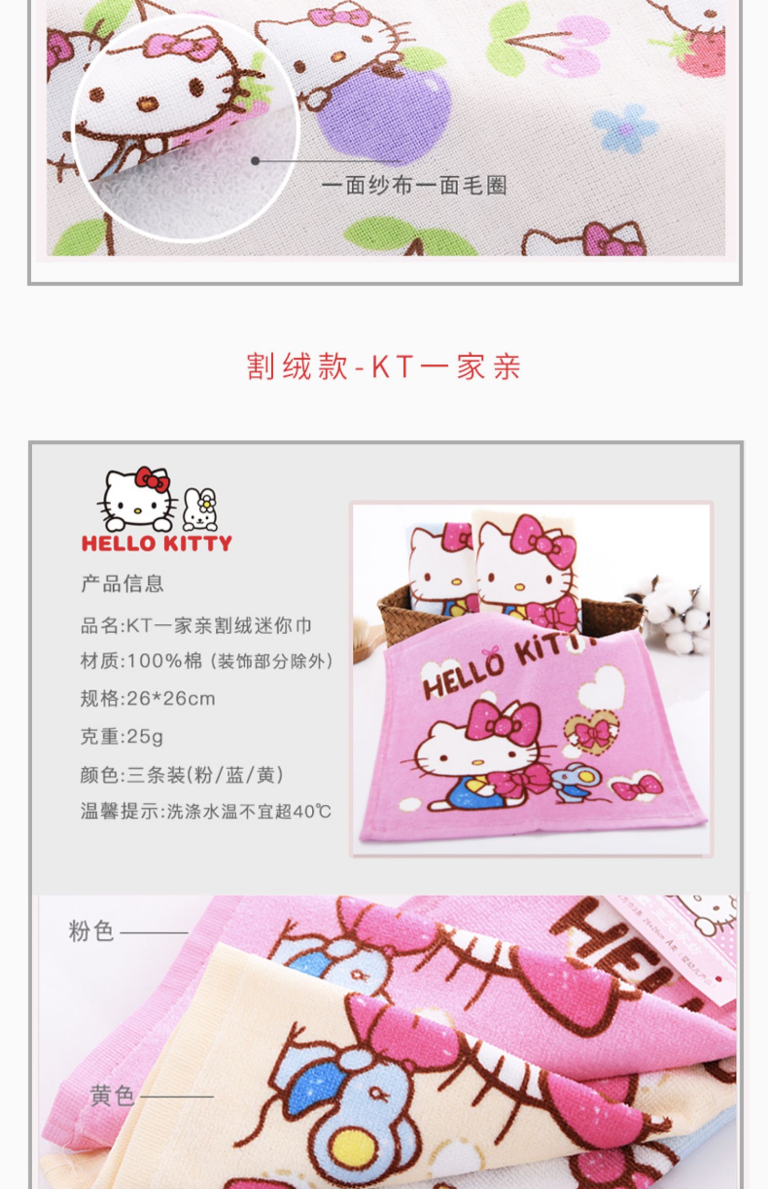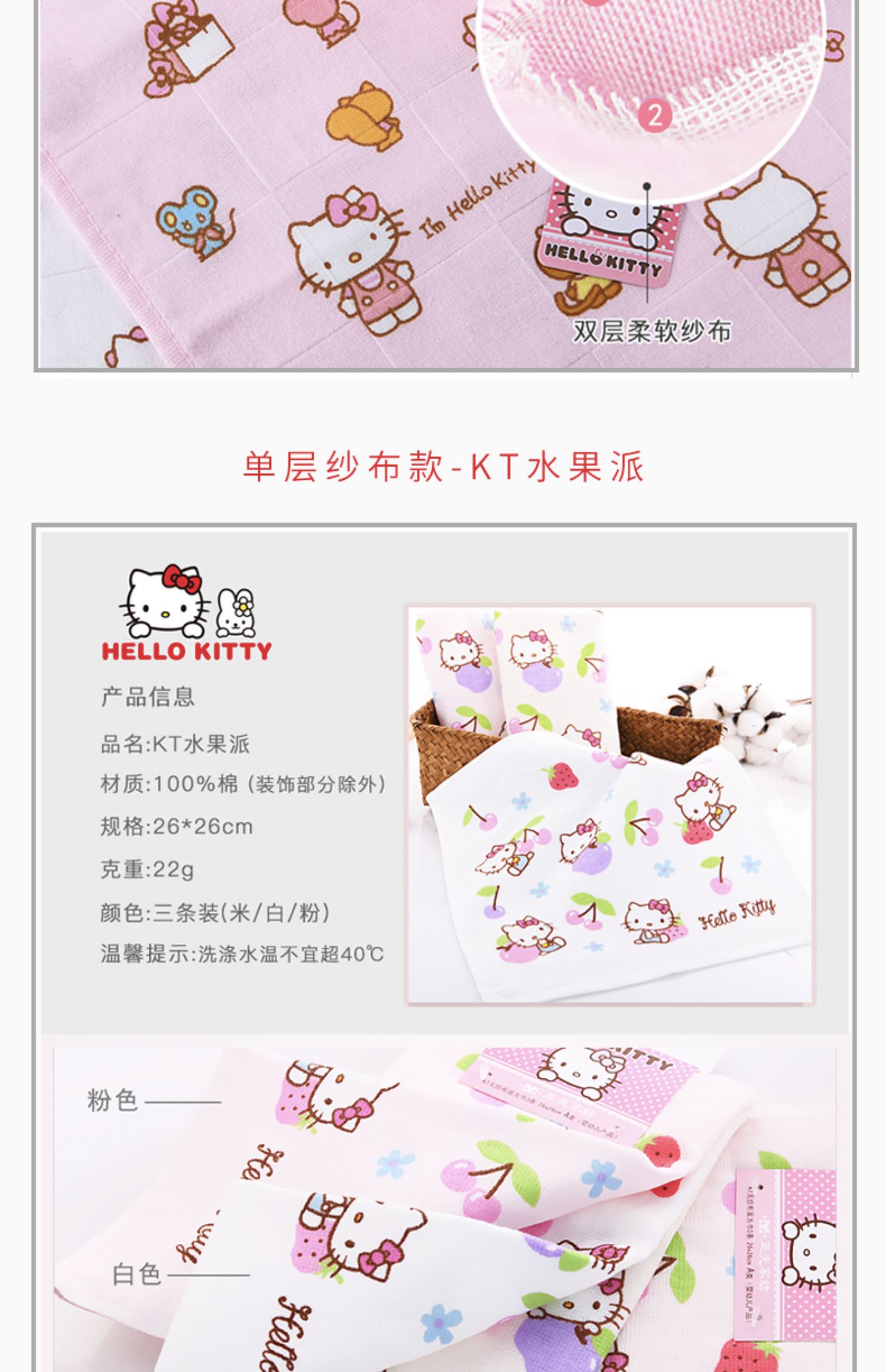 【3条装】亚光helloKitty系列安全A类方巾,精选全国无污染优质棉花,棉花全年日照长达3000多小时,手感饱满柔软吸水快,轻薄易干,便于携带好看且实用,孩子和大人都喜欢!