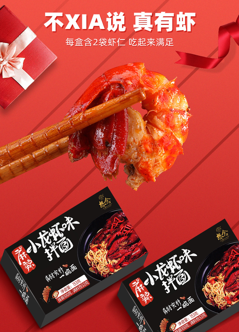想念麻辣小龙虾拌面,不xia说,真有虾!真材实料,面条筋道,入口爽滑,独立包装,鲜香十足,爆辣鲜美!