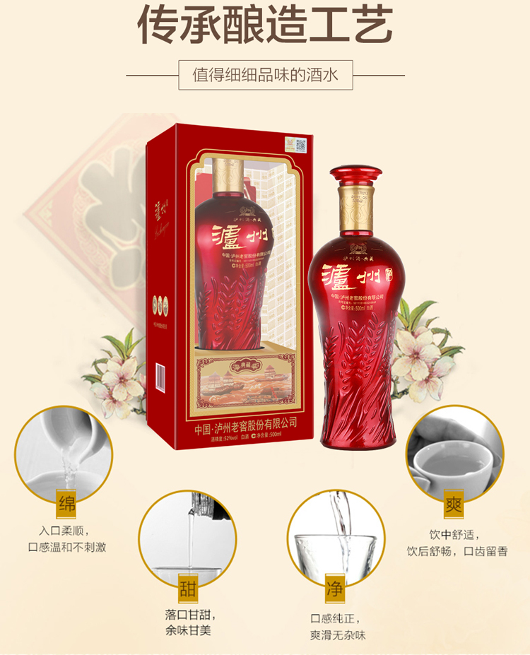 【下单就送3只礼品袋】泸州老窖泸州典藏白酒52度,传承酿造,入口柔顺,落口甘甜,口感纯正,饮后舒畅,自喝有品位,送礼结婚都是不错的选择。【赠运费险】