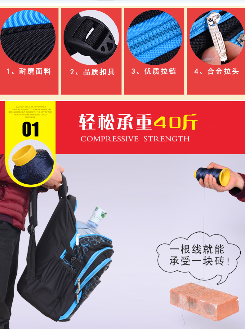 专为1-6年级学生设计,高品质轻便减负,分层易分类,高密度纺织面料,防水耐磨易刷洗,多色多码可选【运费险】