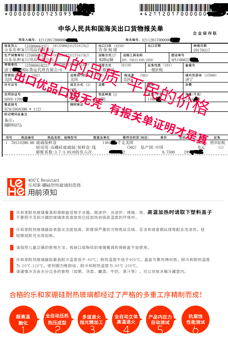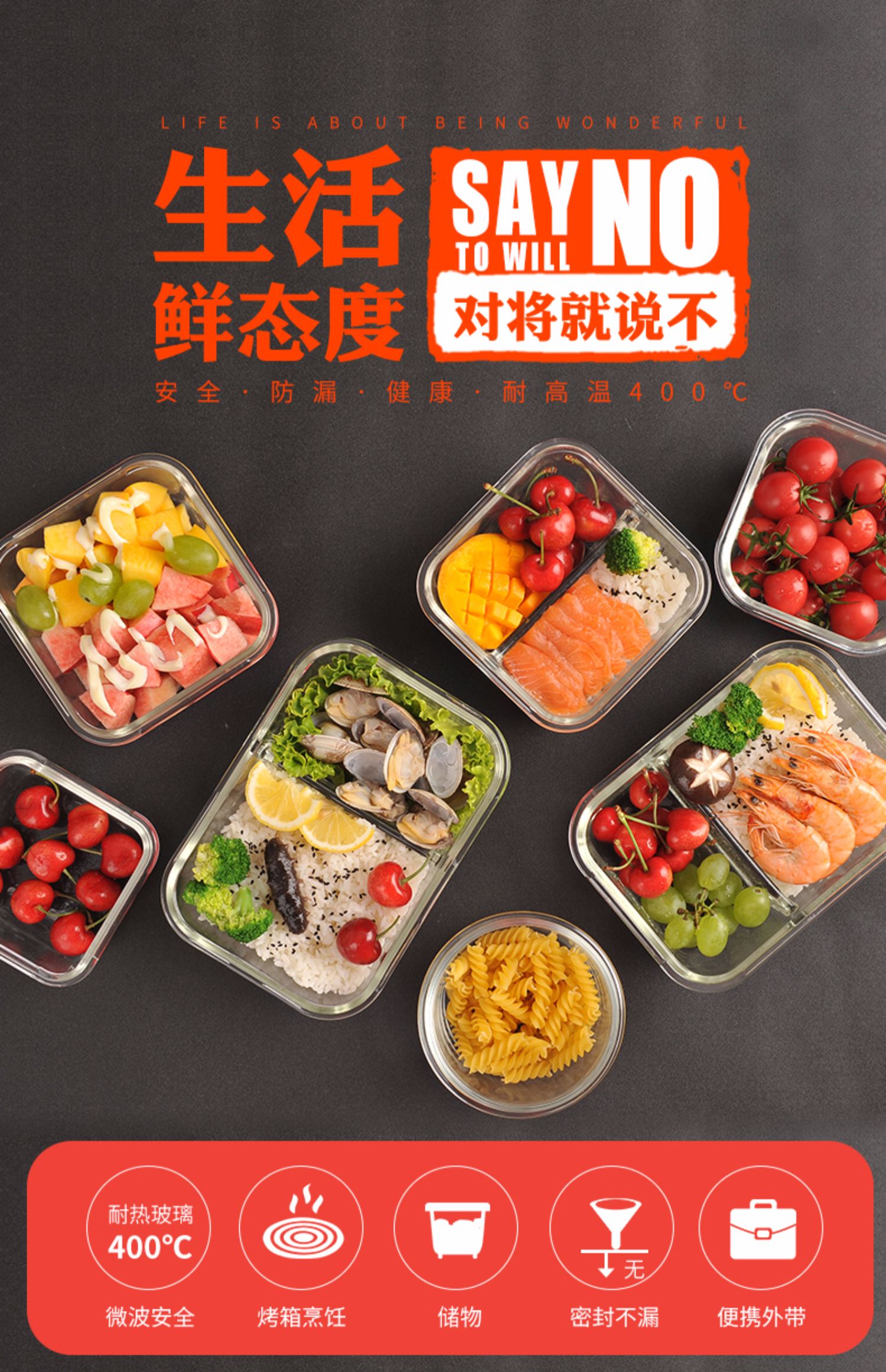 出口欧美日韩28国,食品级高硼硅玻璃,耐温差-20°C至400°C,安全环保无毒,硅胶密封防漏,保证食品完美营养!【赠运费险】