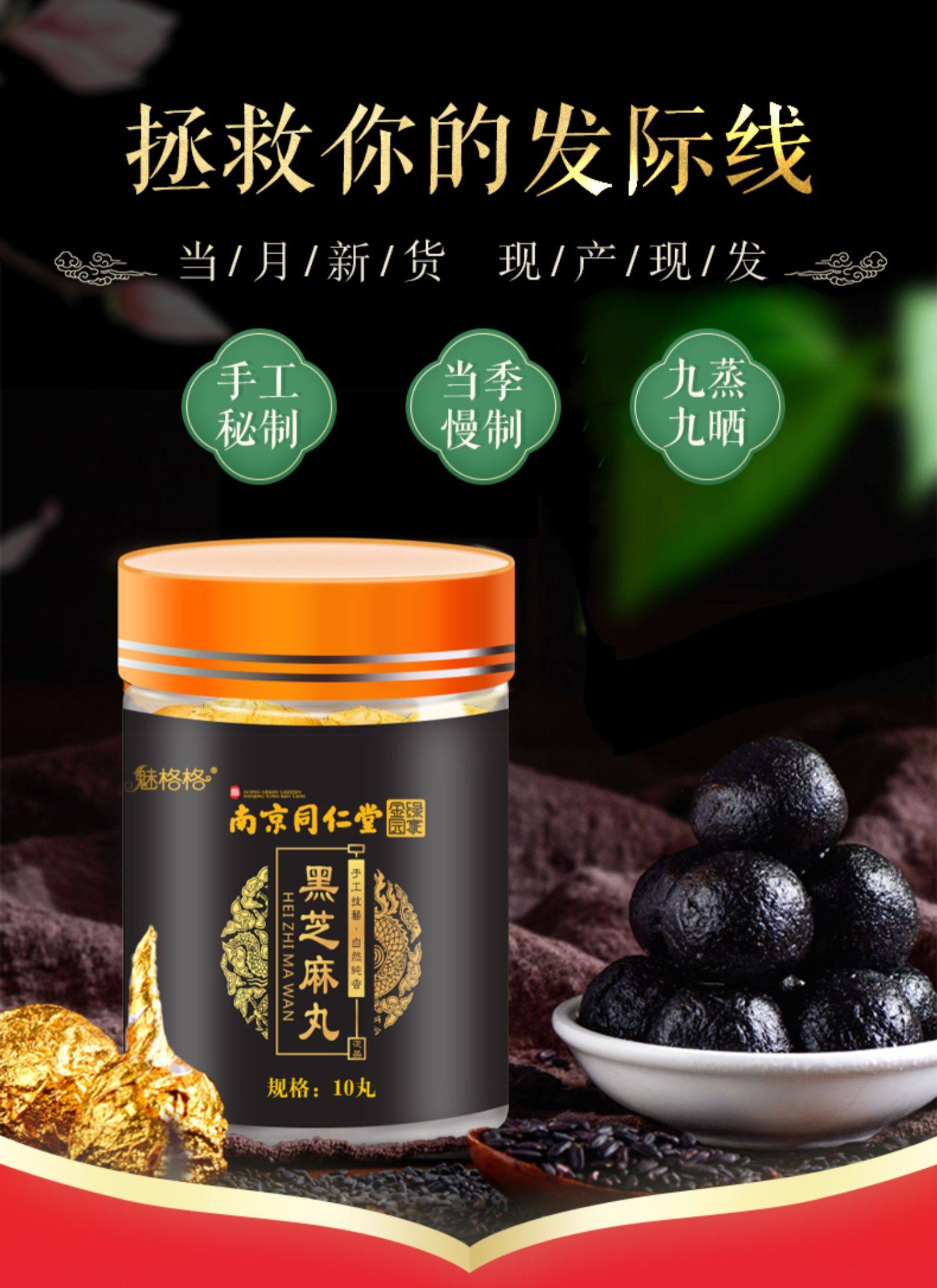 【拍两件第二件0.8元】非常火爆的同仁堂芝麻丸,九蒸九晒,古法传承,手工技艺,天然滋养,每天来一颗,食补乌发,补肝肾,治失眠,营养非常全面,男女都通用哦!