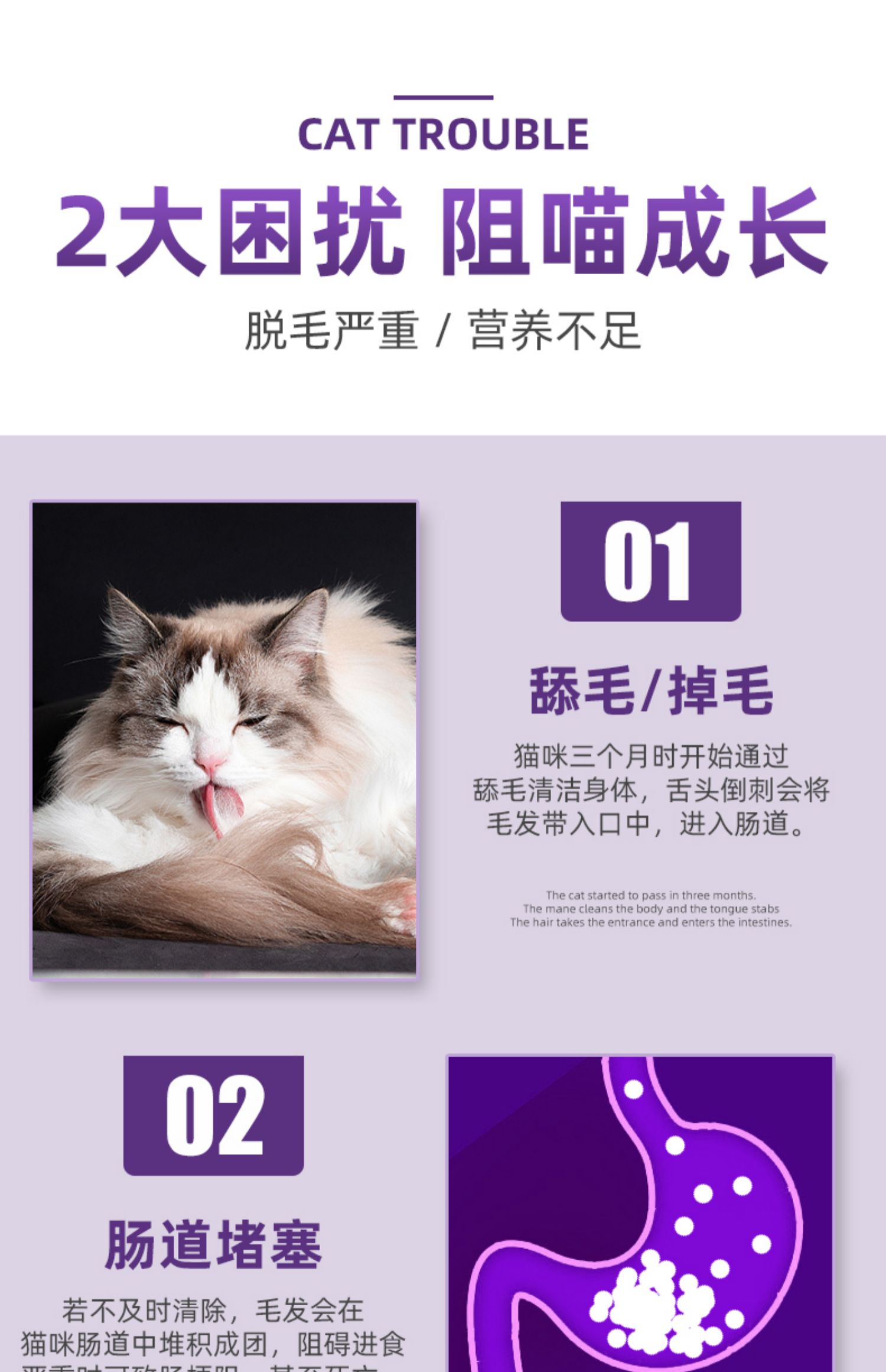 品质保证,冲量特价,天然提纯营养配方,去除毛球,营养均衡,亮丽毛发