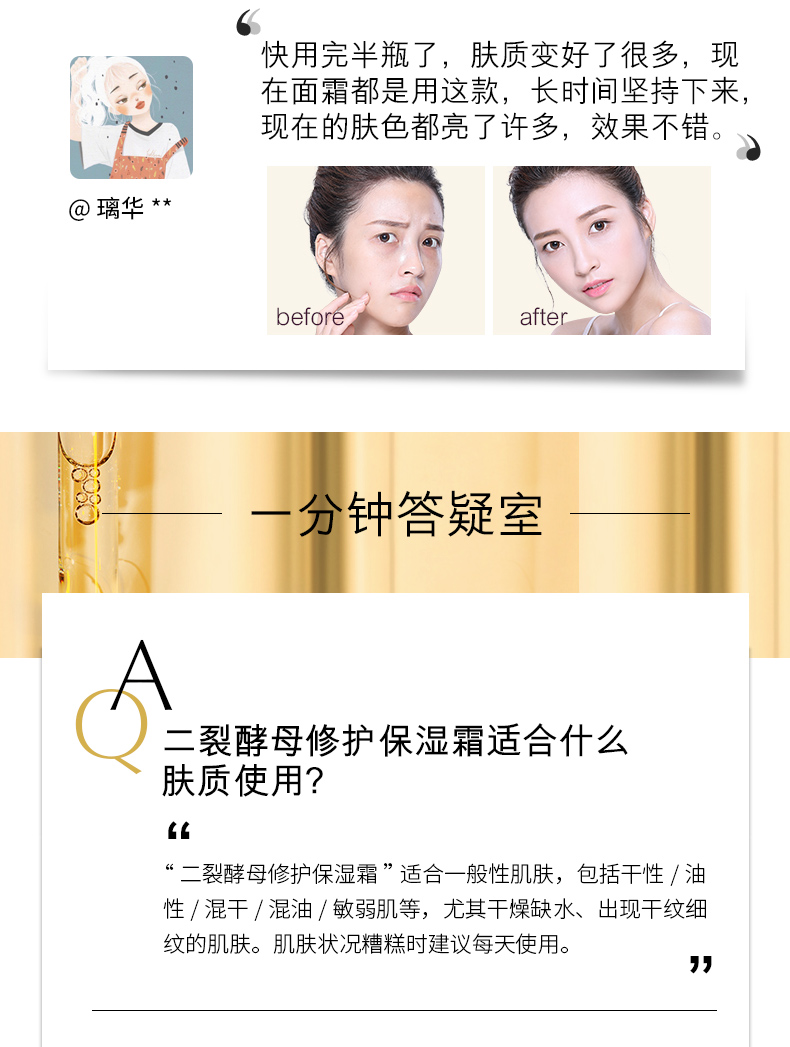 作息无规律、换季不适??别当心,有它,二裂酵母修复保湿霜,滋润保湿、弹嫩紧实、抗老活颜,深入肌底修复受损养出水感弹润肌~【过敏包退】
