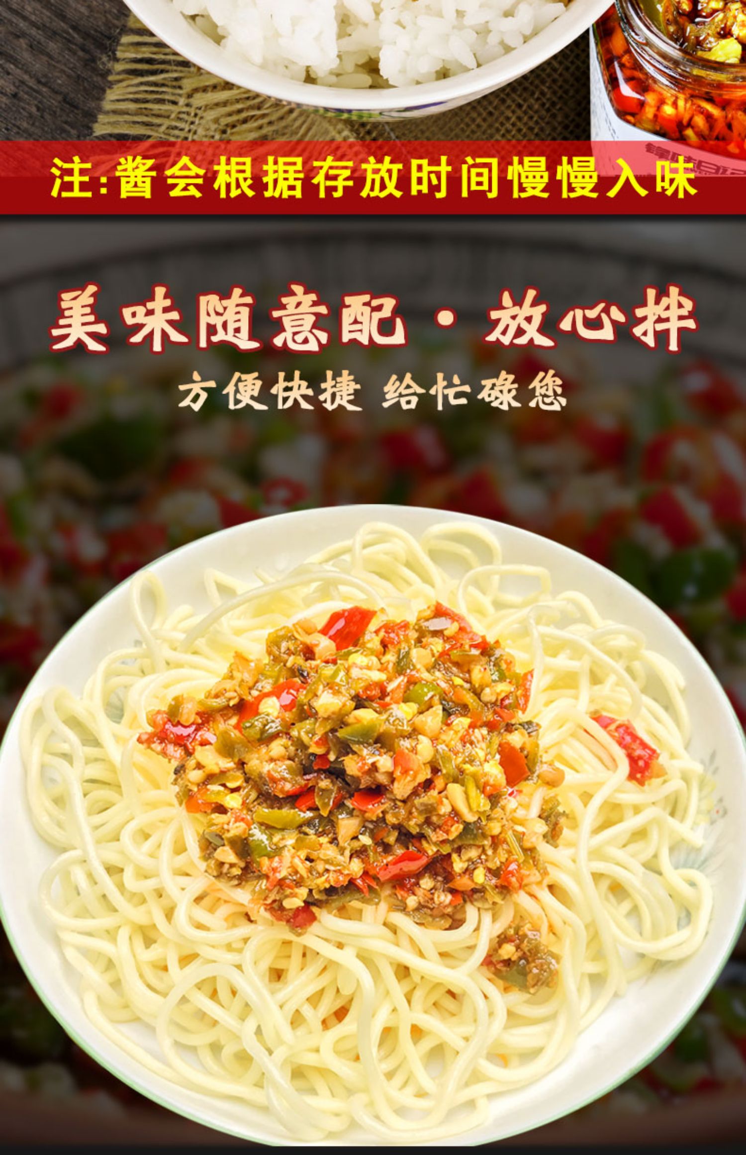 《当天发货》四川特产辣椒酱,农家自制下饭菜,川味辣鲜香,一口酱满口香,味道鲜美,酱香浓郁,可做调味食用,拌饭食用,制作日期新鲜!大鱼大肉吃腻了,来点不一样的赶紧抢购!