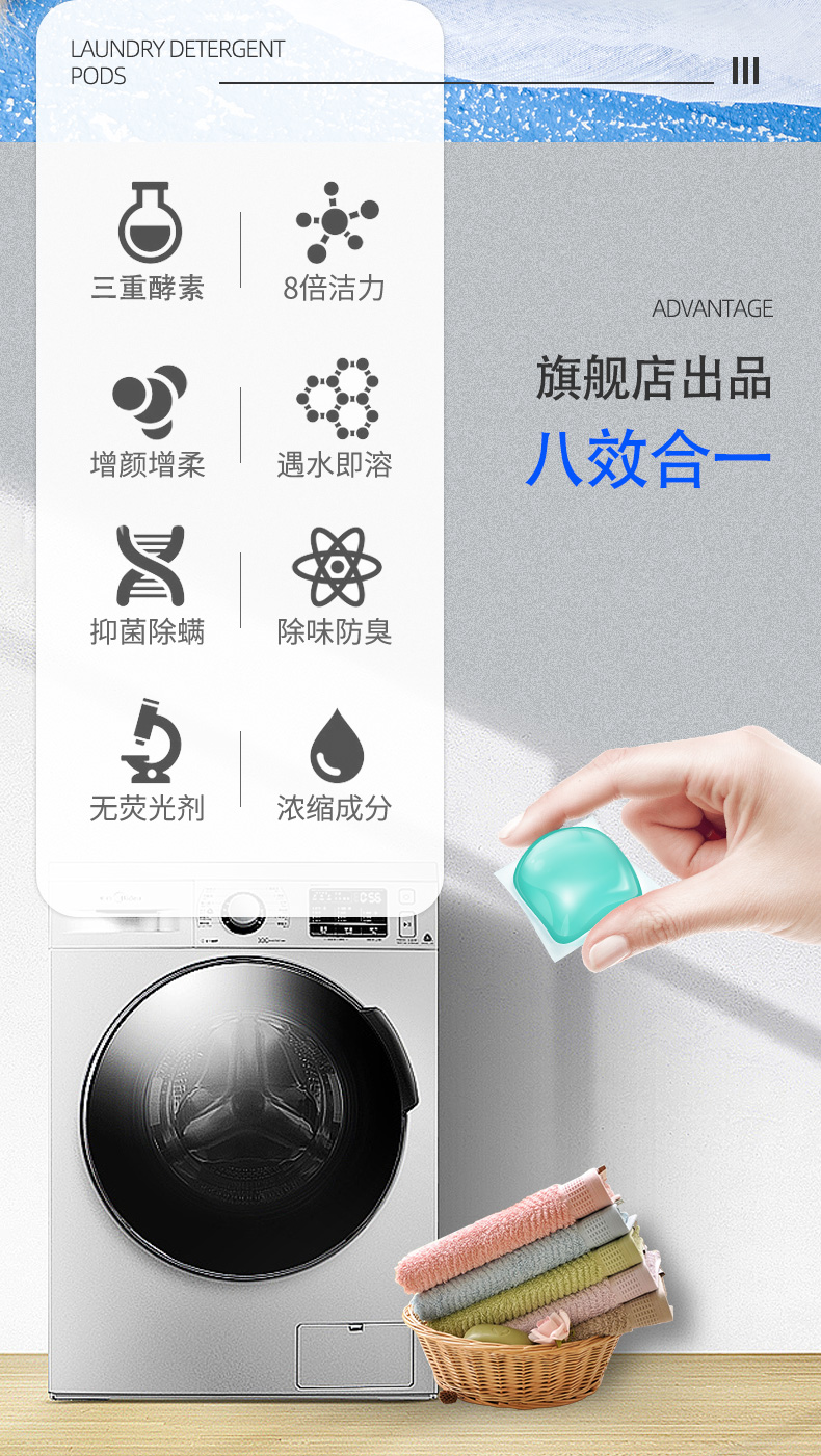【超值家庭装50粒大容量】天然倍净除菌除螨洗衣液凝珠,8倍洁净力,清除异味,植物花香,持久天然留香,无荧光增亮剂,不含水的高浓缩凝珠,一颗可洗一筒衣物,从此洗衣只需轻松一抛!