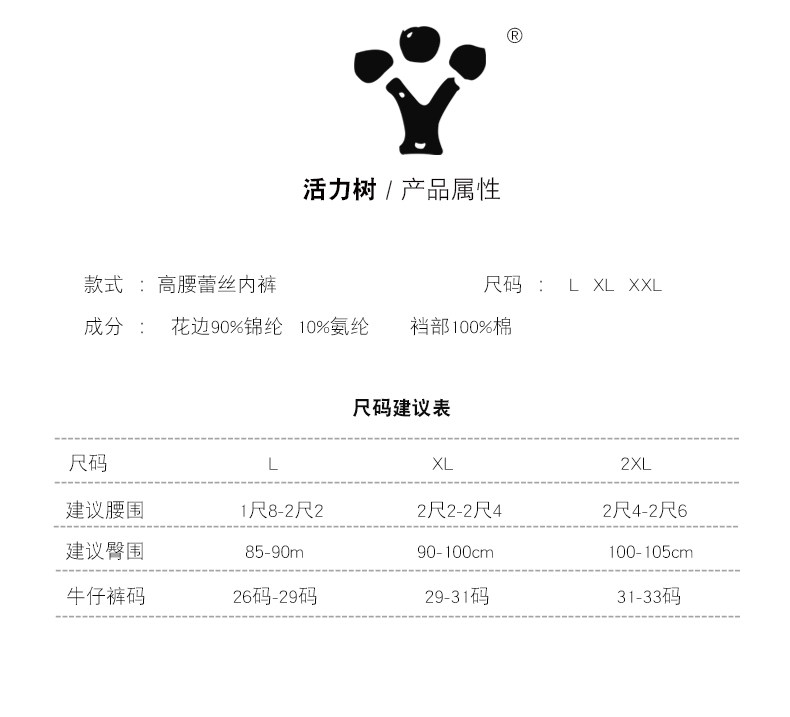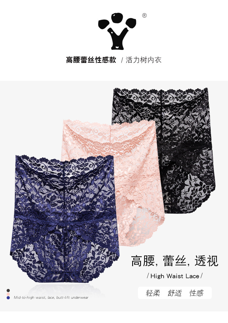 【活力树】高腰蕾丝大码提臀收腹内裤*3条