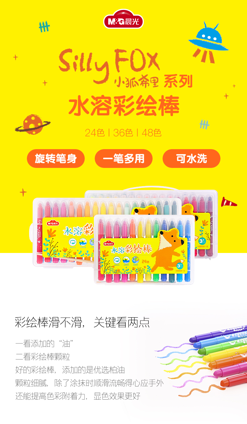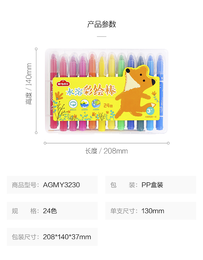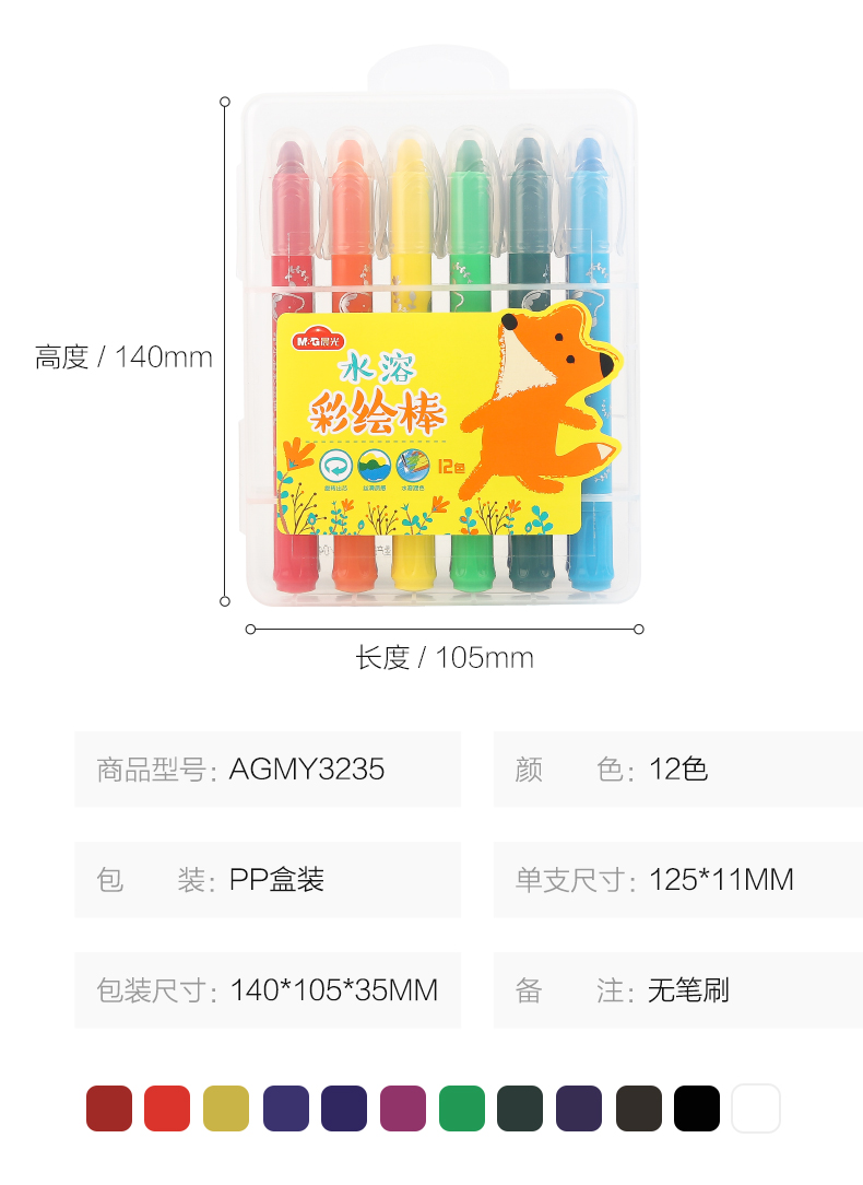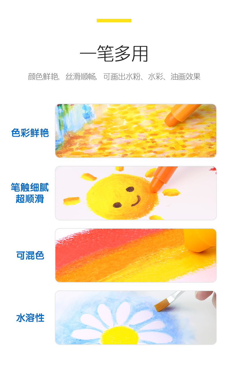 【晨光旗舰店】水溶油画棒彩绘棒12色,旋转笔身,一笔多用,可水洗,旋转出芯,不易脏手,不易断。给孩子一个画家的梦,从用笔开始。