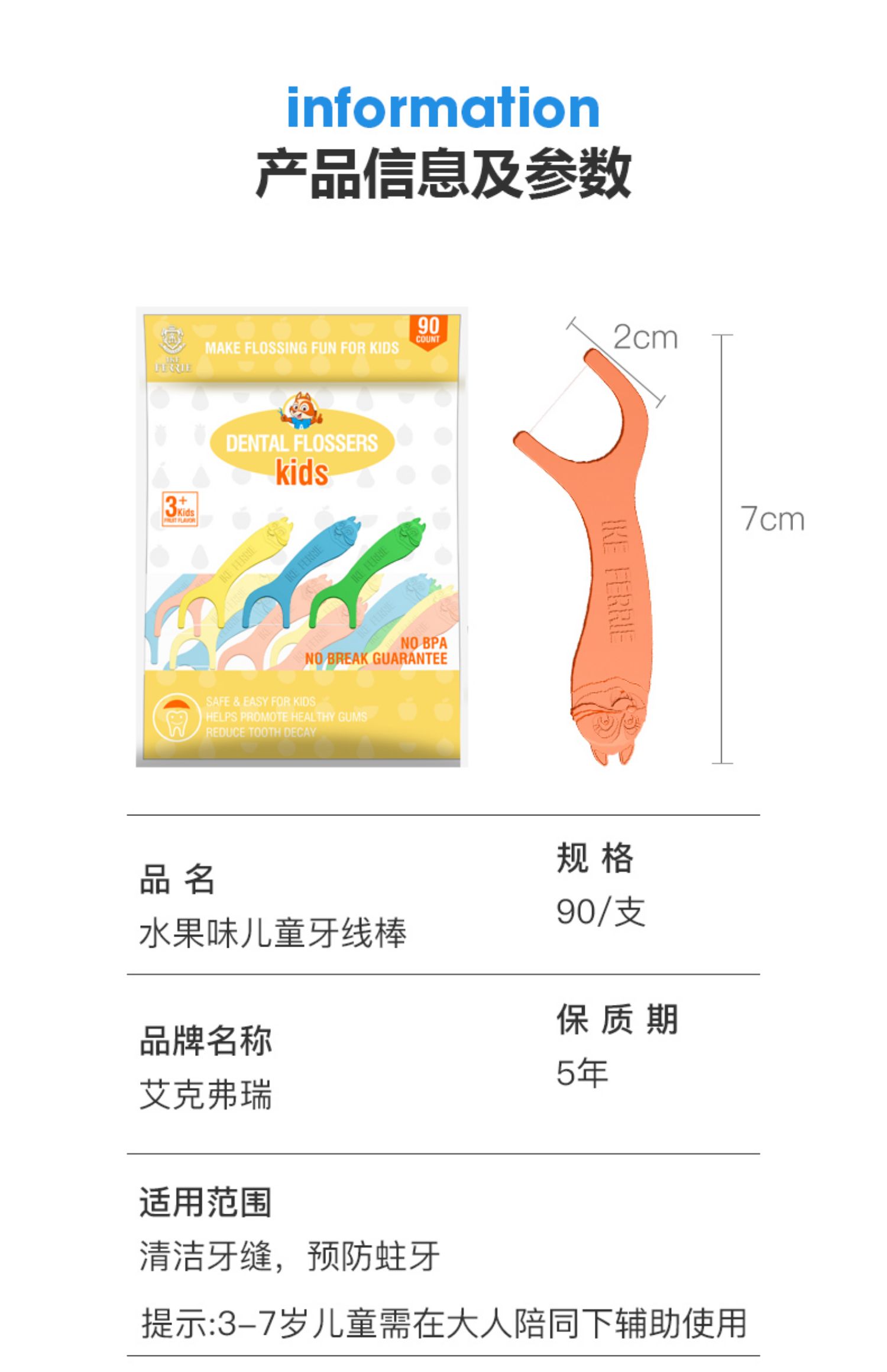 【艾克弗瑞】儿童超细牙线棒防蛀专用90支