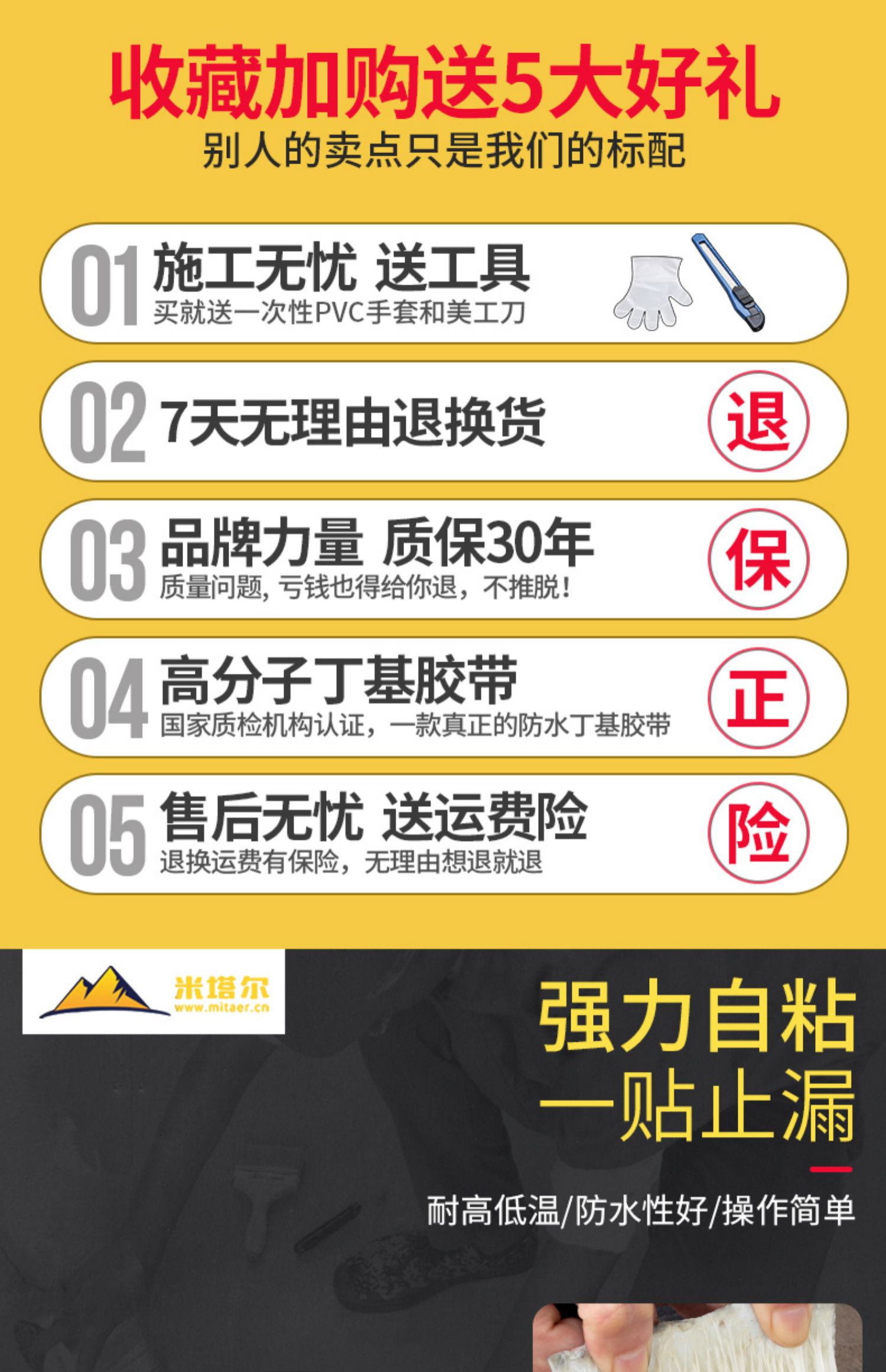 卫生间瓷砖防水,涂料外墙楼顶屋顶补漏材料堵王,高分子丁基防水胶带,抗老化性,耐高低温,操作简单,加厚方格铝膜,一贴止漏!干净美观!房屋的好帮手!【送工具】赠送运费险。