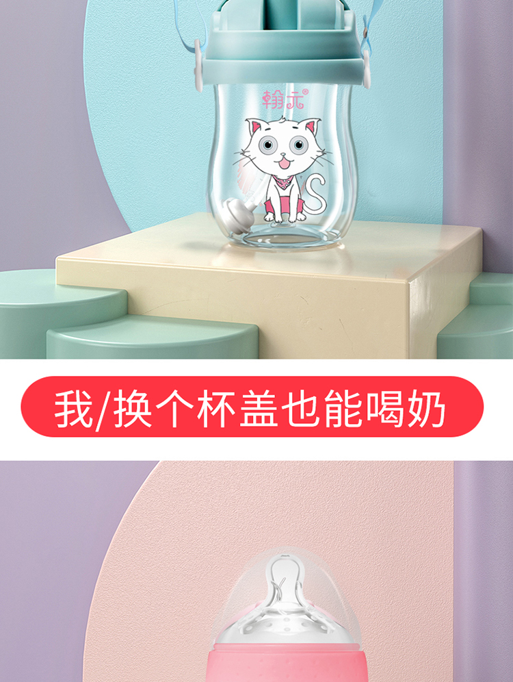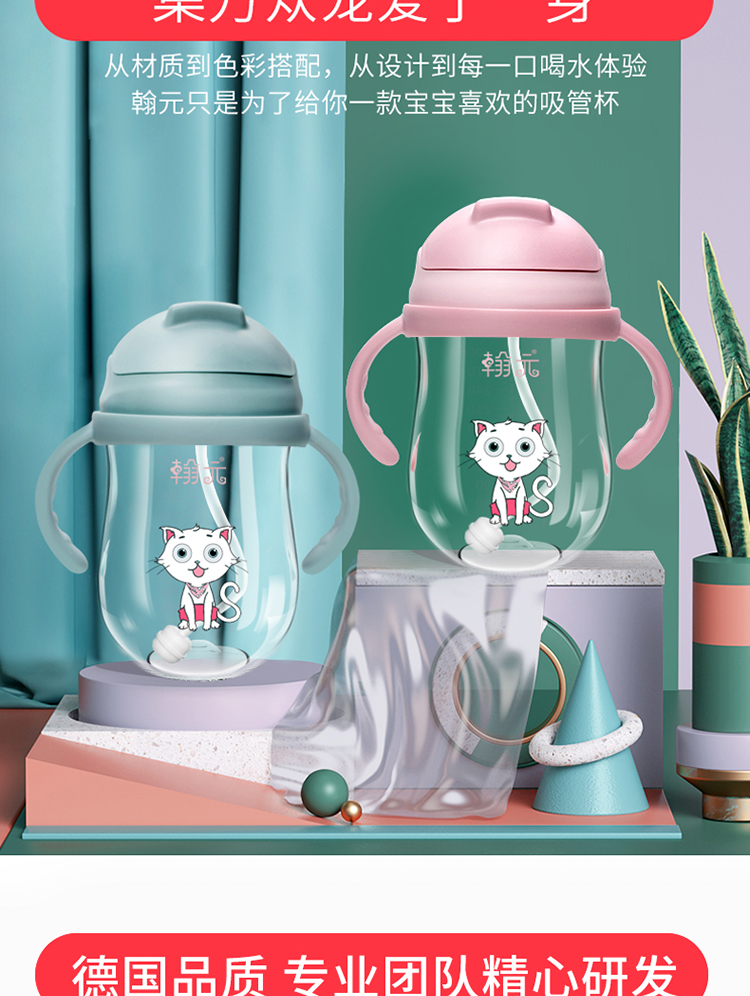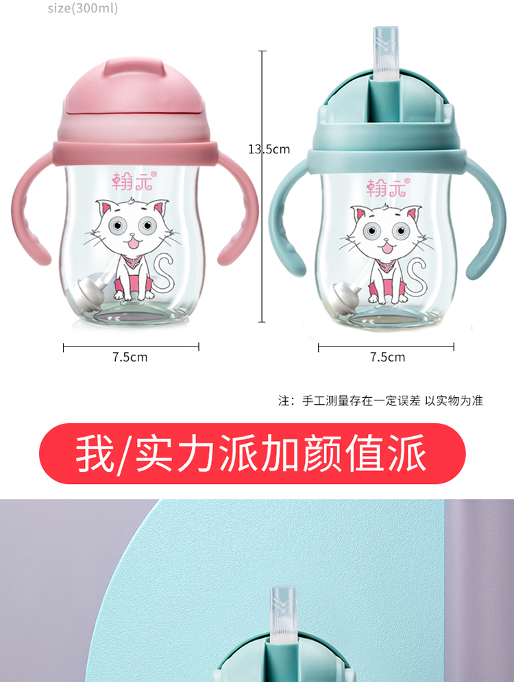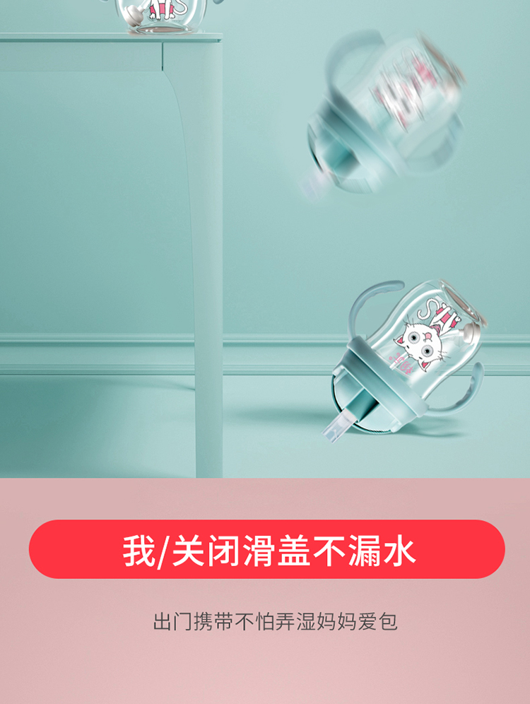 宝宝学饮杯,防呛设计,易握手柄,翻盖设计,防尘防漏!食品级tritan硅胶材质,欧美婴幼儿用品指定材质,防摔,防漏,洁净,带通透重力球,360度自由畅饮