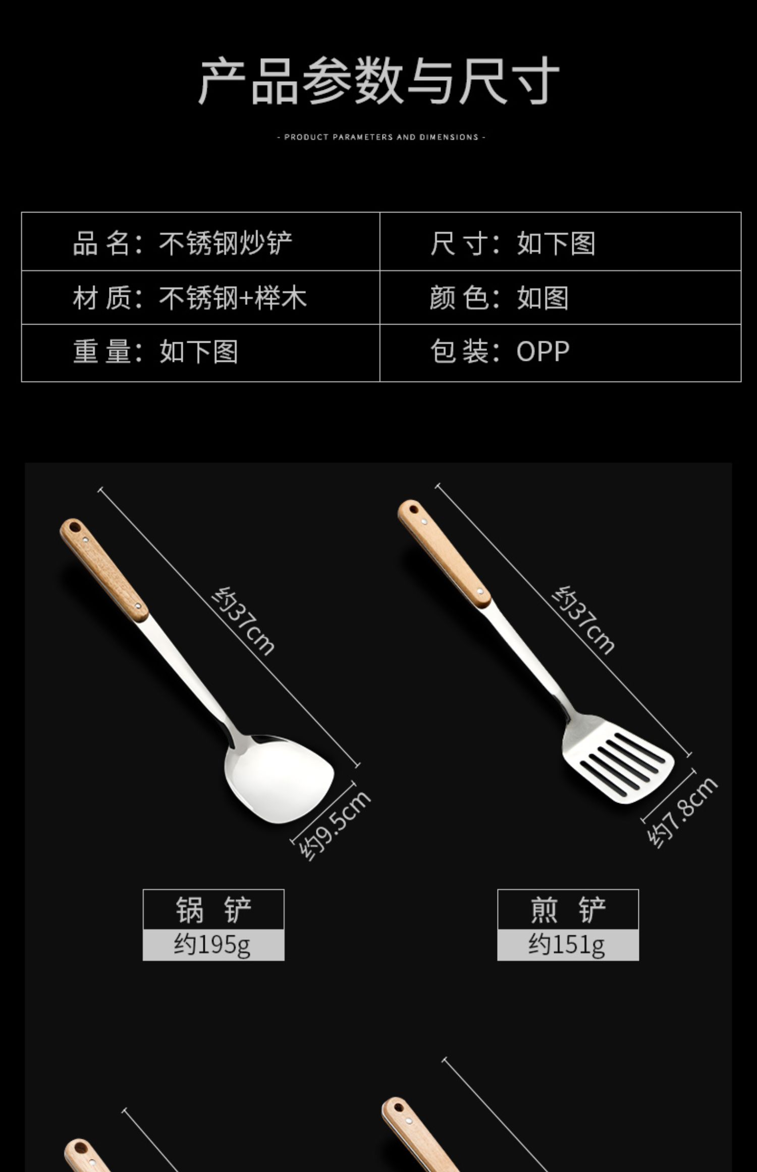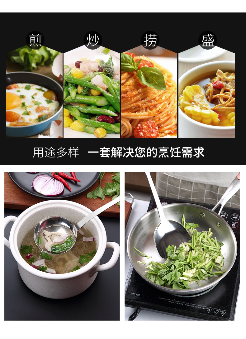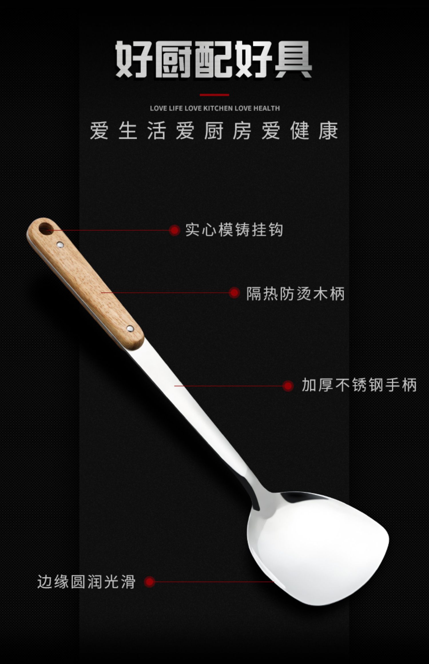 304不锈钢材质,防烫手柄,易于清洗,耐高温,不伤锅,更耐用,厨房好帮手!