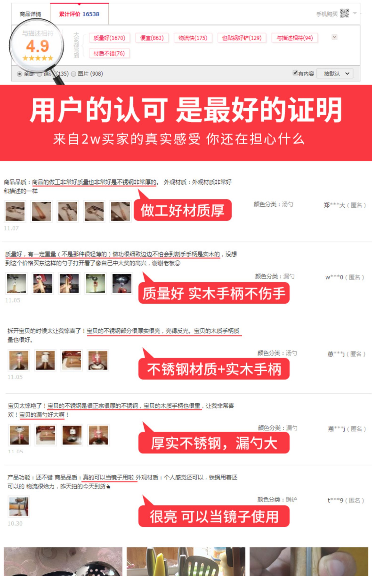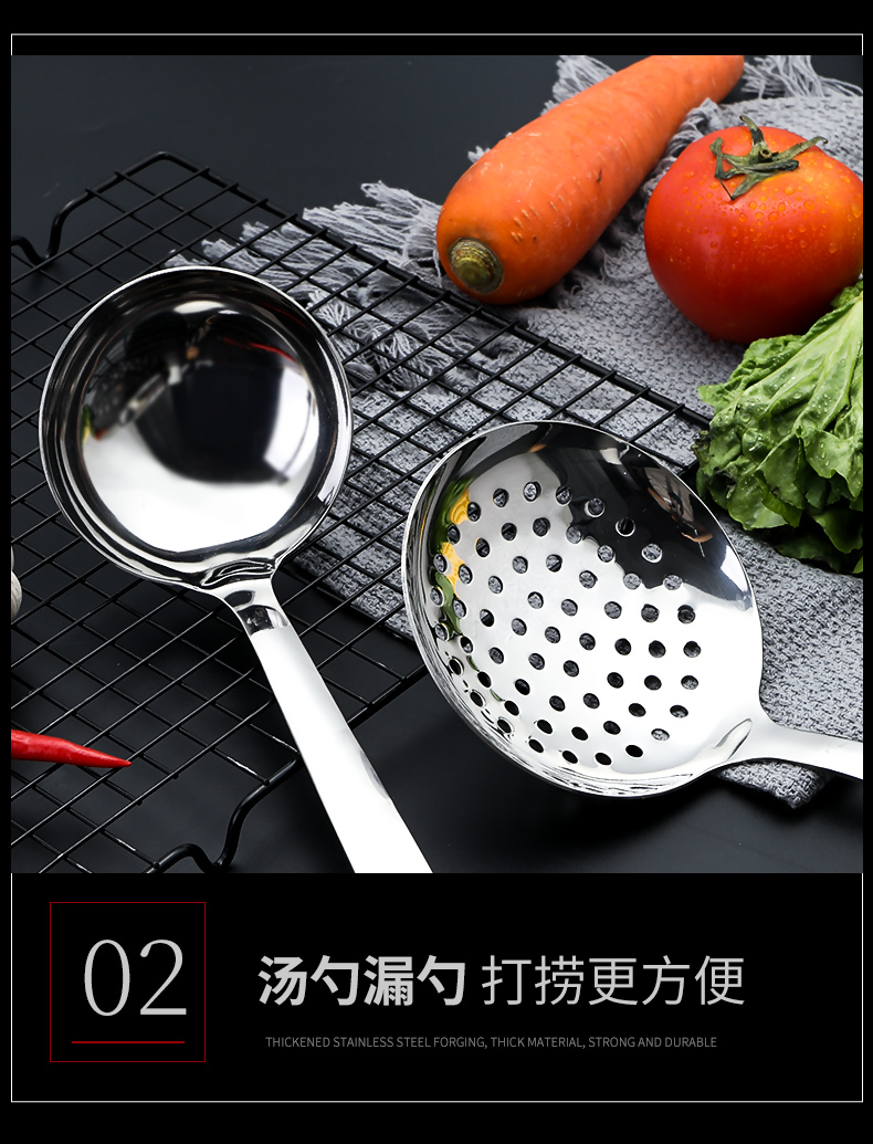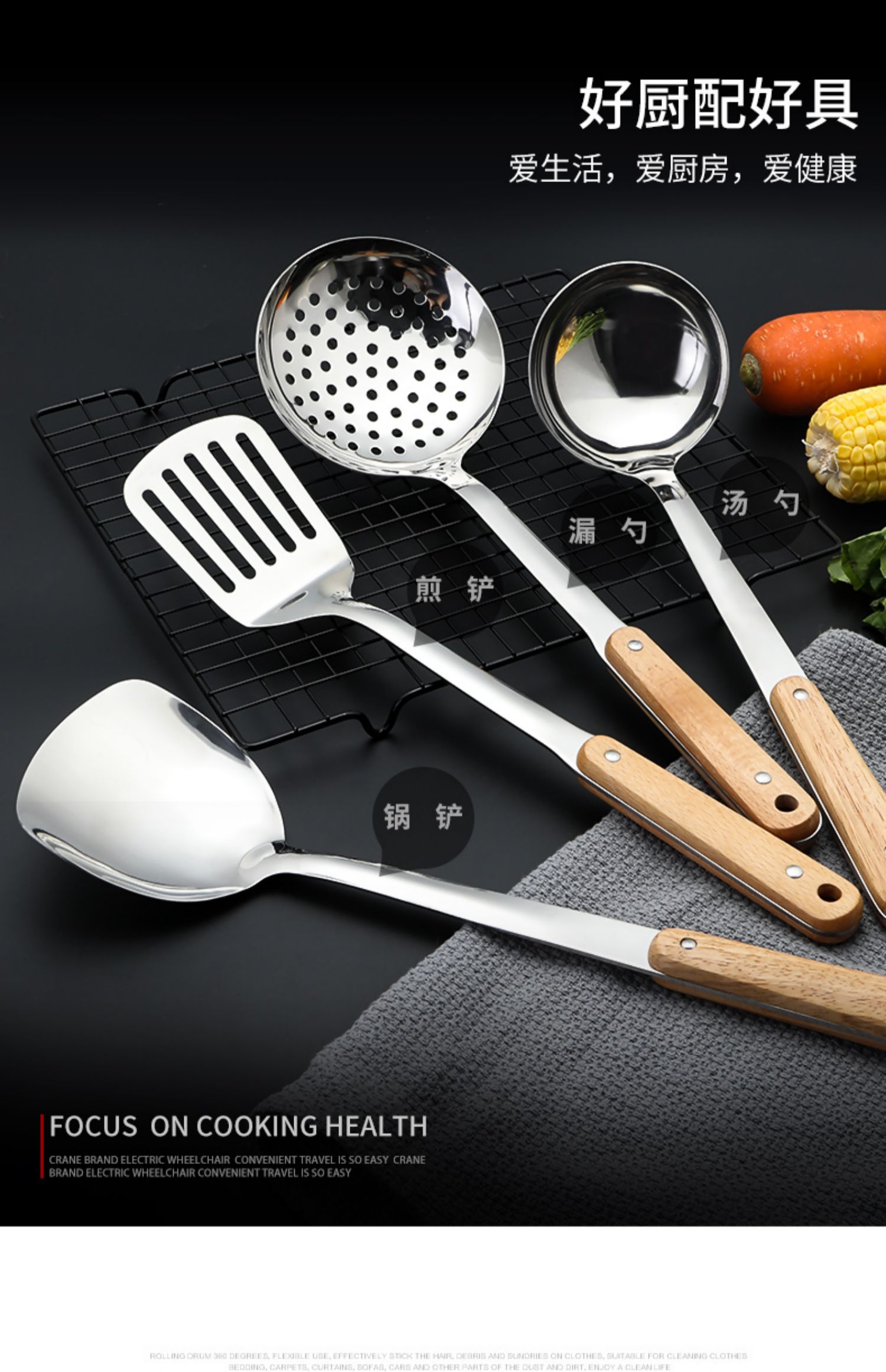 304不锈钢材质,防烫手柄,易于清洗,耐高温,不伤锅,更耐用,厨房好帮手!