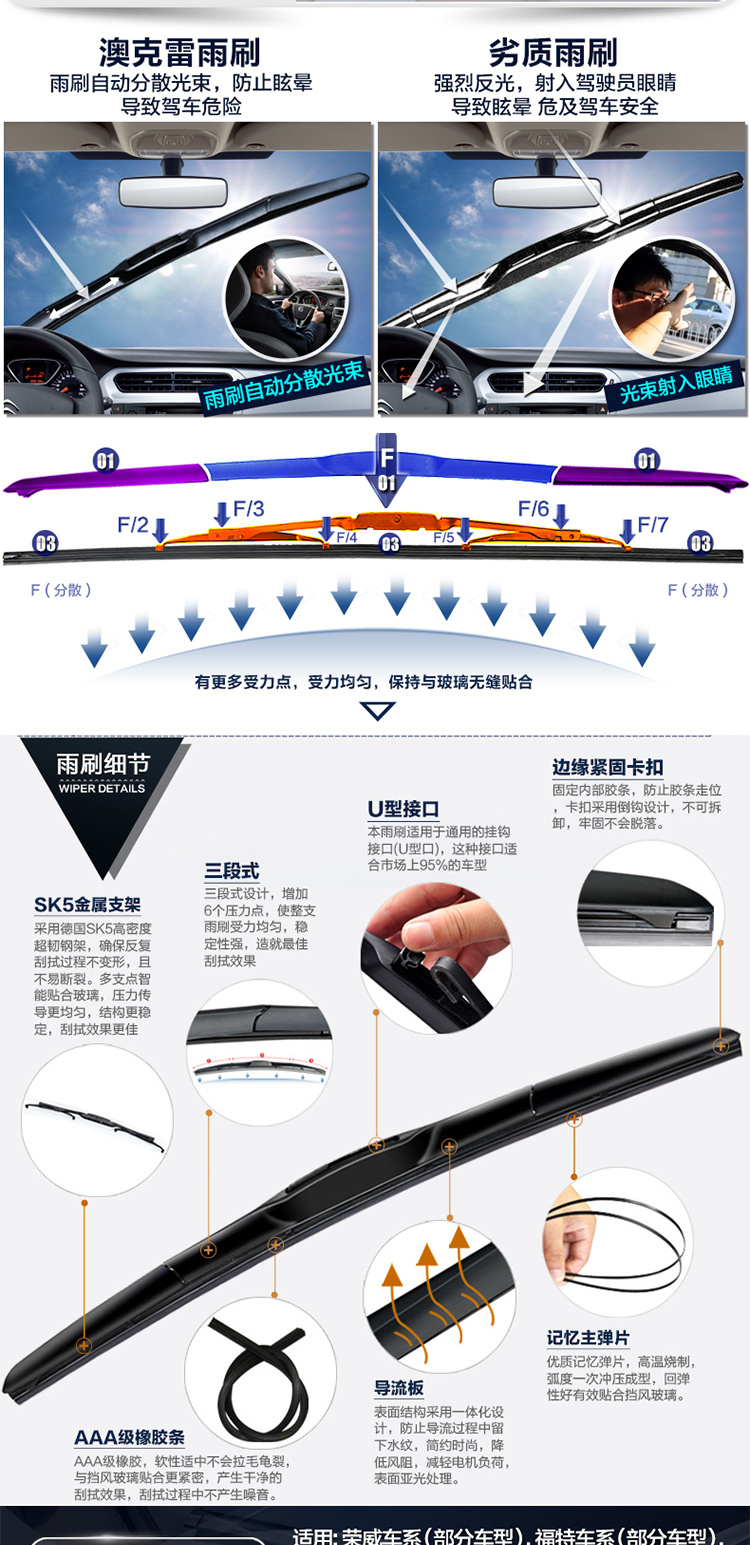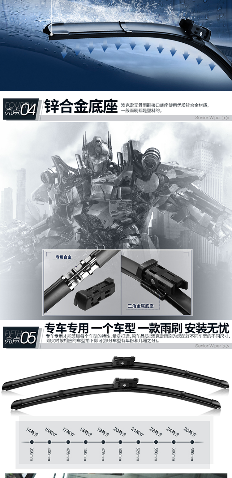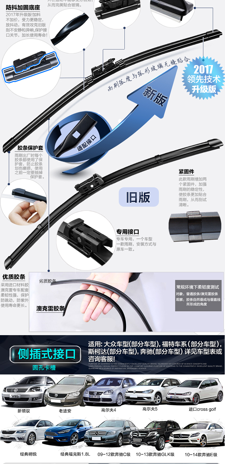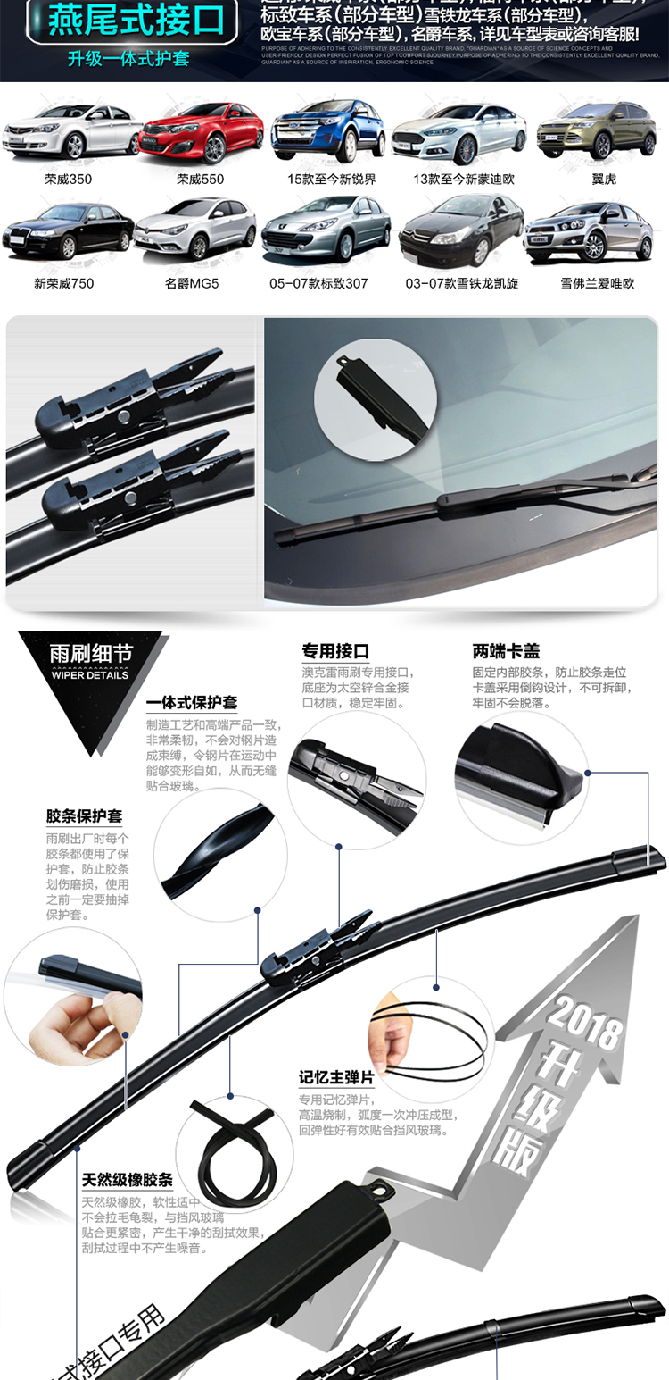 匹配99%车型雨刮器,防暴晒,高清静音,无骨雨刷,专用胶条,标准原车弧度,锌合金底座,专车专用安装无忧,防抖动耐用更静音,4S店专用!【适合所有车型】