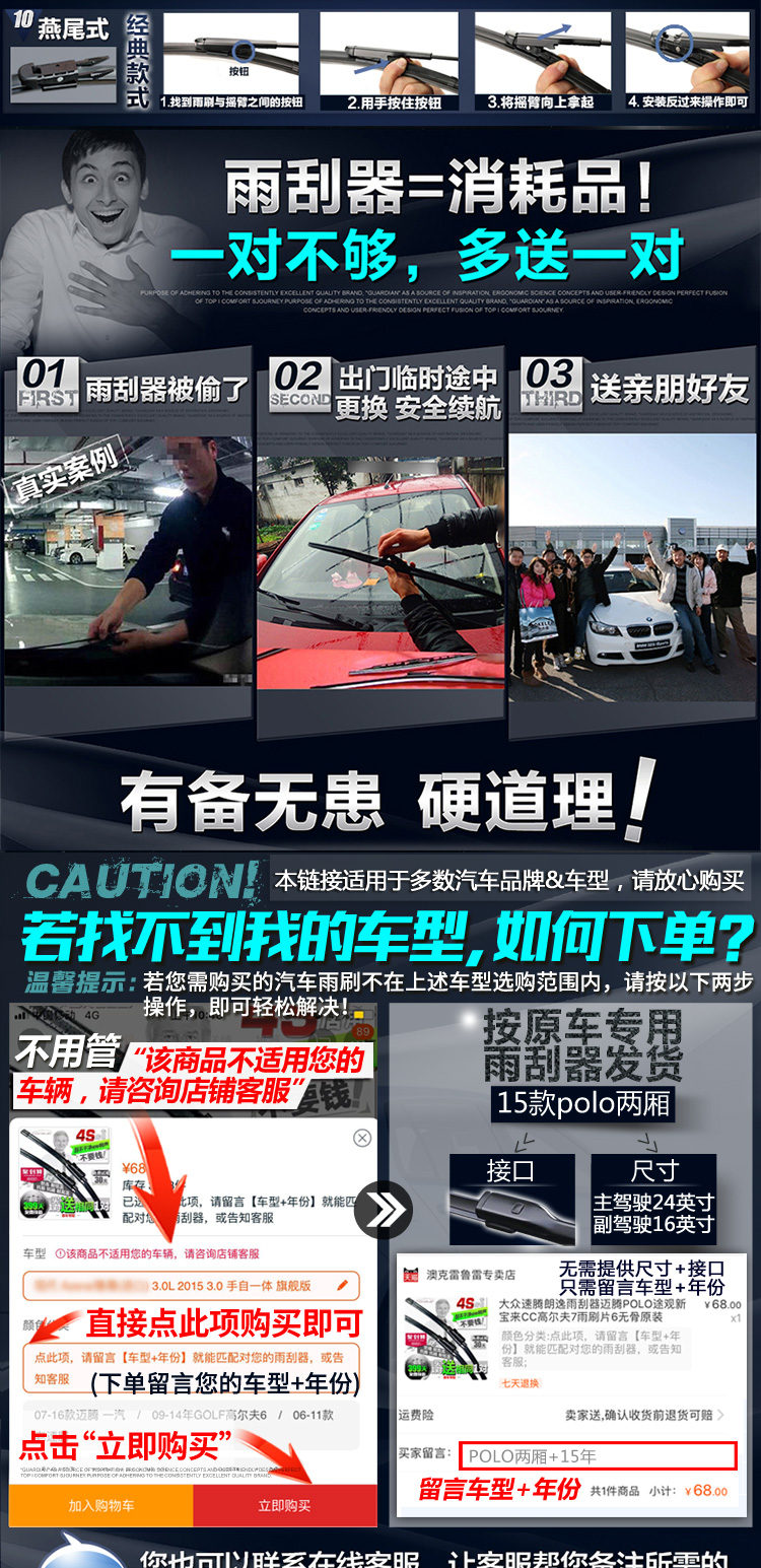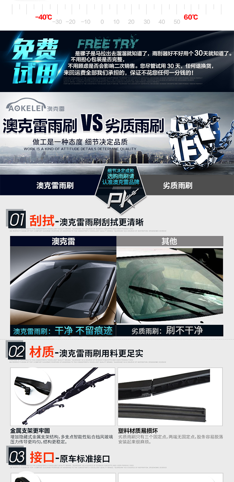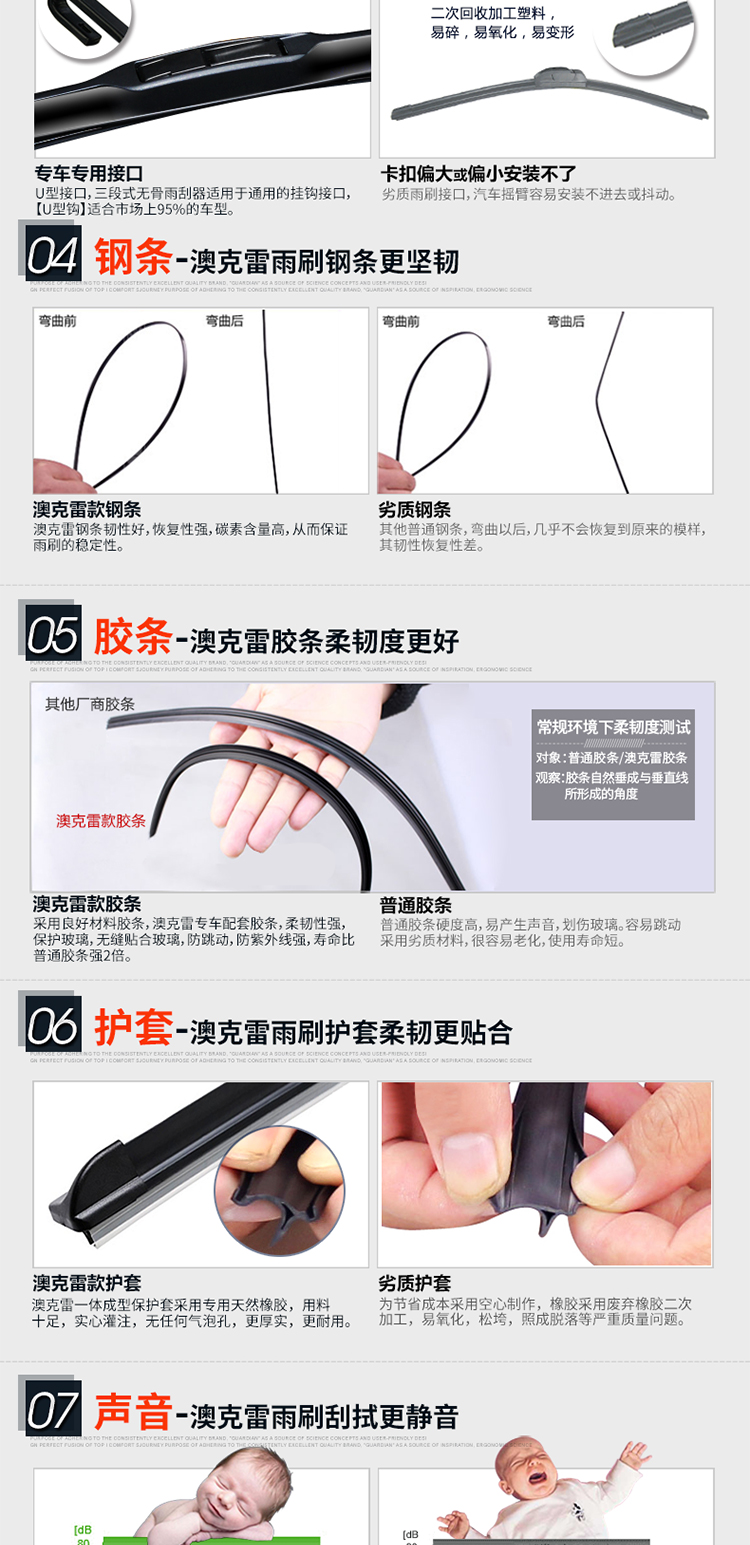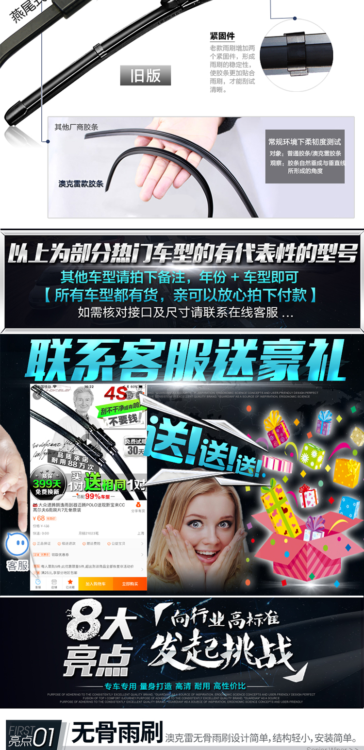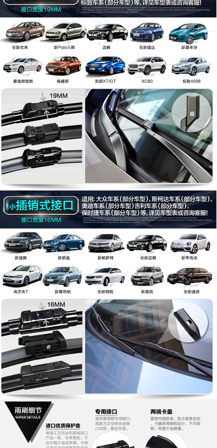 匹配99%车型雨刮器,防暴晒,高清静音,无骨雨刷,专用胶条,标准原车弧度,锌合金底座,专车专用安装无忧,防抖动耐用更静音,4S店专用!【适合所有车型】