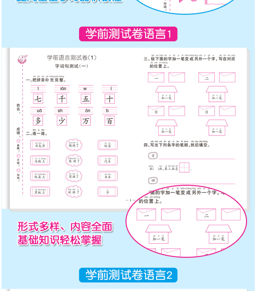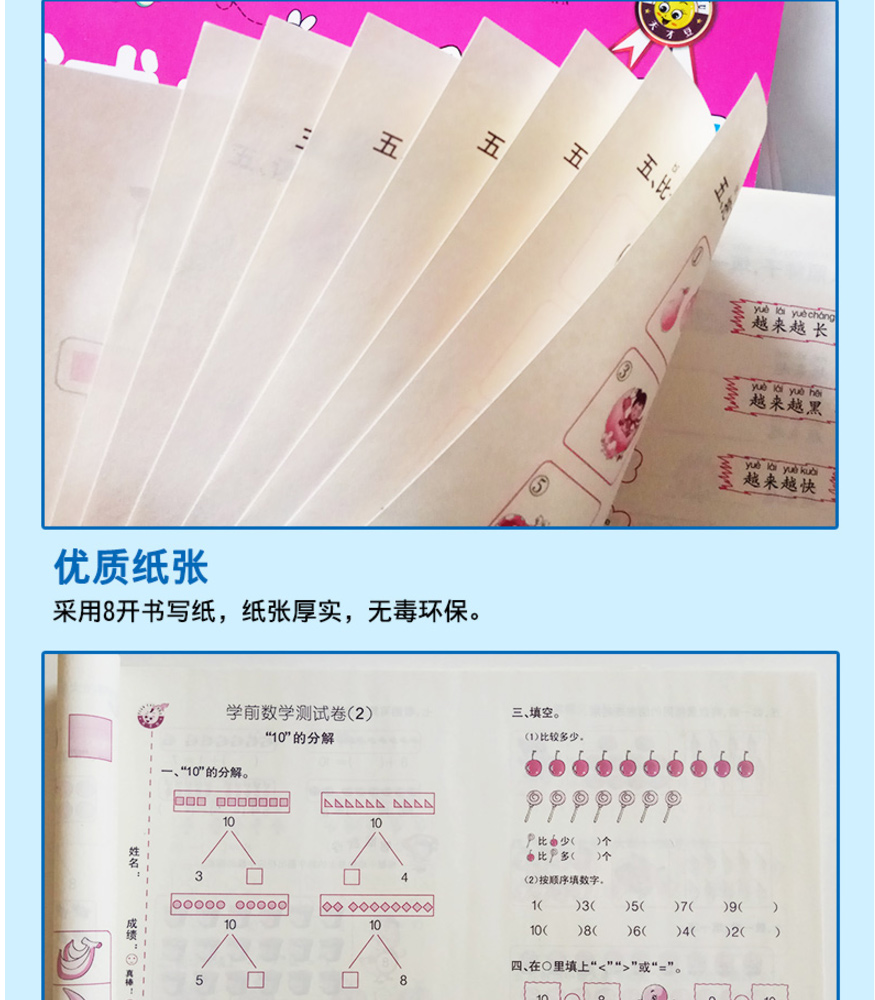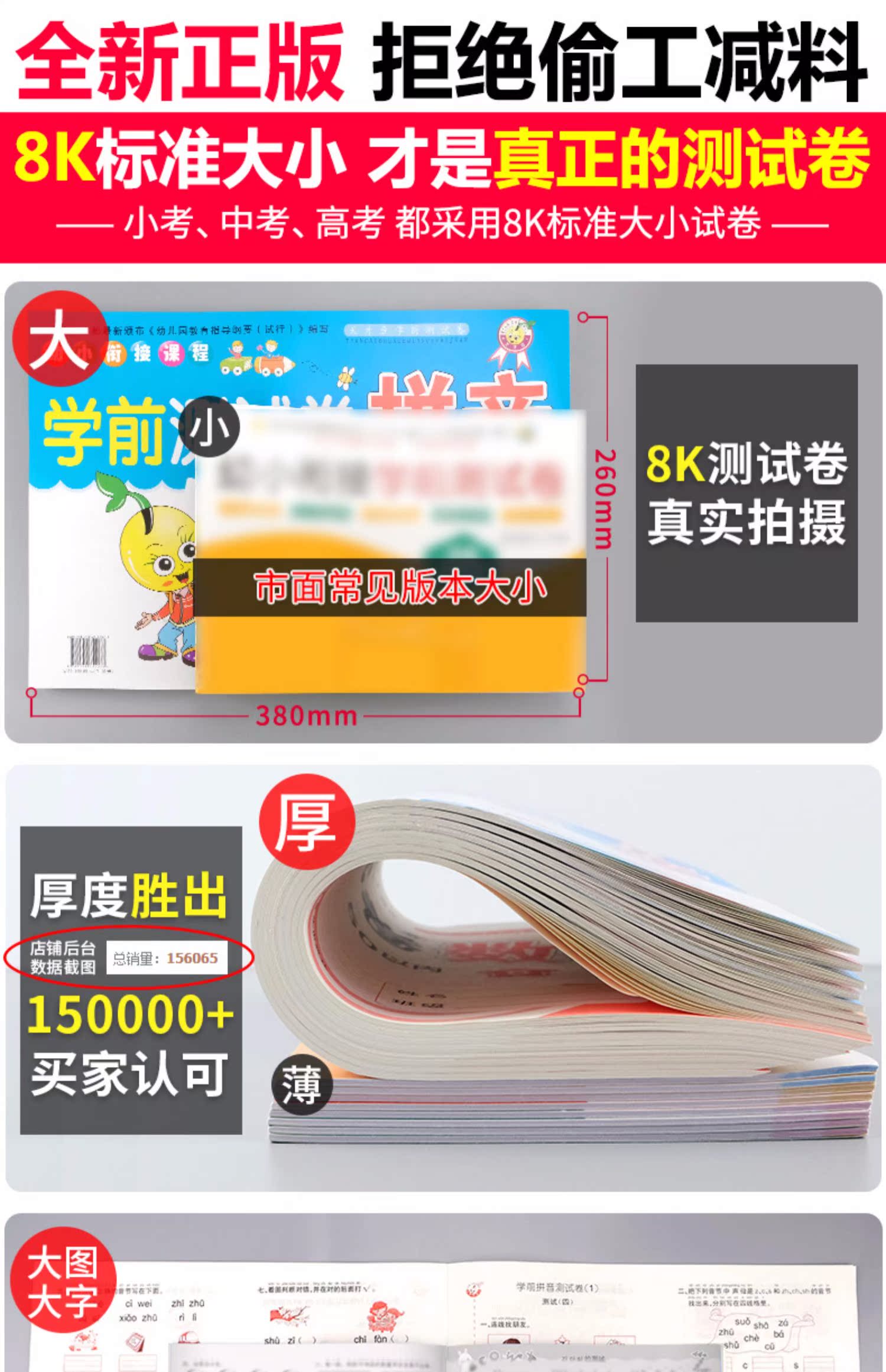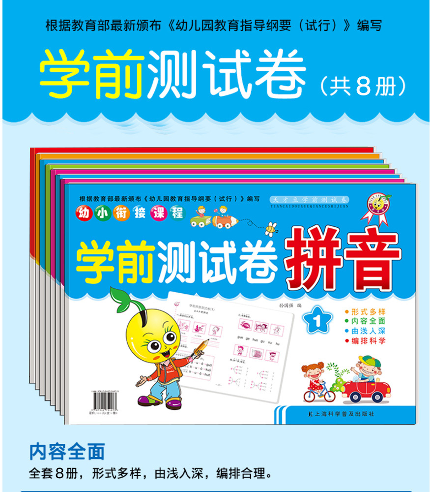 别让宝贝宅在家天天看动画,玩游戏啦~老师推荐的,幼小衔接测试卷给他备上!环保纸质印刷,无异味,字体清晰!图文结合的教学方式,孩子更喜欢学,也更容易学会!