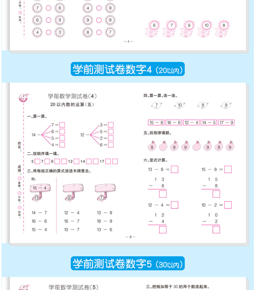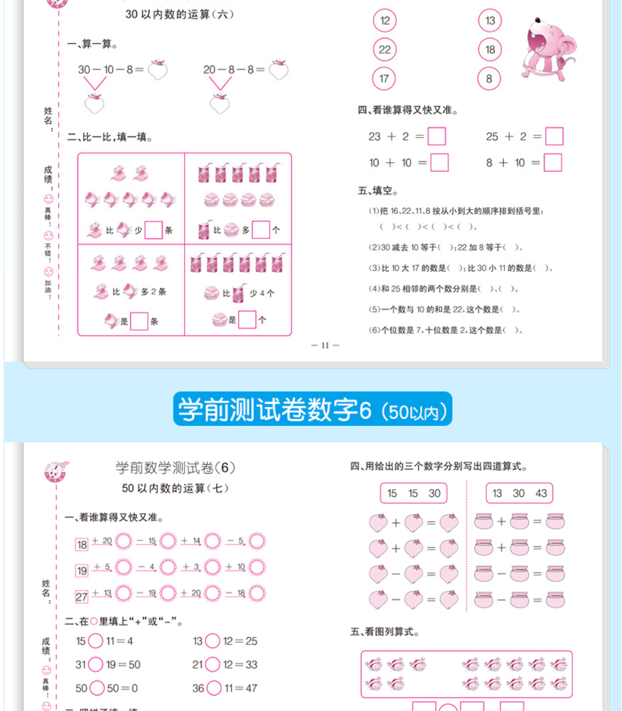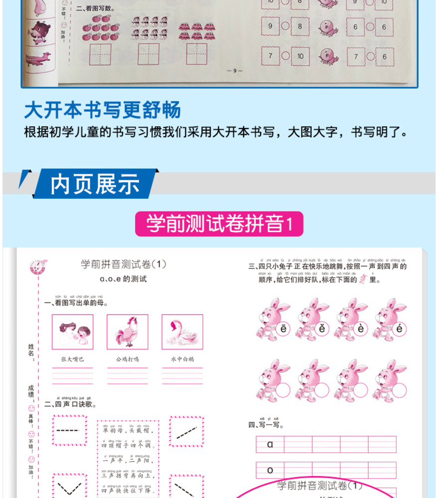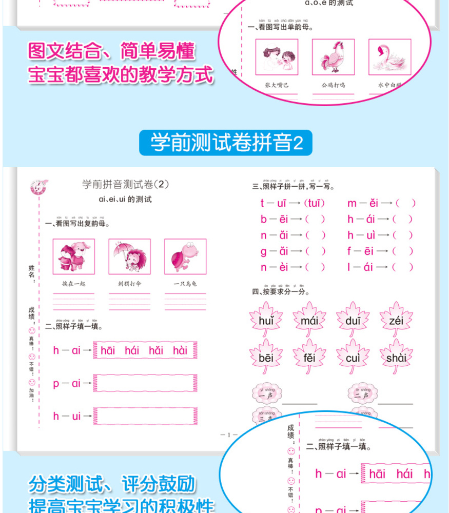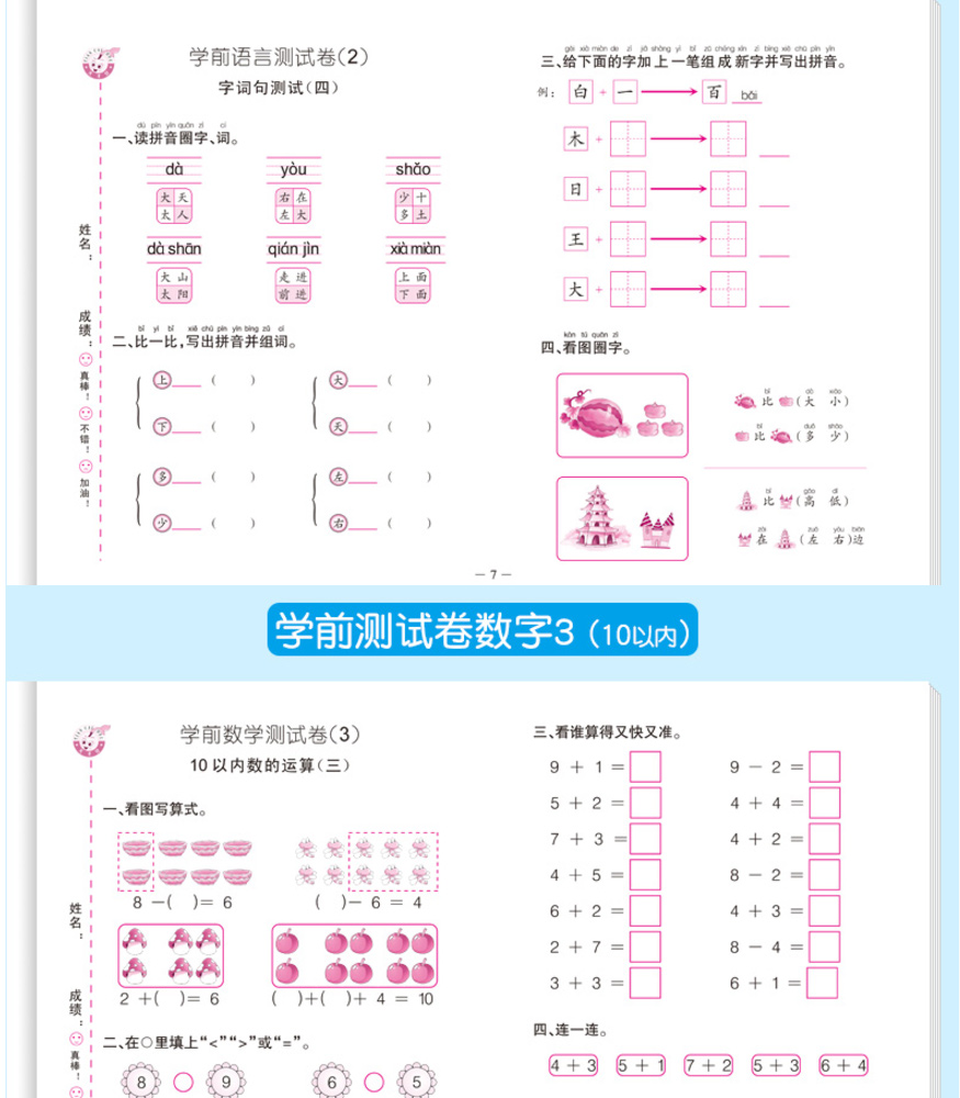 别让宝贝宅在家天天看动画,玩游戏啦~老师推荐的,幼小衔接测试卷给他备上!环保纸质印刷,无异味,字体清晰!图文结合的教学方式,孩子更喜欢学,也更容易学会!
