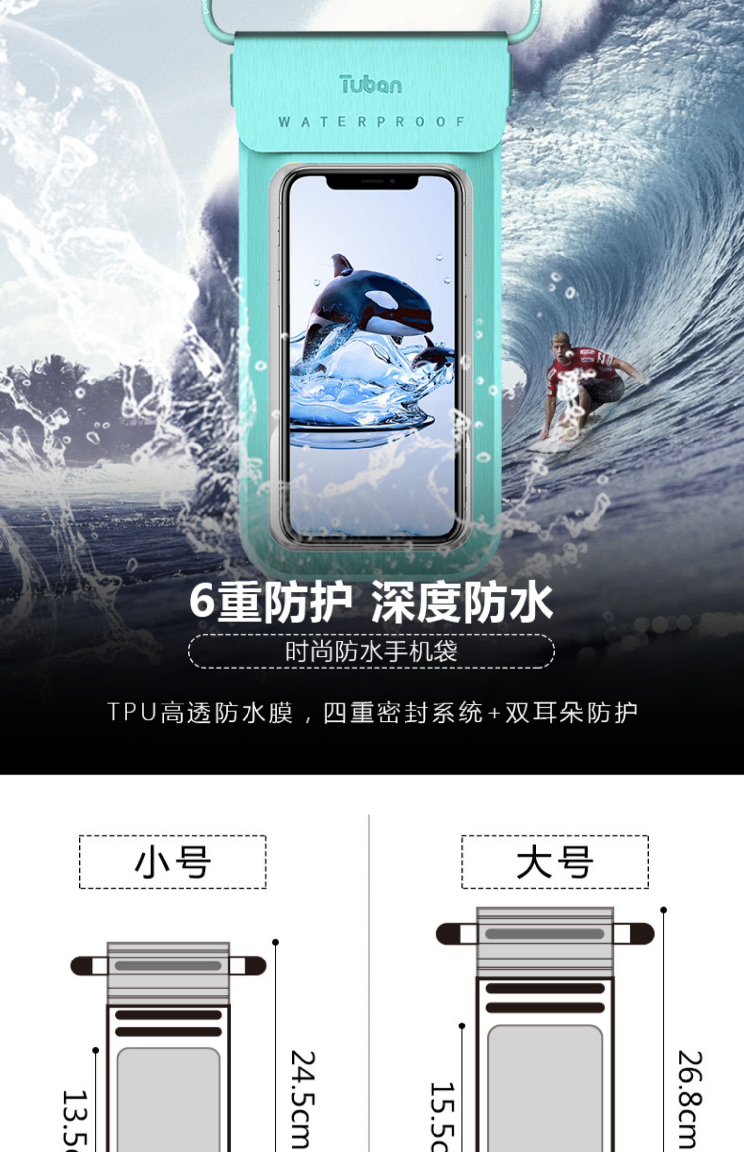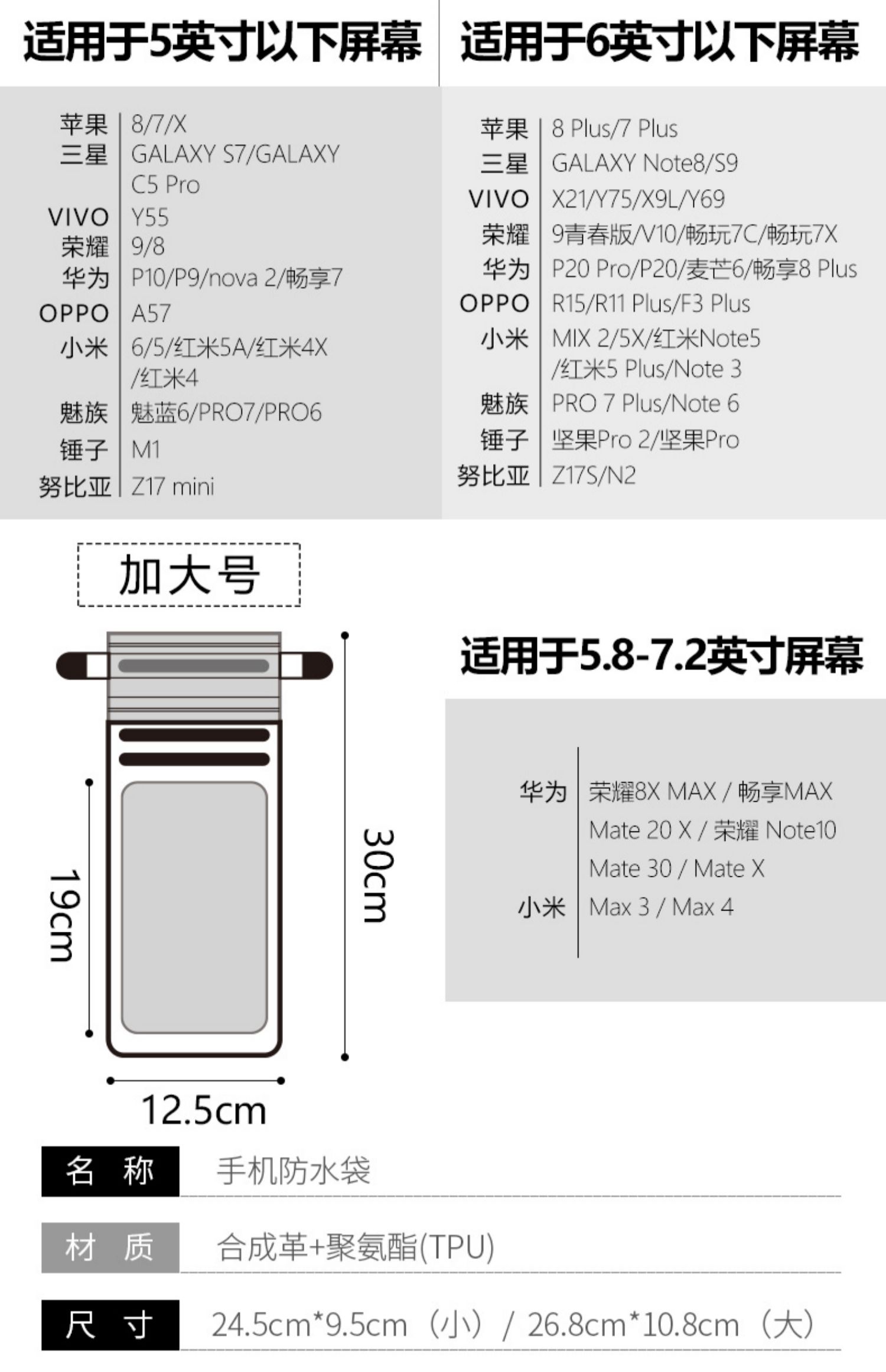【全国包邮】密封条魔术贴强力防护,触屏灵敏,可水下30米高清拍照、打电话、玩游戏、刷微博,防水抗压,多型号手机通用,玩水也能玩手机,出游海边游泳必备~
