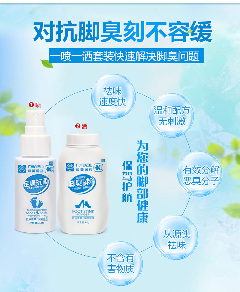 广药白云山,中国龙头制药企业,秋冬季真菌高发期!脚痒,脚臭,脱皮,愈发严重!脚气喷雾采用纯中药配方,喷一喷,涂一涂,立竿见影,快速解决多种足部问题!没有香港脚,走亲访友脱鞋不尴尬!