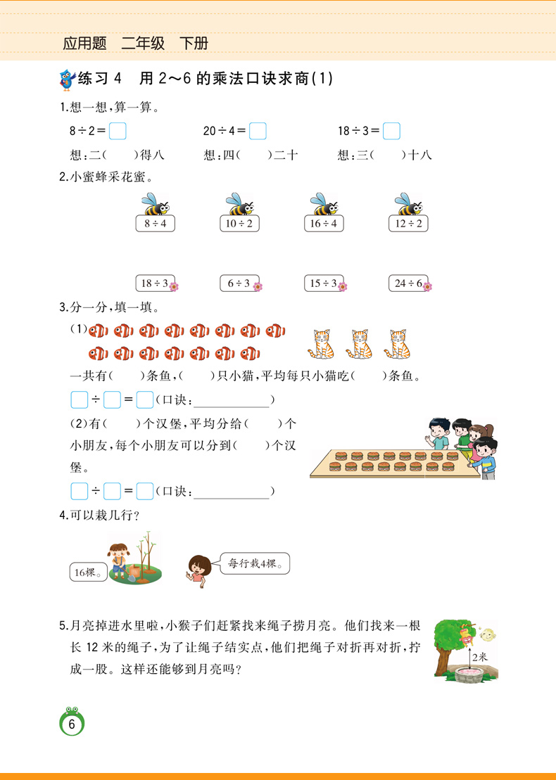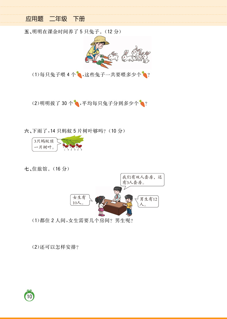 同步人教版。数学应用题,二年级下册,彩绘注音版,分类训练,全面解析,专项训练,让孩子赢到起跑线