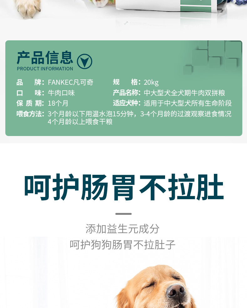 凡可奇官方旗舰店,品质保证,益生元配方犬粮,呵护狗狗肠胃健康,加牛肉粒,狗狗更爱吃