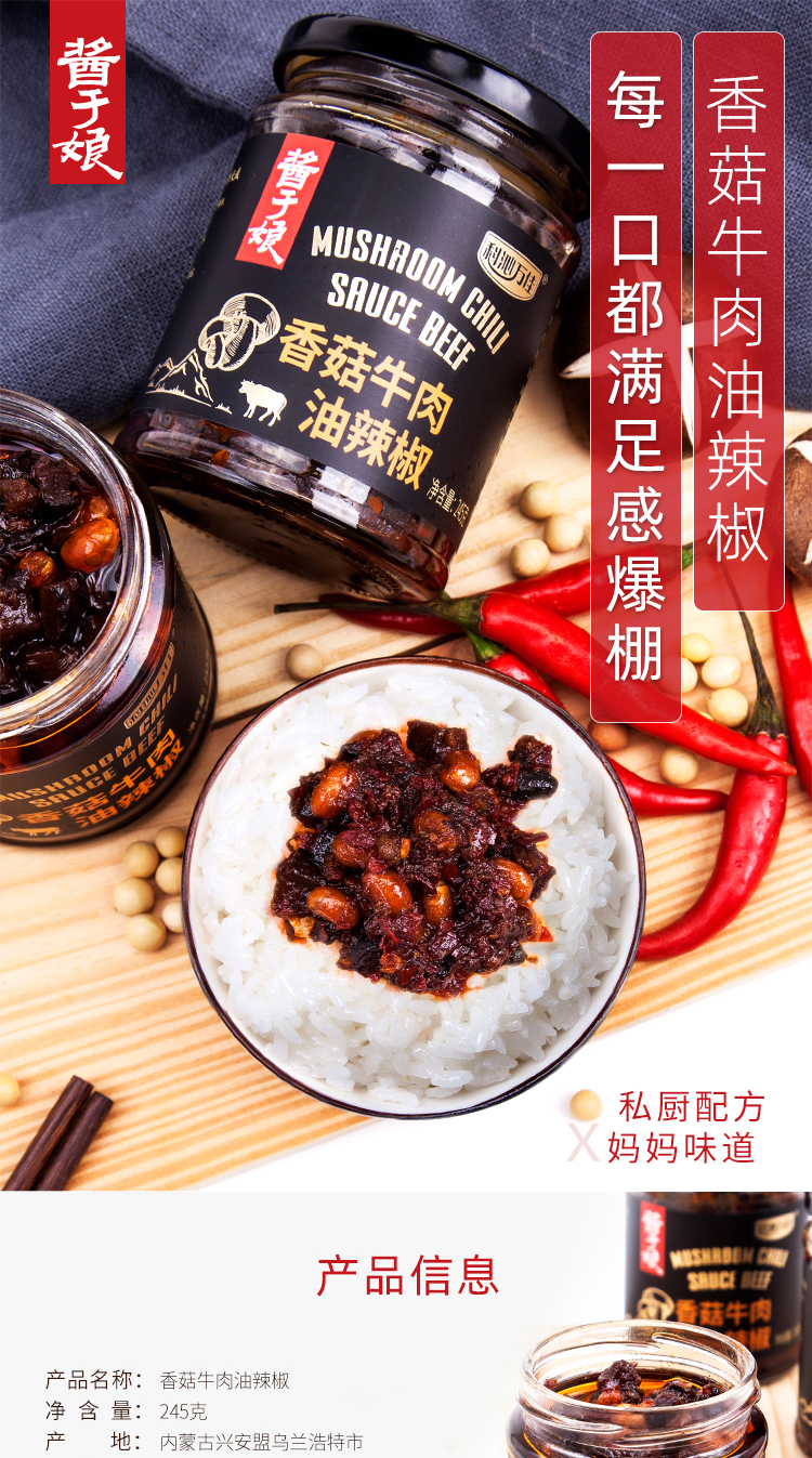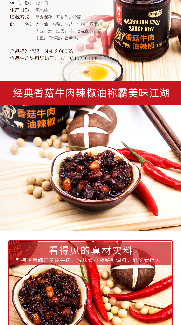 正宗川味,手工自制,香辣突出,流口水牛肉酱,不同口味,大颗牛肉颗粒,吃货们快快撸!