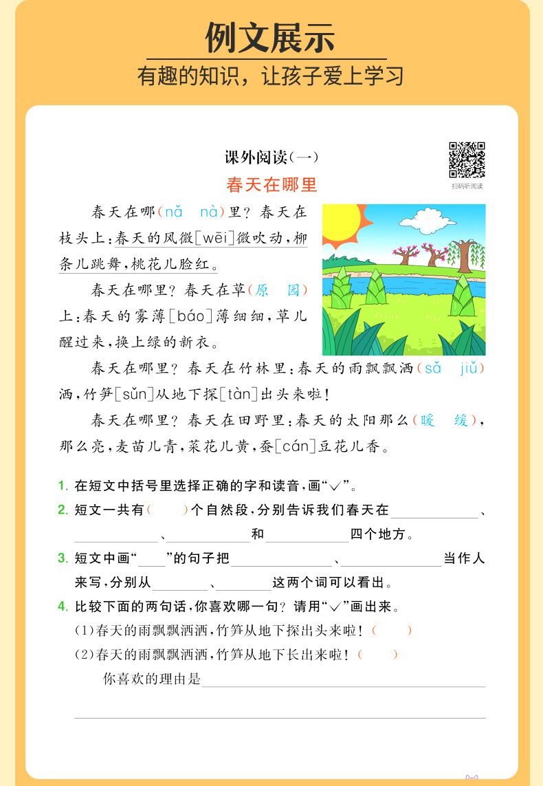 【彩绘版】二年级下册语文阅读理解