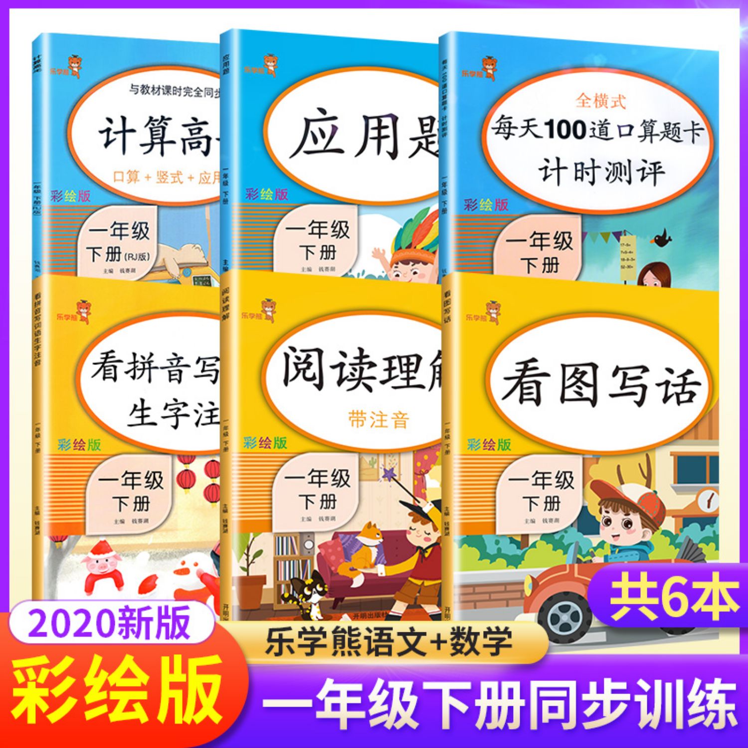 【同步教材】语文数学全套6本,一年级下册同步训练.专项教材训练书,小学基础课外阅读必读思维练习册,幼儿学习看图写话天天练