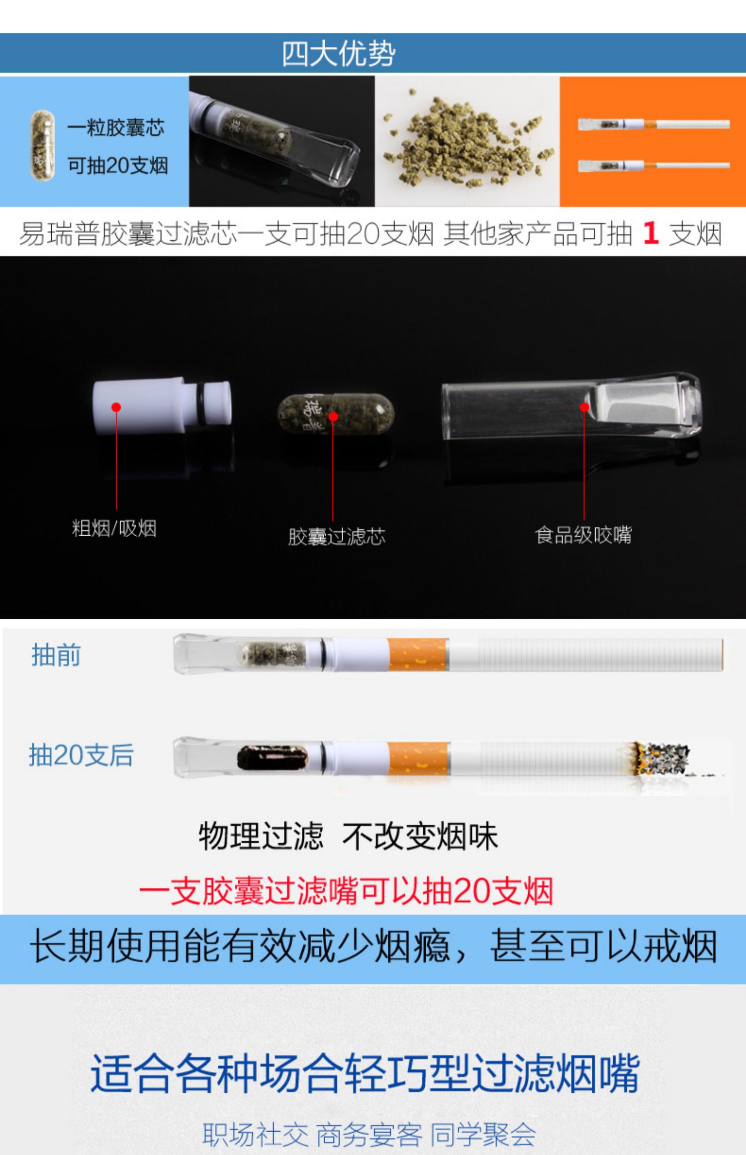 【第二件0元】易瑞普旗舰店,优质食品级塑料,强咬不爆。长期使用可以有效减少烟瘾,直到烟瘾为零,无需转换头,苦荞多重过滤烟嘴,医用环保材质,您的健康选择。