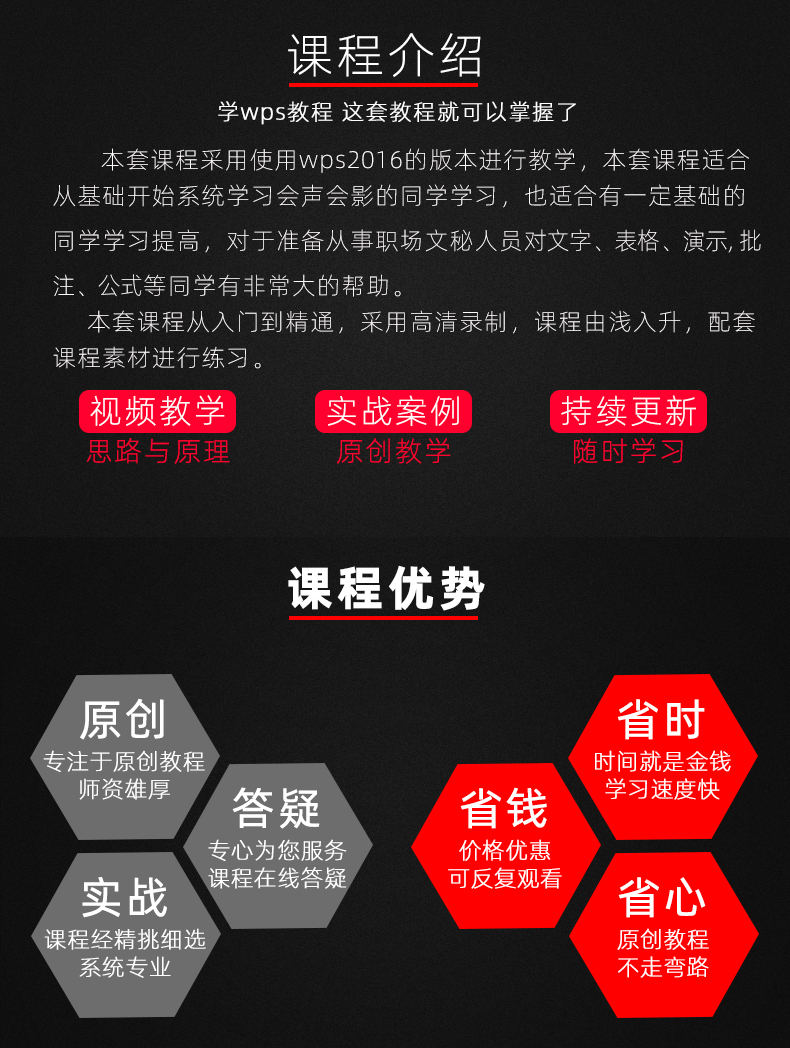 WPS2016全套视频,文字+表格+演示三套教程,如果你正苦于WPS技能比较差,那么不妨跟着课程一起来学习下!