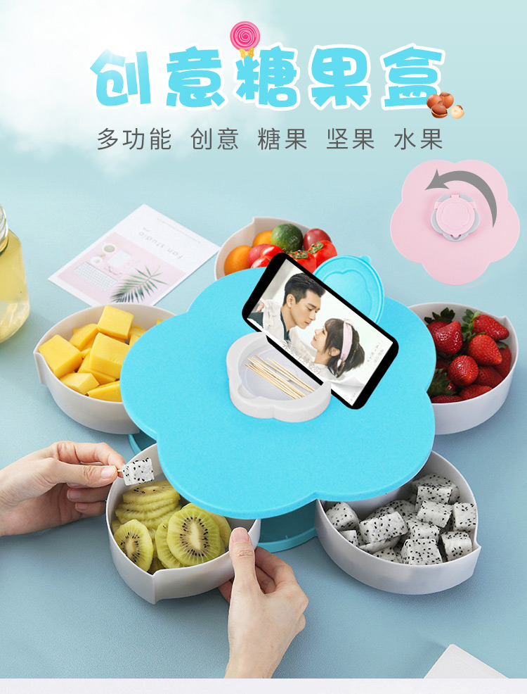 家用懒人创意花瓣旋转果盘,呆萌可爱,边刷剧边嗑瓜子吃水果,解放双手,给你VIP级的舒适享受!【赠运费险】