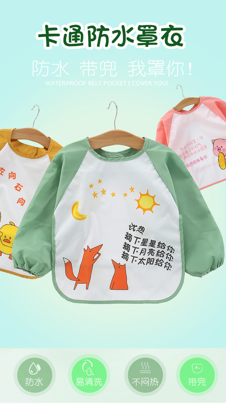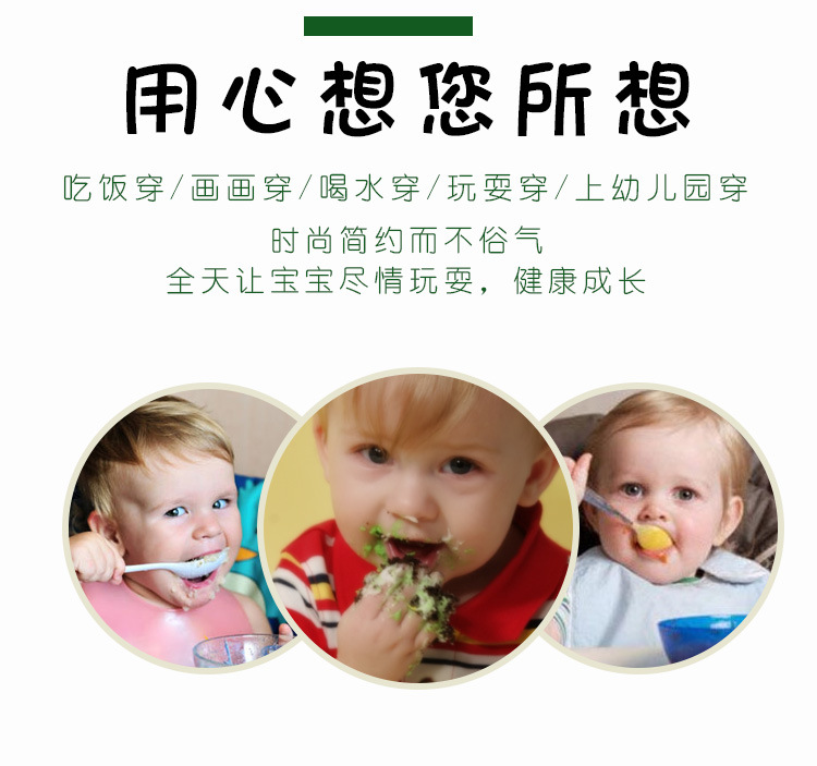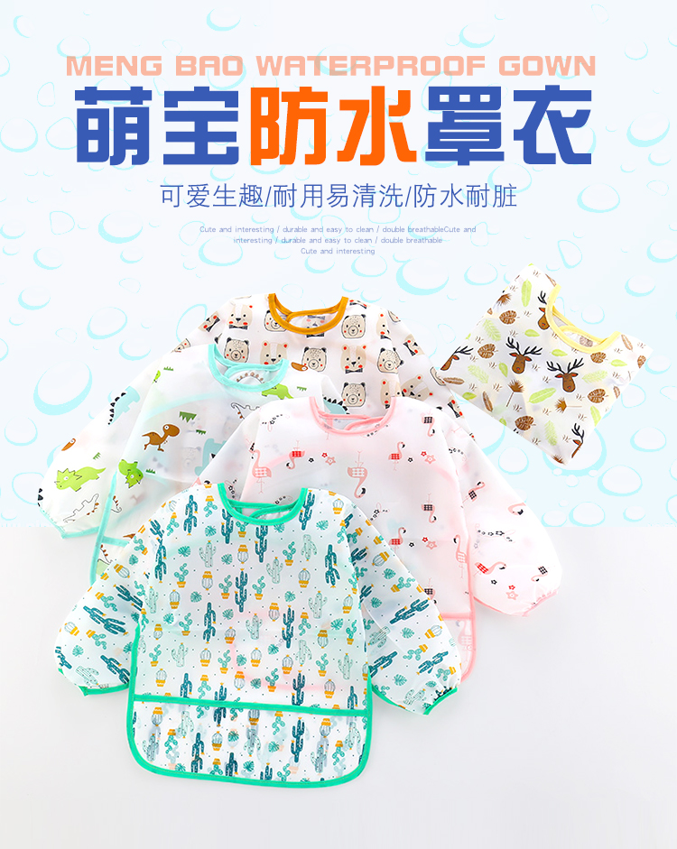 【正品保证】多款可选,家有萌娃必备~时尚卡通造型,经典小圆领,后背系带,防水耐脏,柔软舒适,再也不担心宝宝吃饭弄脏衣服了!一衣多穿,日常也能穿!