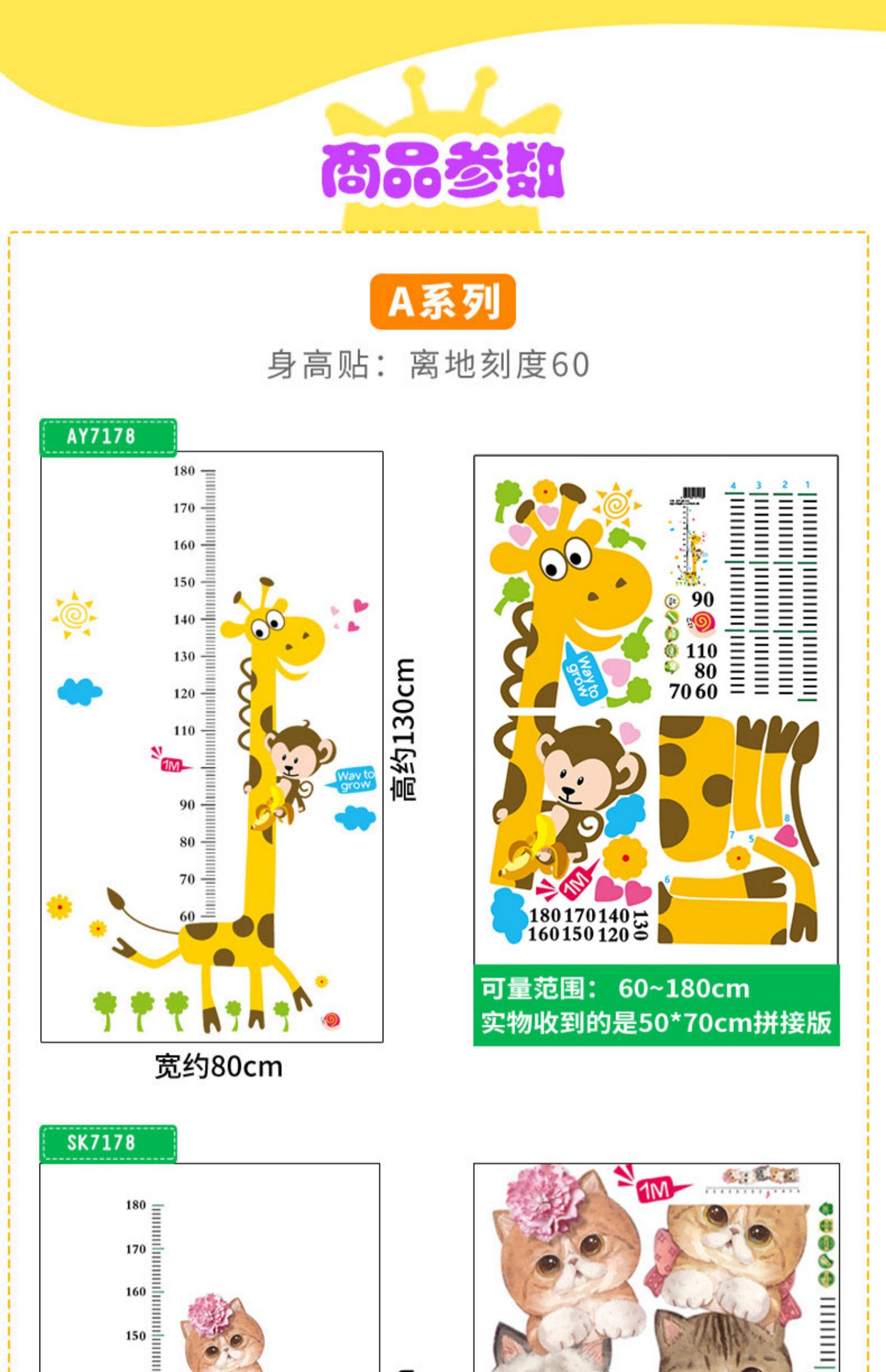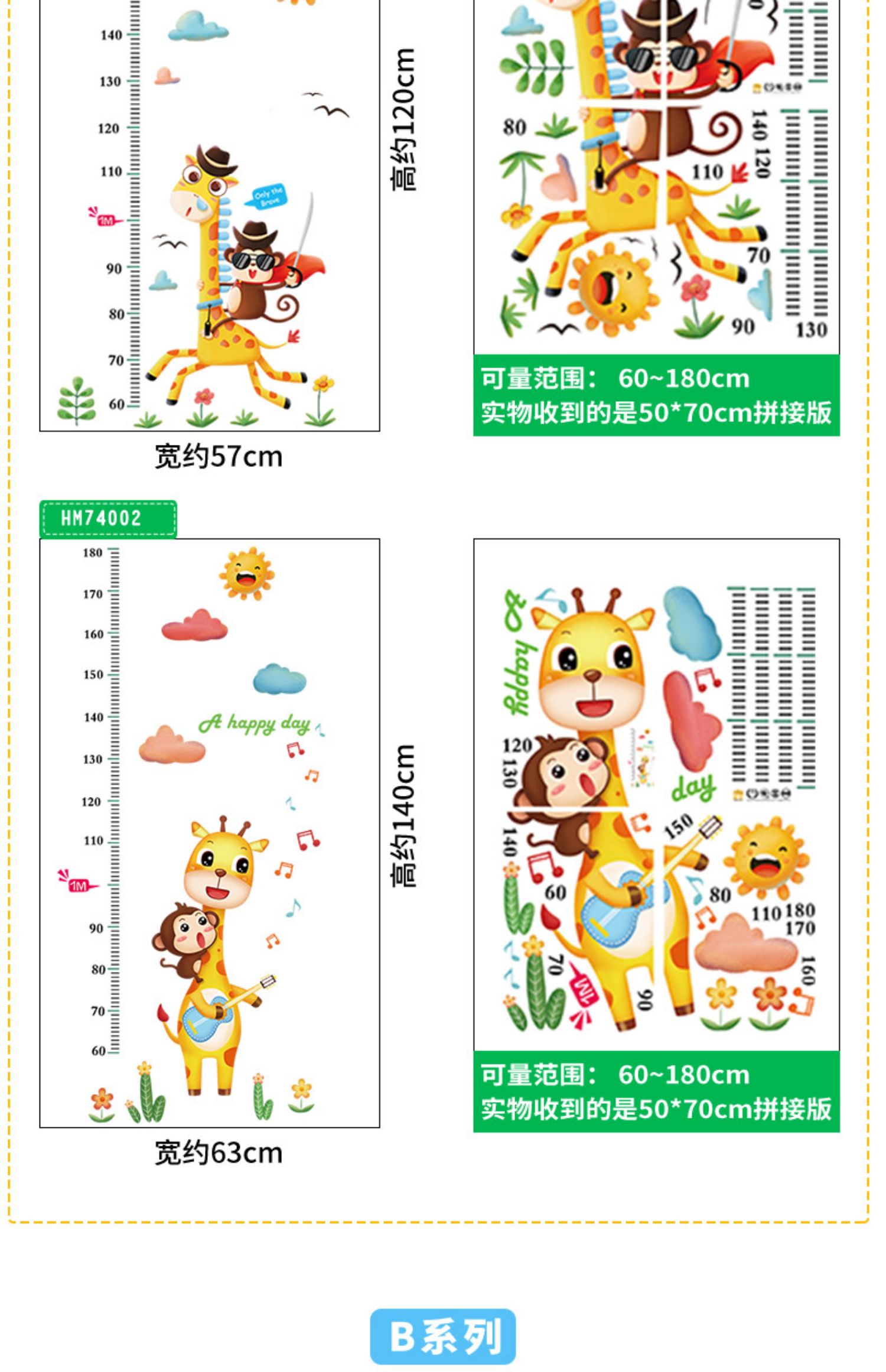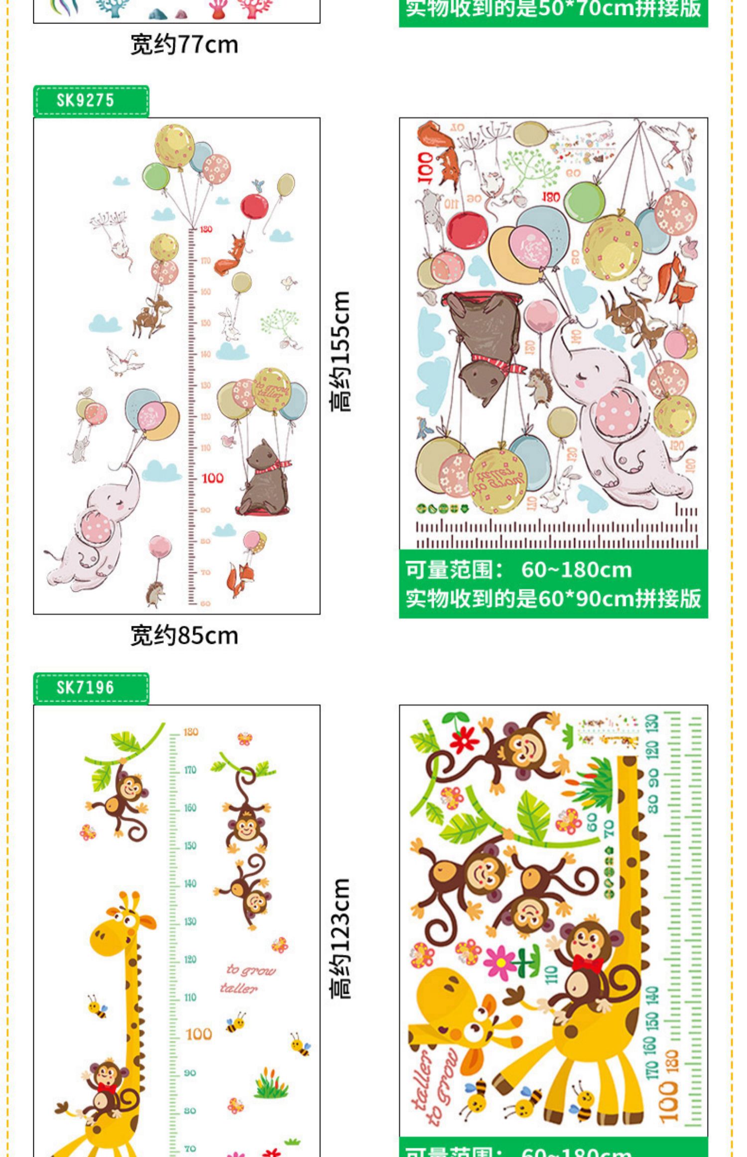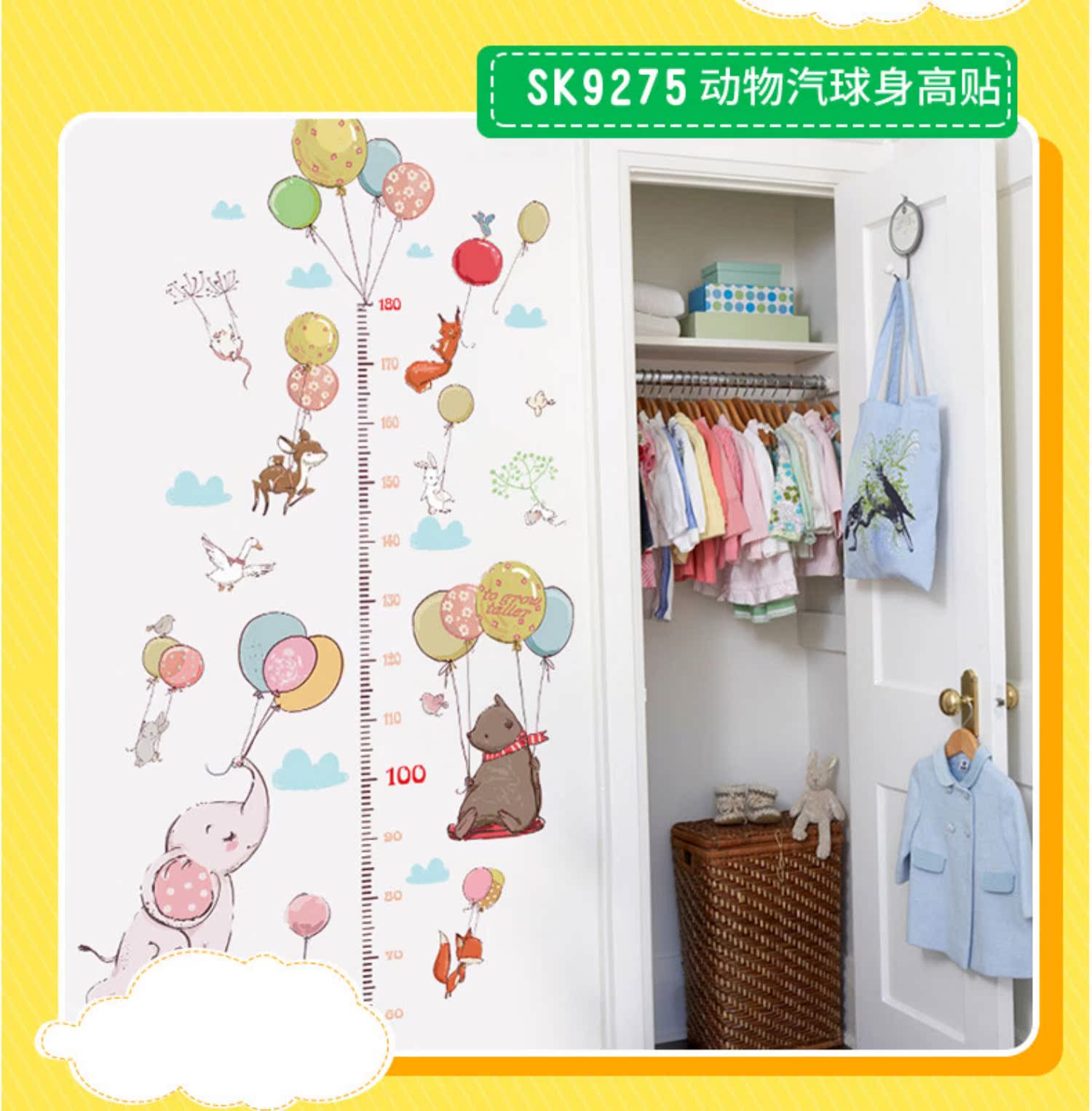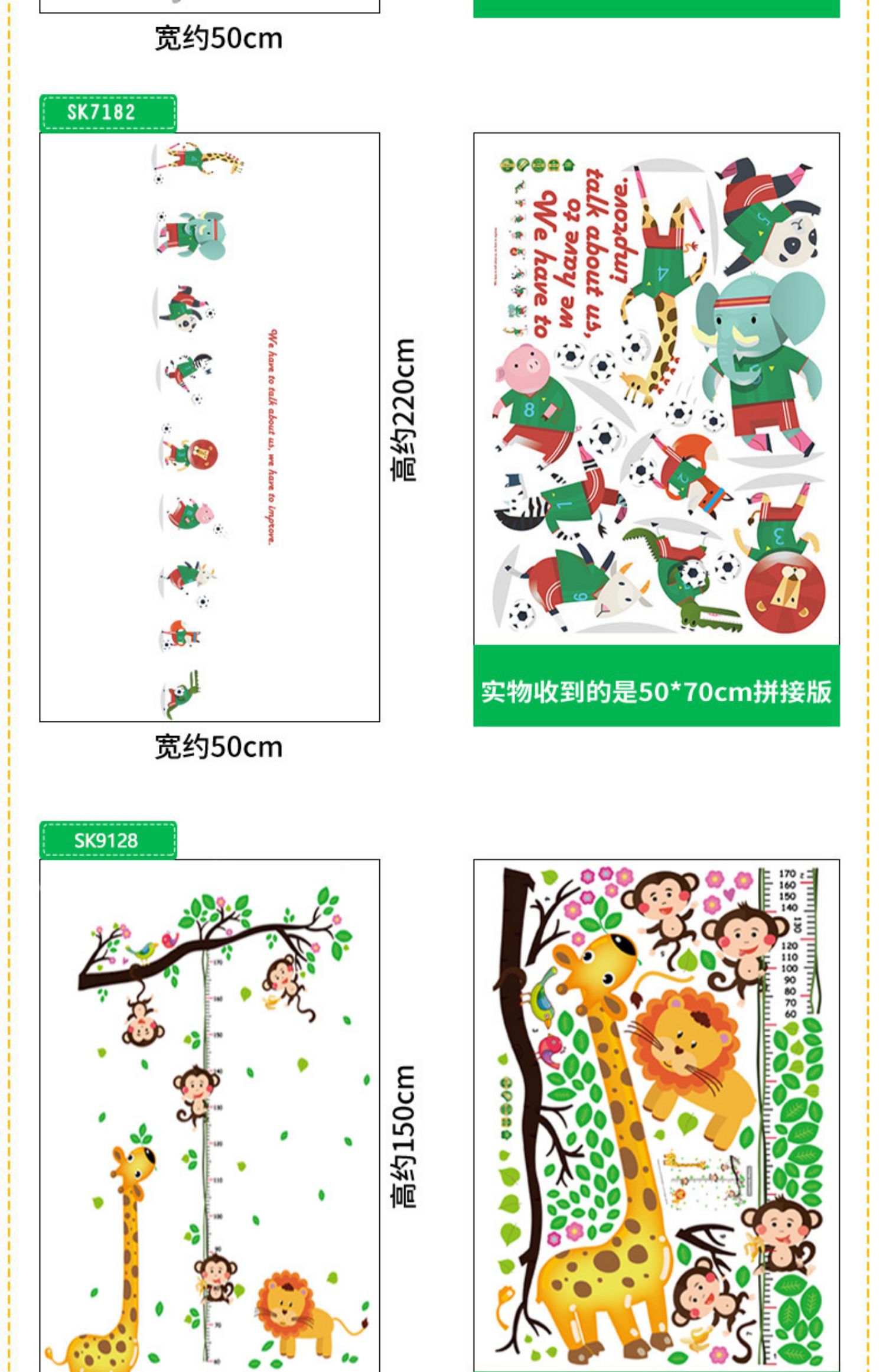 卡通动物儿童宝宝身高贴纸,可移除量身高尺早教墙贴画儿童房墙纸,色泽温和,环保,自粘墙贴,多款可选,儿童房装饰必备!为孩子打造色彩缤纷的家!【包邮】