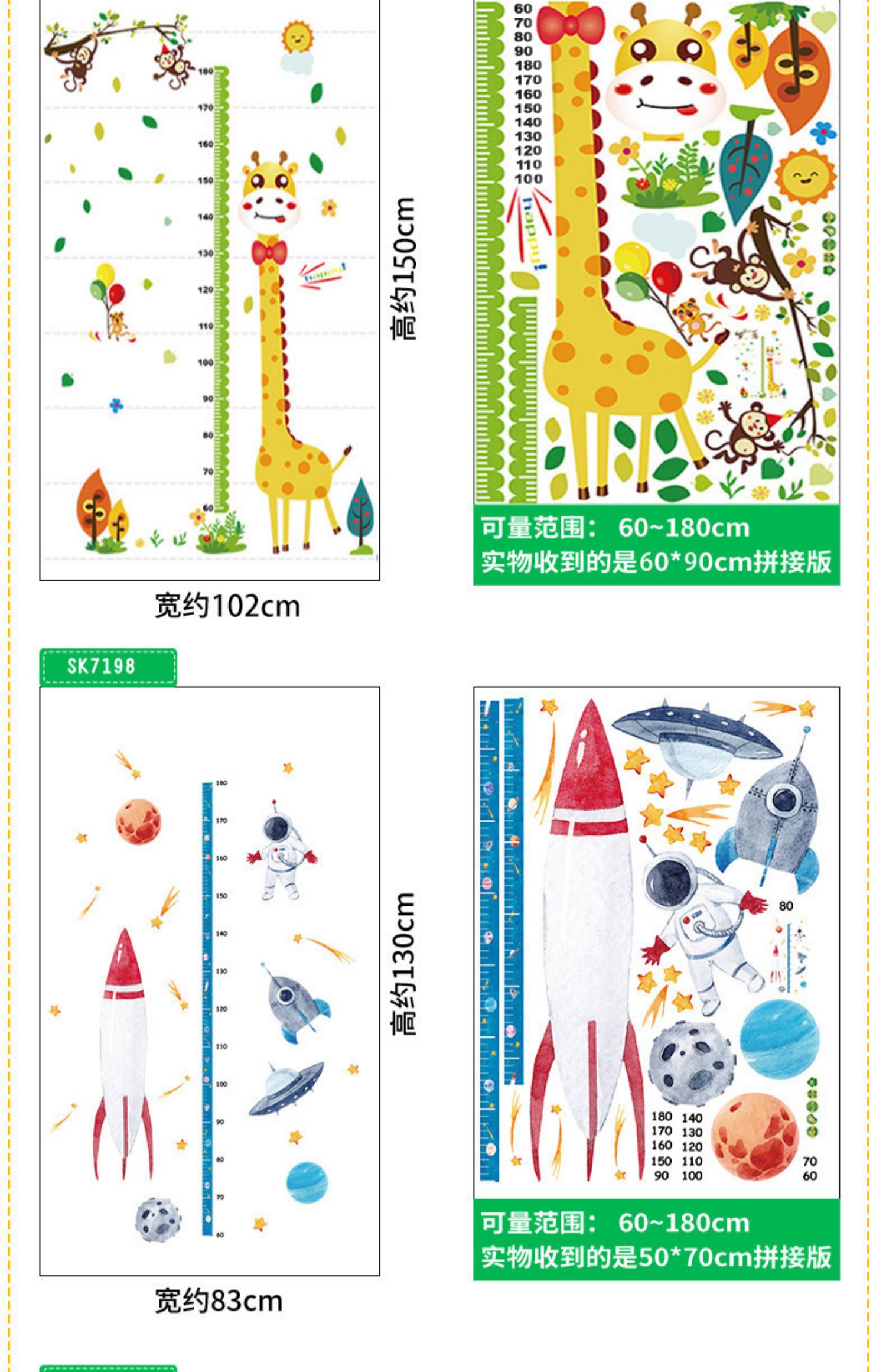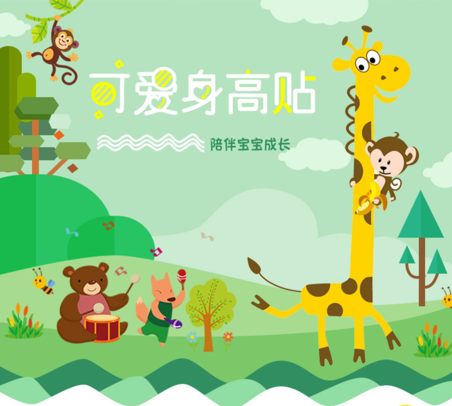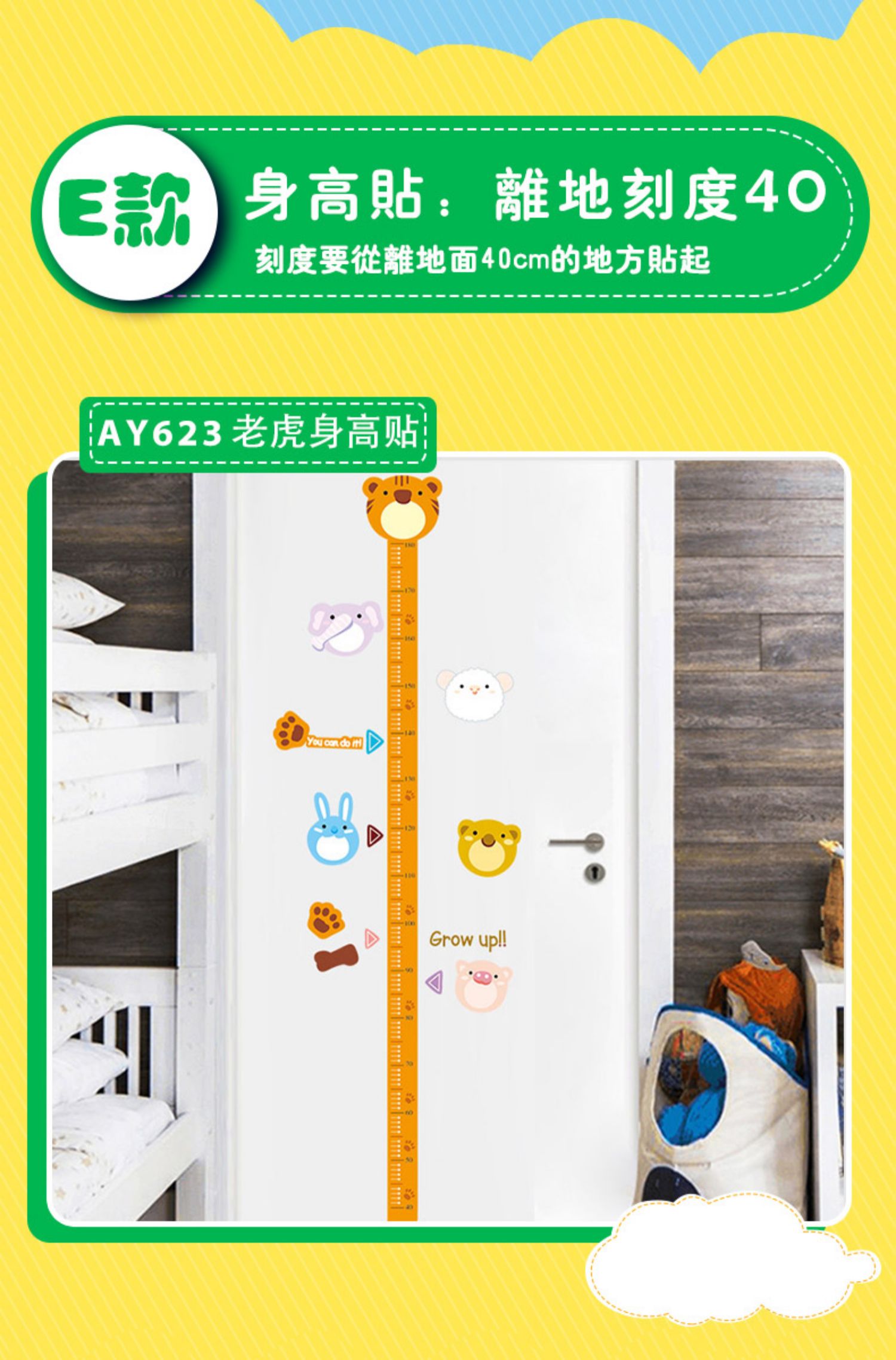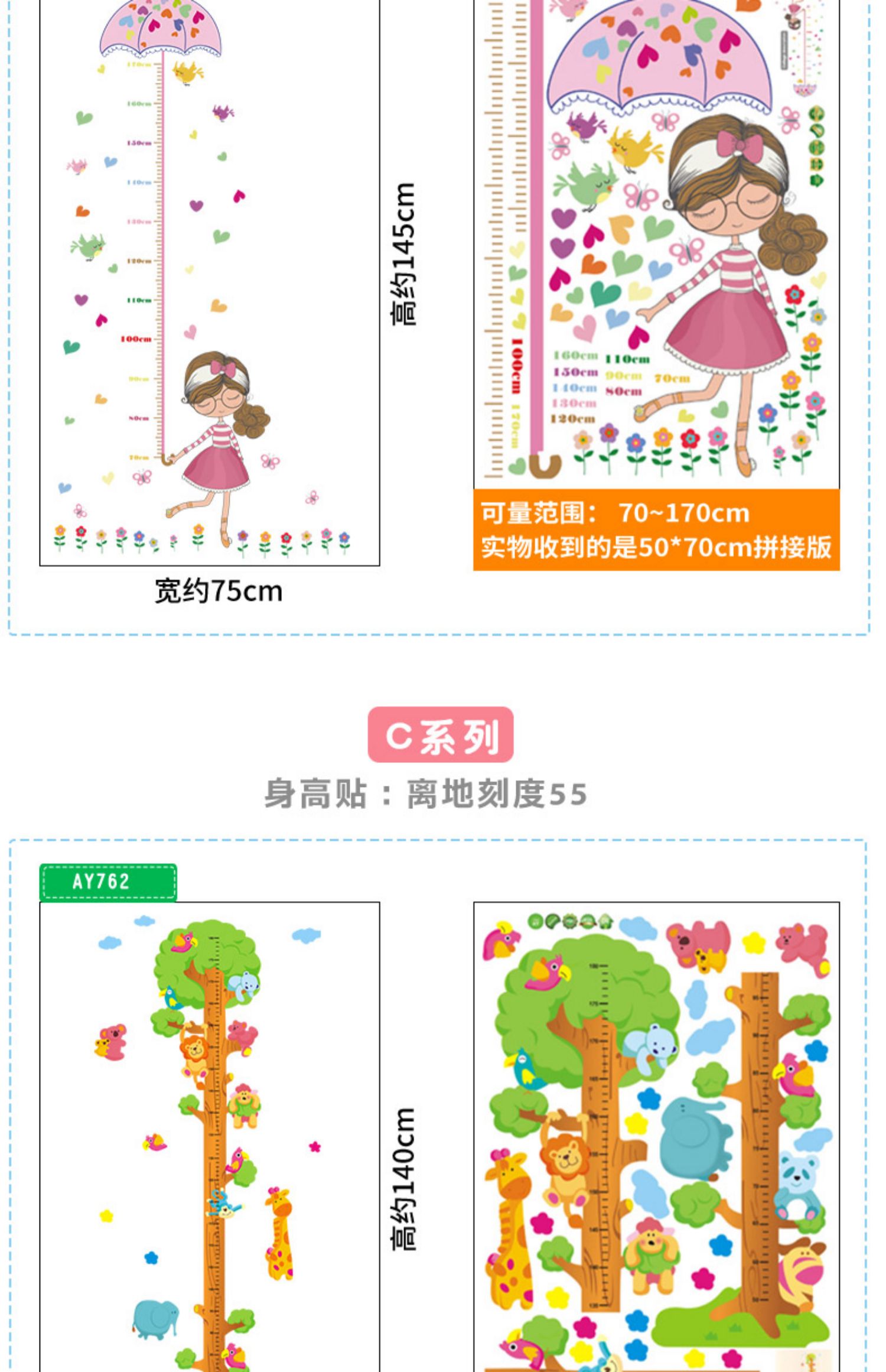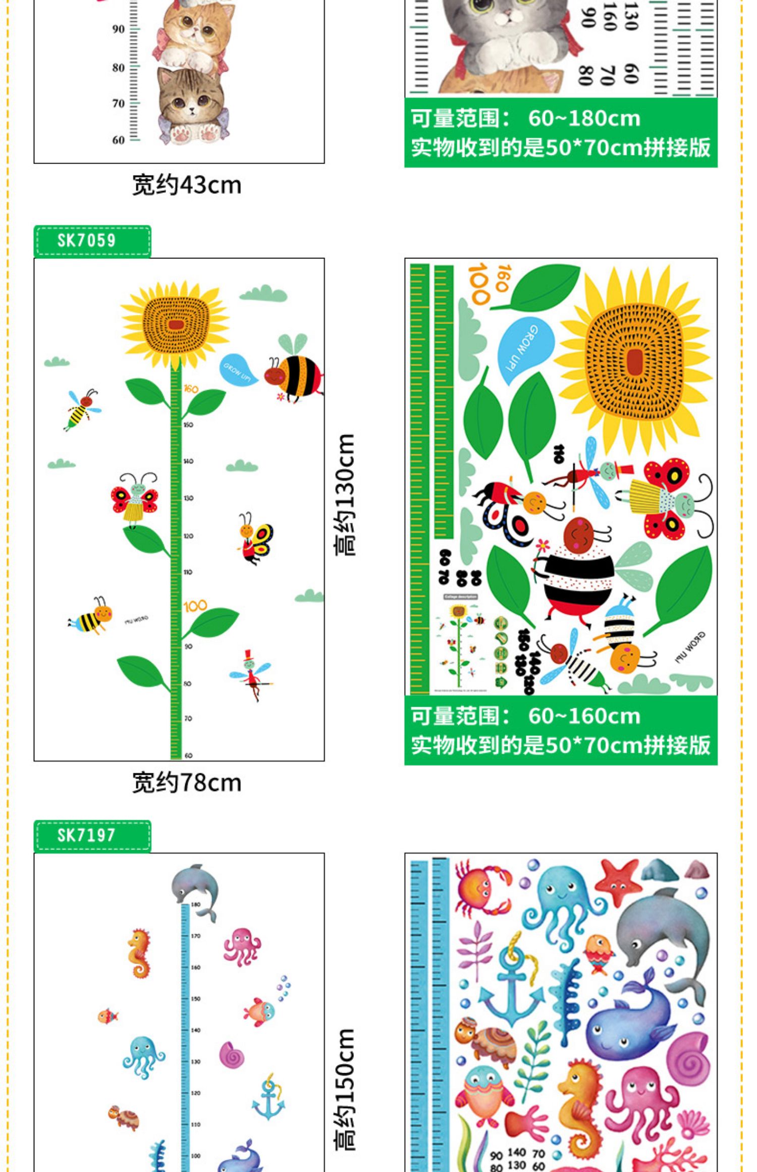 卡通动物儿童宝宝身高贴纸,可移除量身高尺早教墙贴画儿童房墙纸,色泽温和,环保,自粘墙贴,多款可选,儿童房装饰必备!为孩子打造色彩缤纷的家!【包邮】