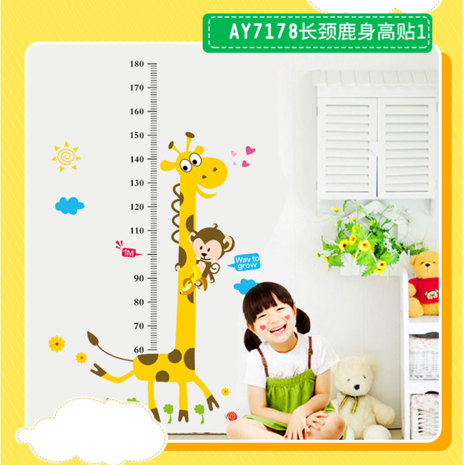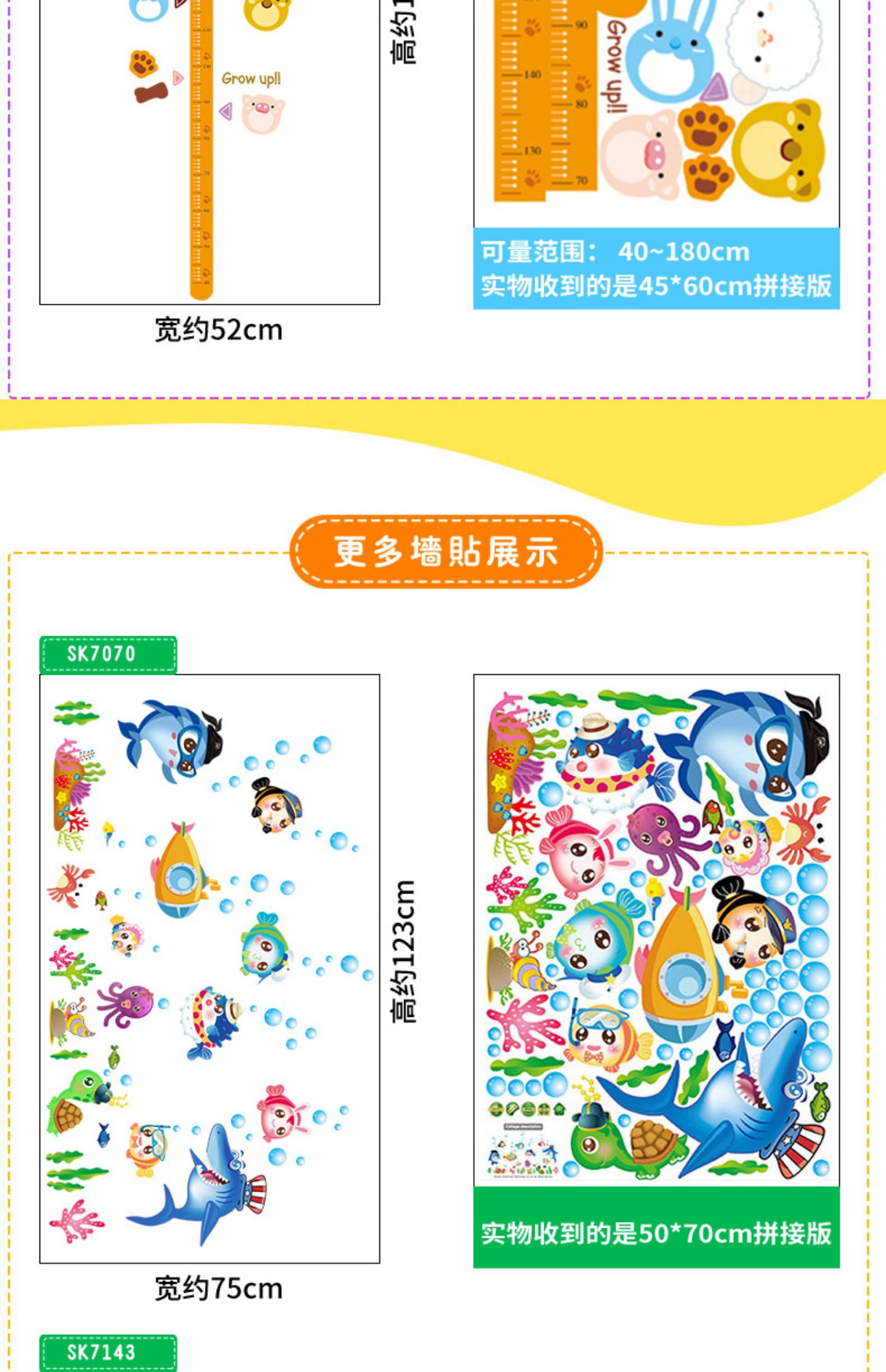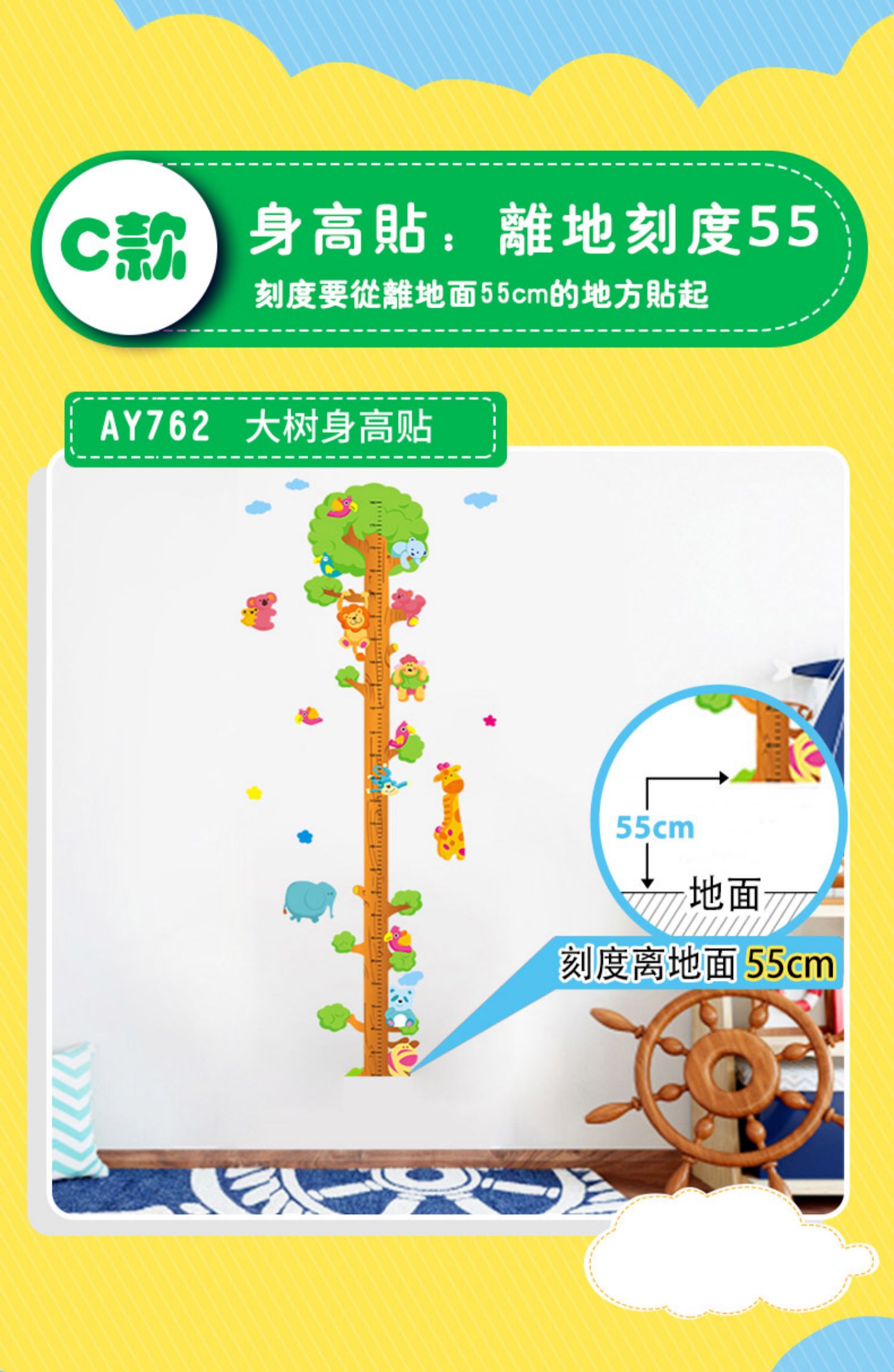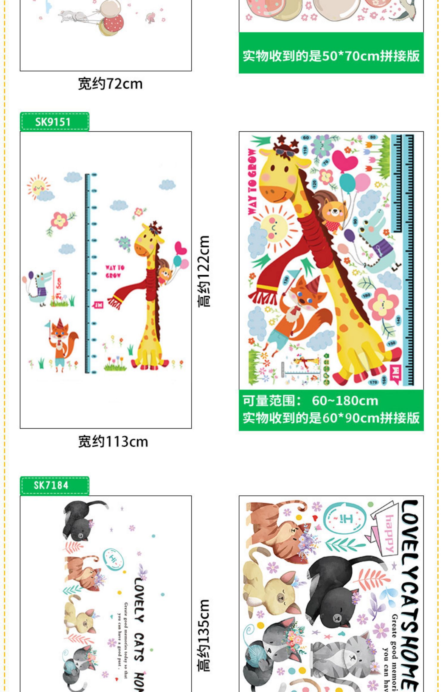 卡通动物儿童宝宝身高贴纸,可移除量身高尺早教墙贴画儿童房墙纸,色泽温和,环保,自粘墙贴,多款可选,儿童房装饰必备!为孩子打造色彩缤纷的家!【包邮】