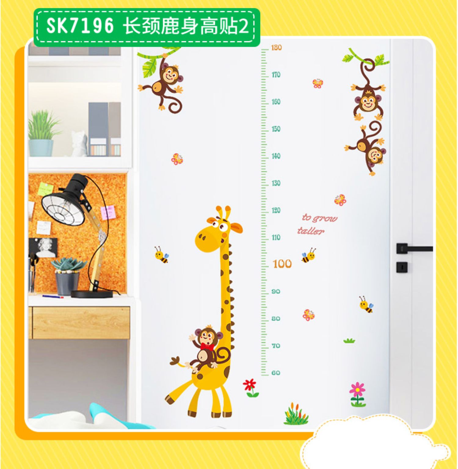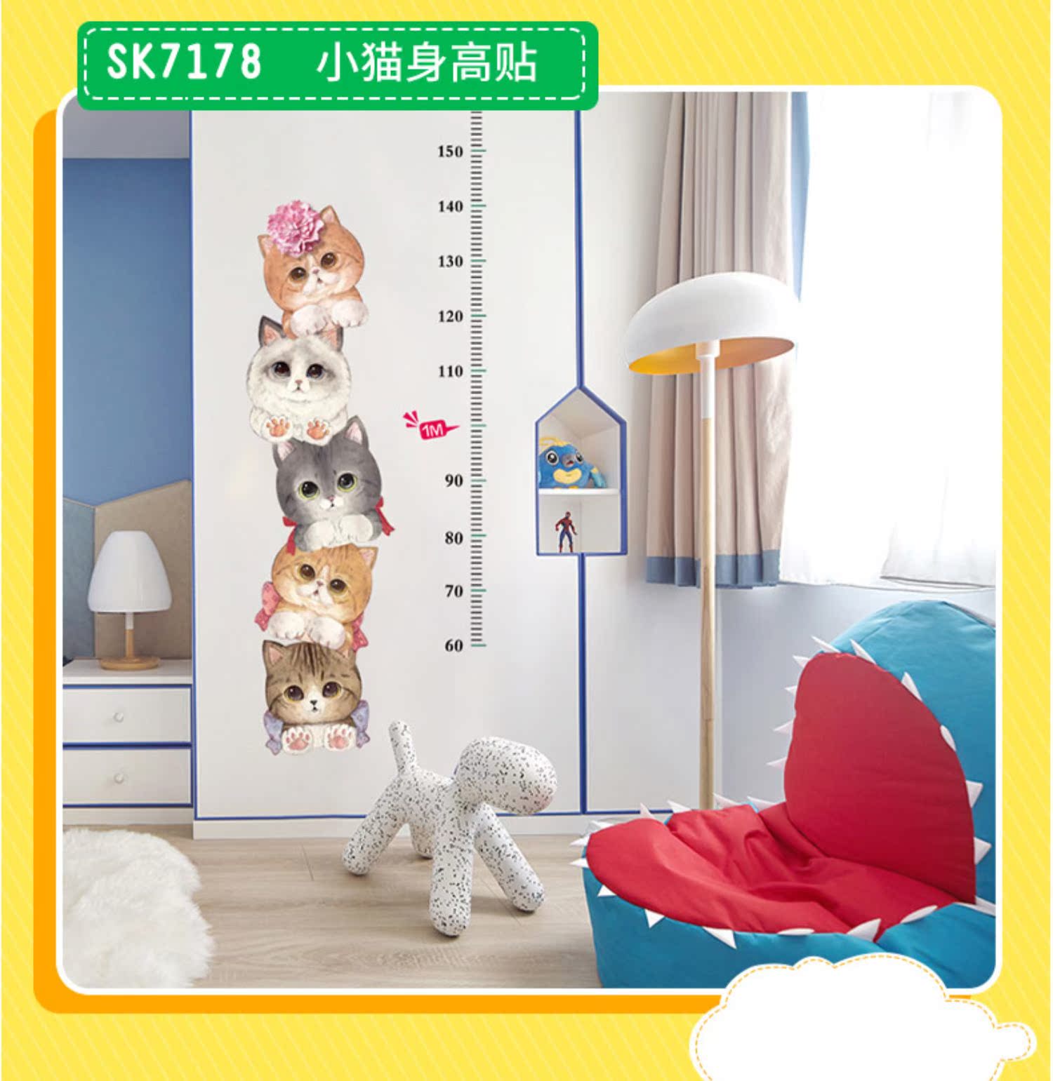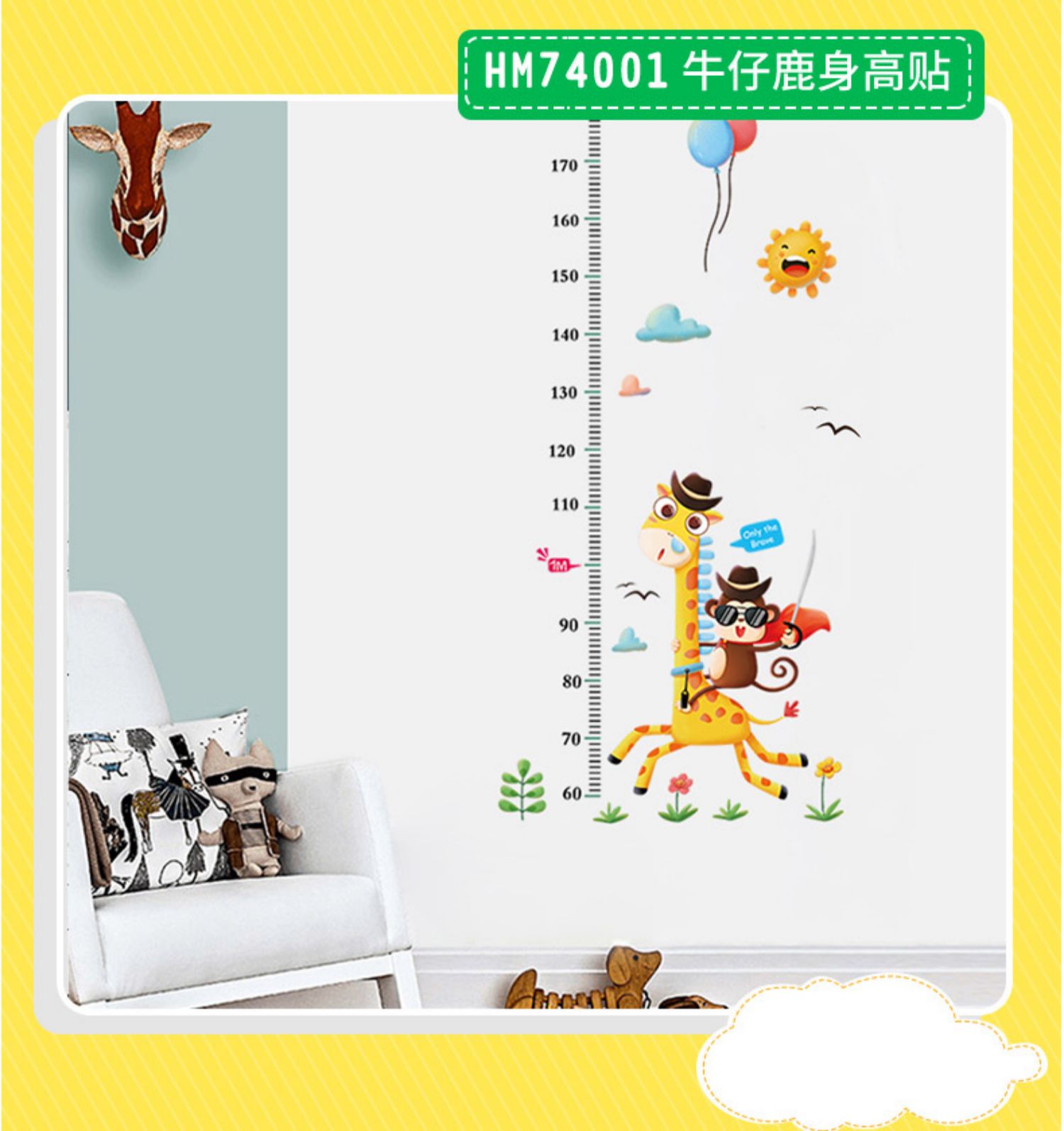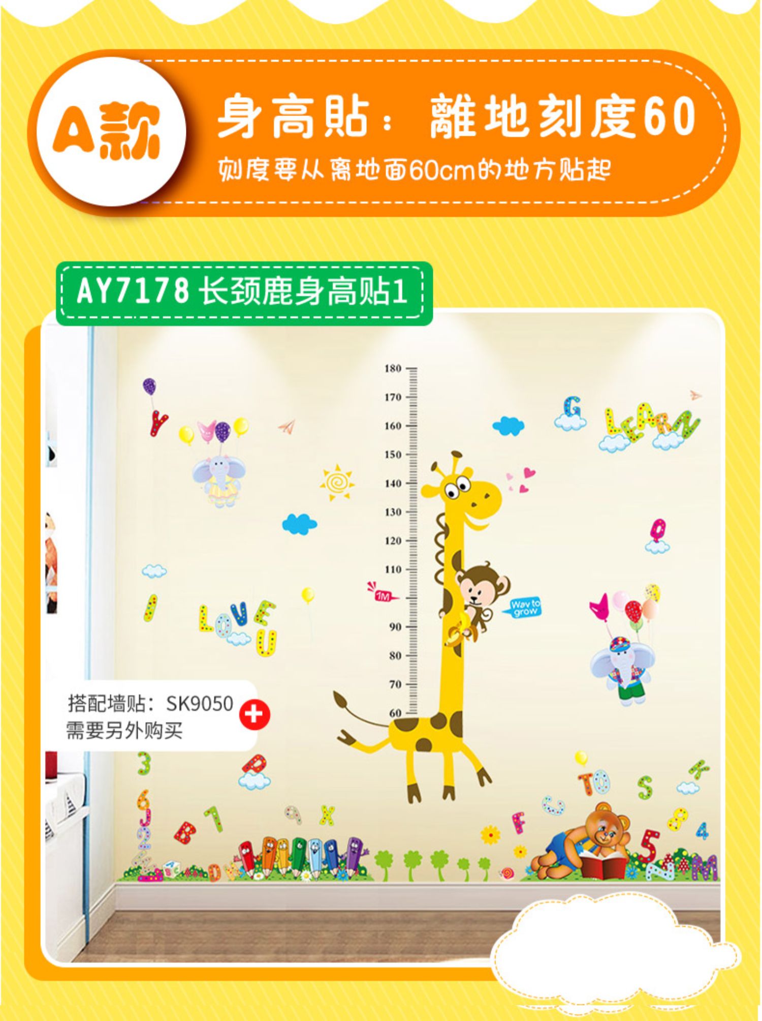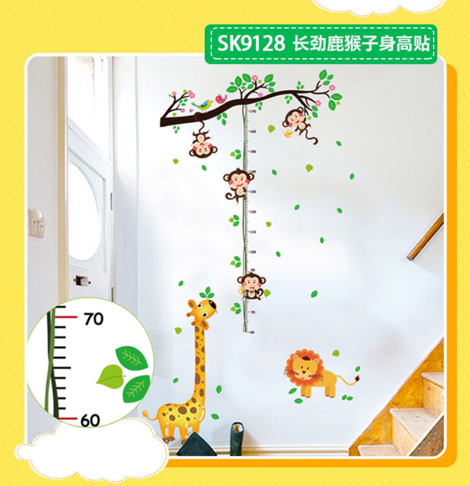 卡通动物儿童宝宝身高贴纸,可移除量身高尺早教墙贴画儿童房墙纸,色泽温和,环保,自粘墙贴,多款可选,儿童房装饰必备!为孩子打造色彩缤纷的家!【包邮】