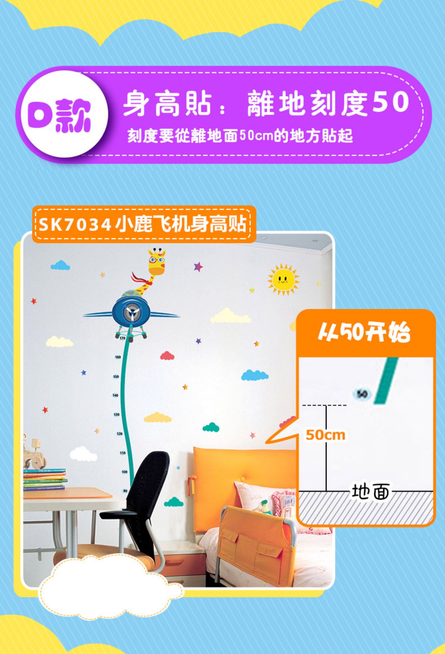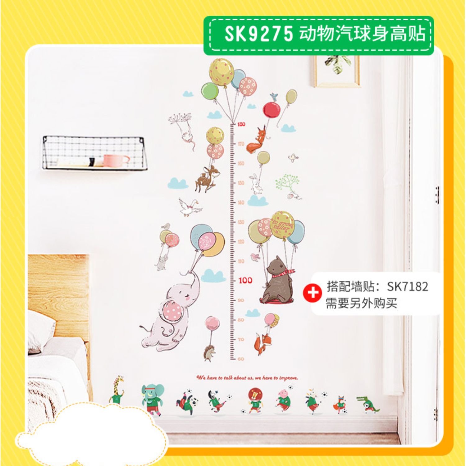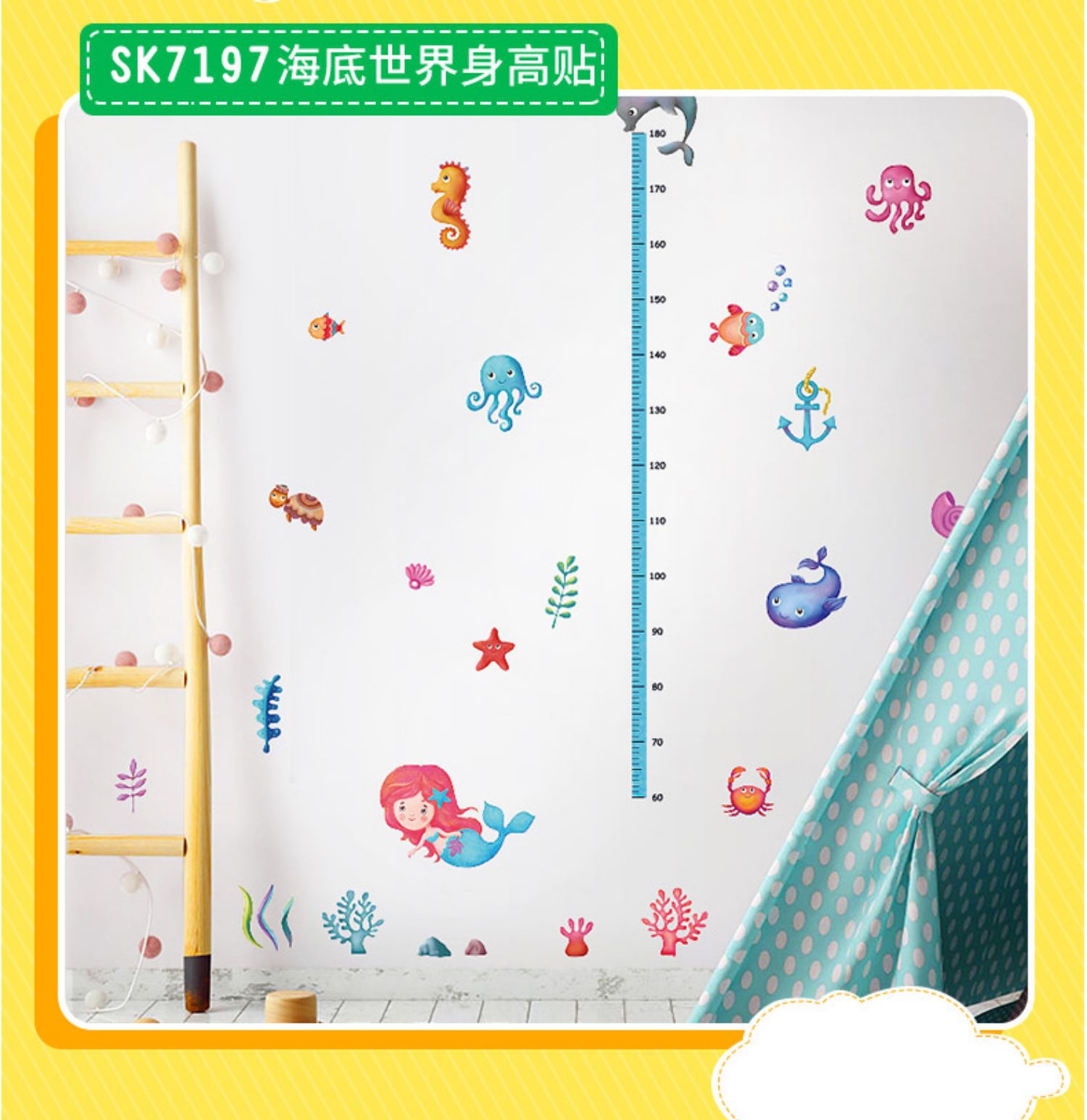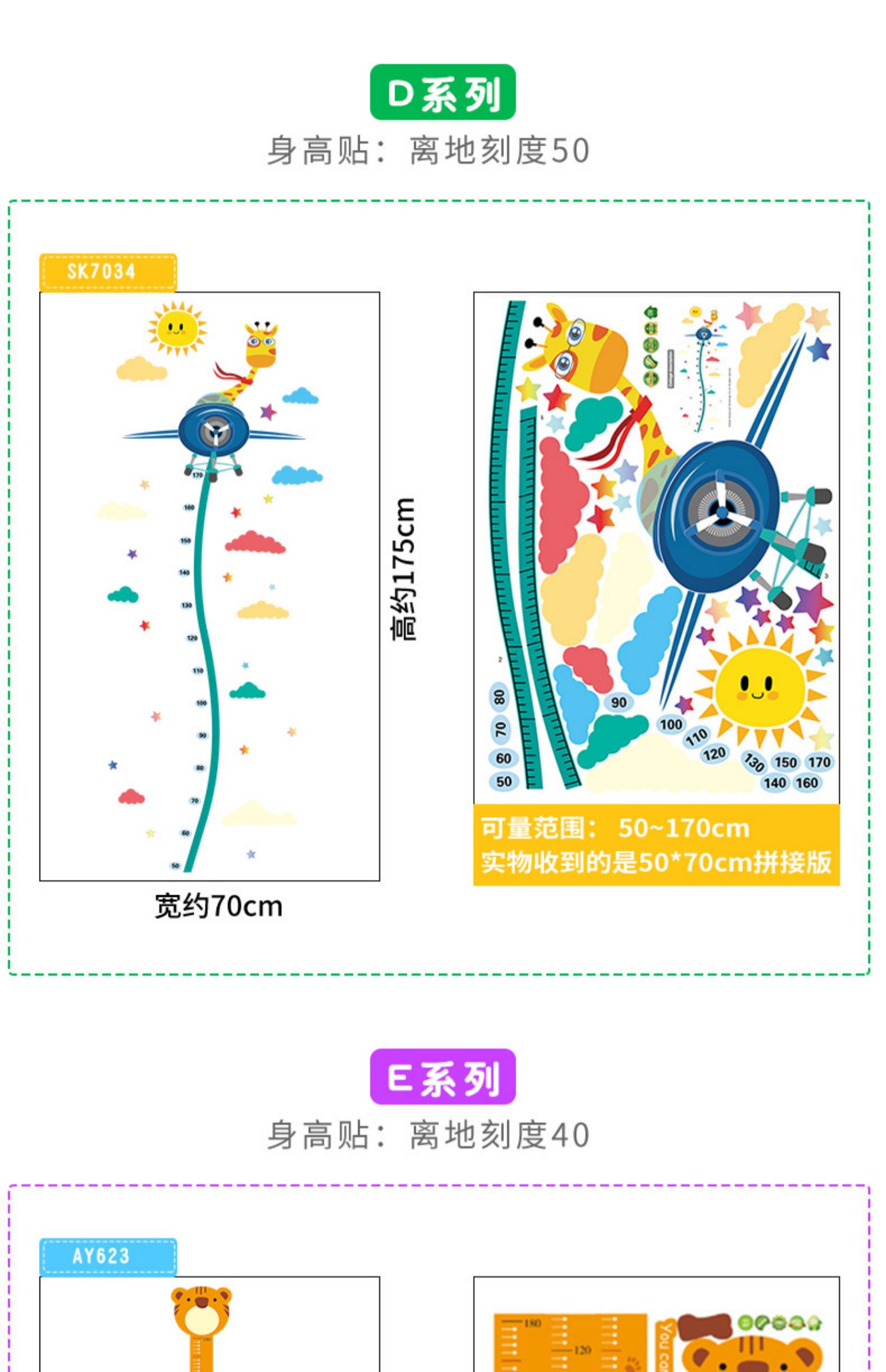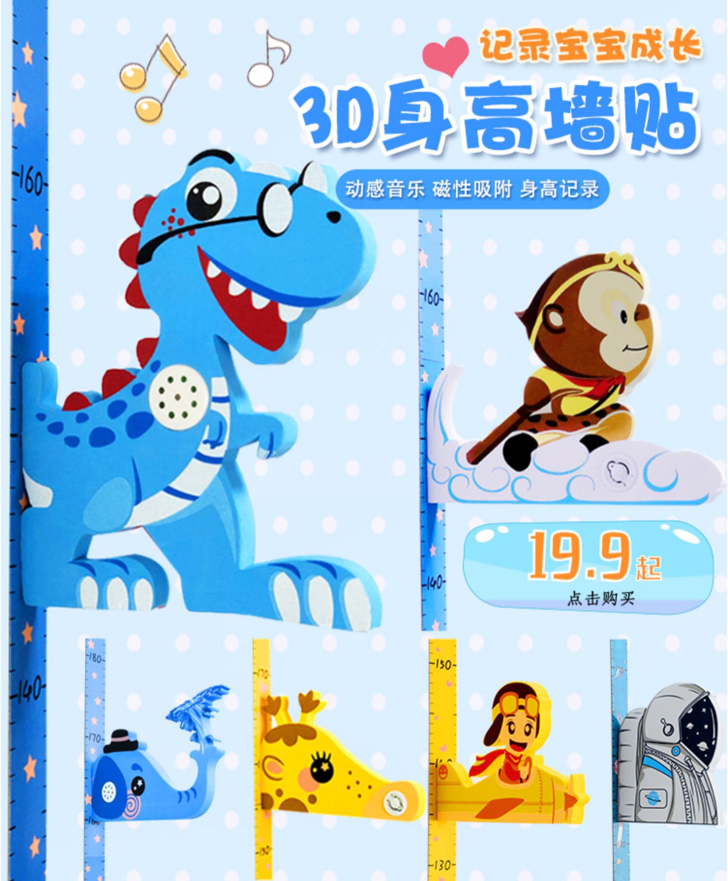 卡通动物儿童宝宝身高贴纸,可移除量身高尺早教墙贴画儿童房墙纸,色泽温和,环保,自粘墙贴,多款可选,儿童房装饰必备!为孩子打造色彩缤纷的家!【包邮】
