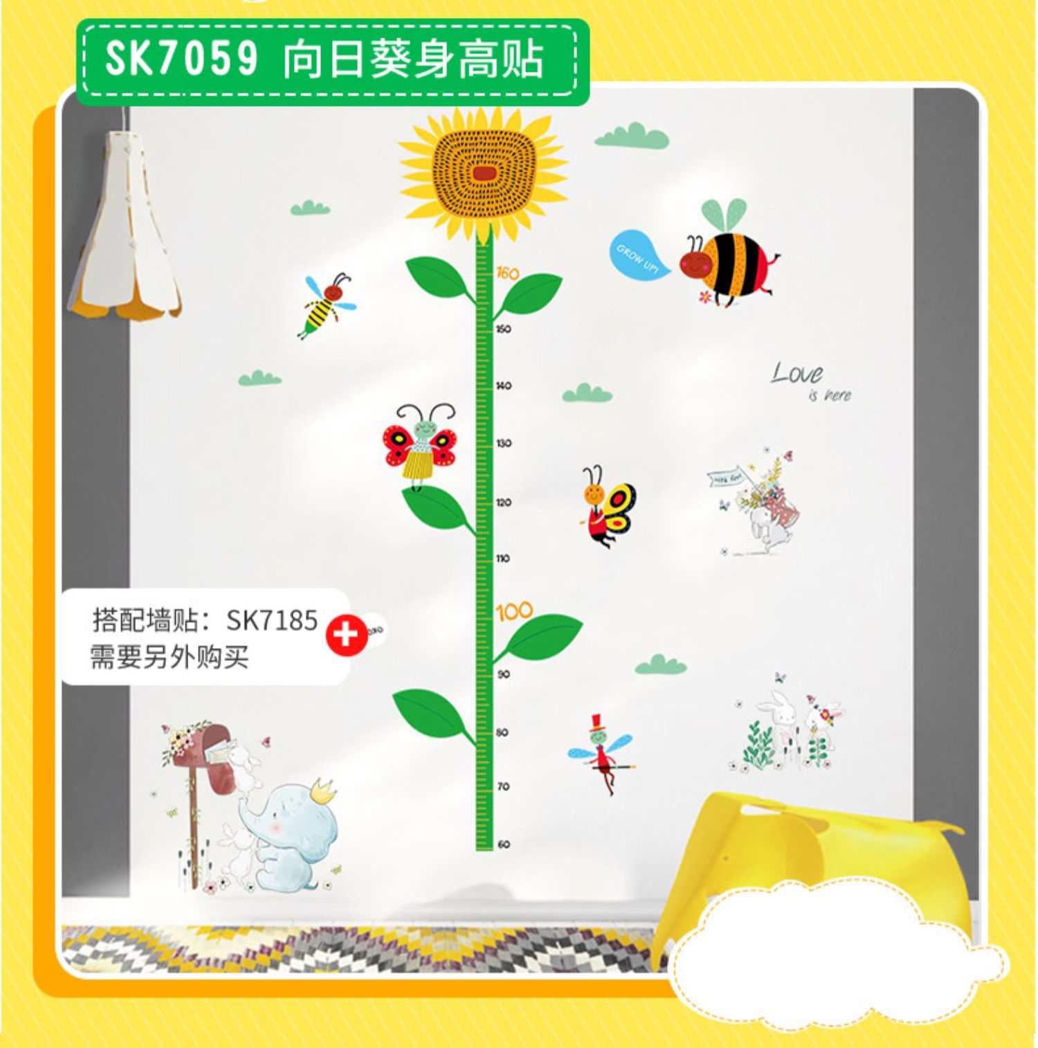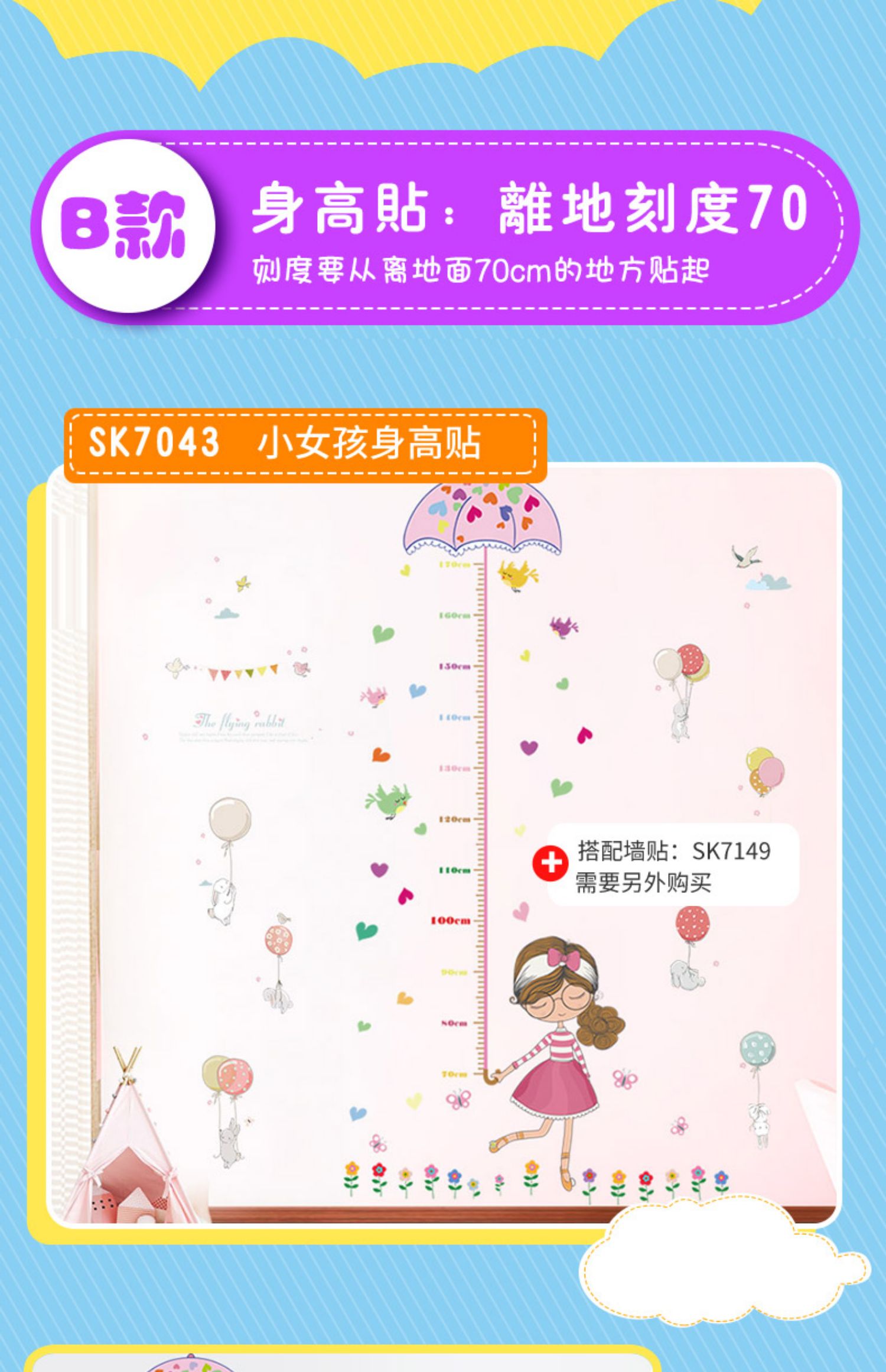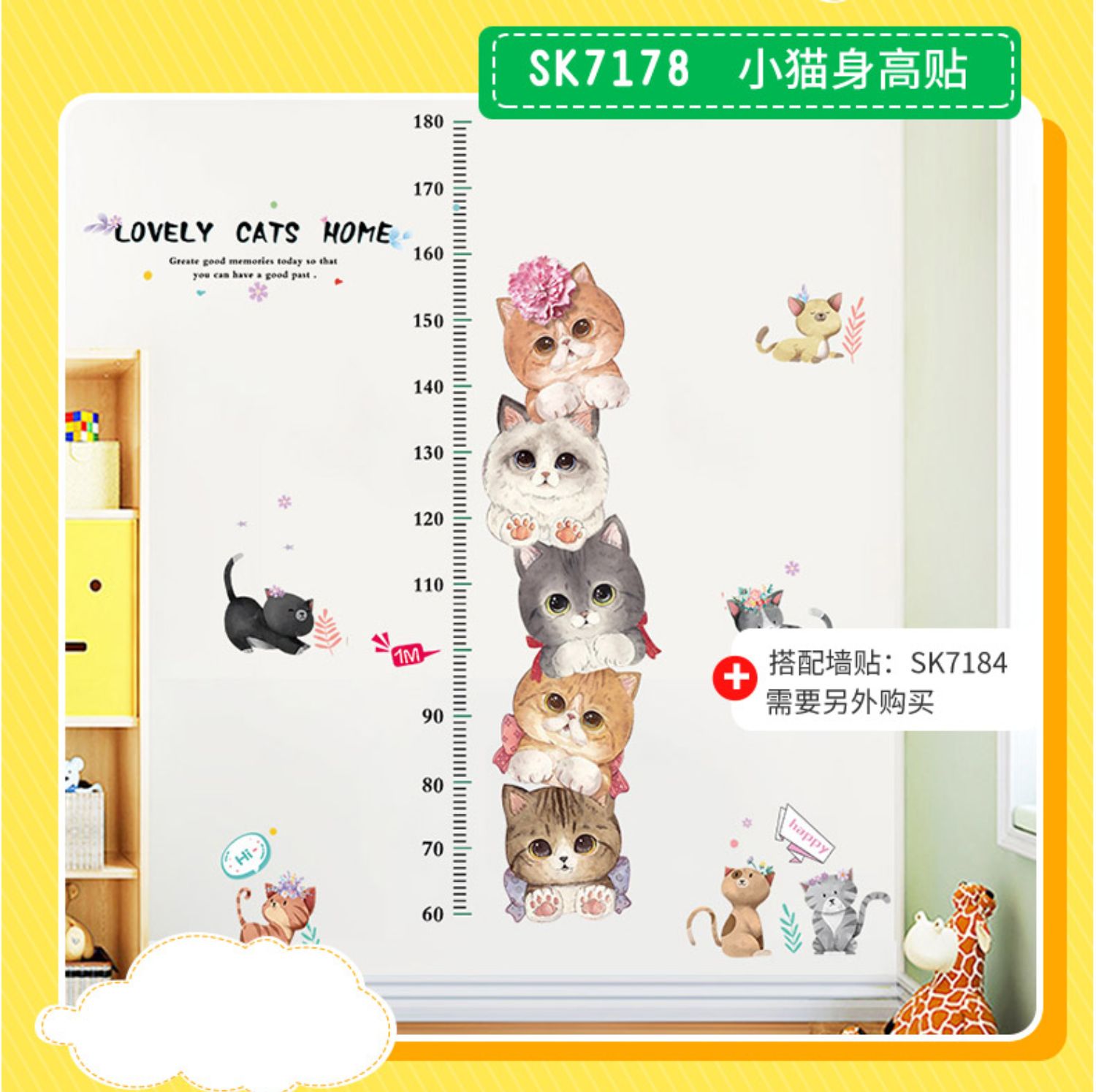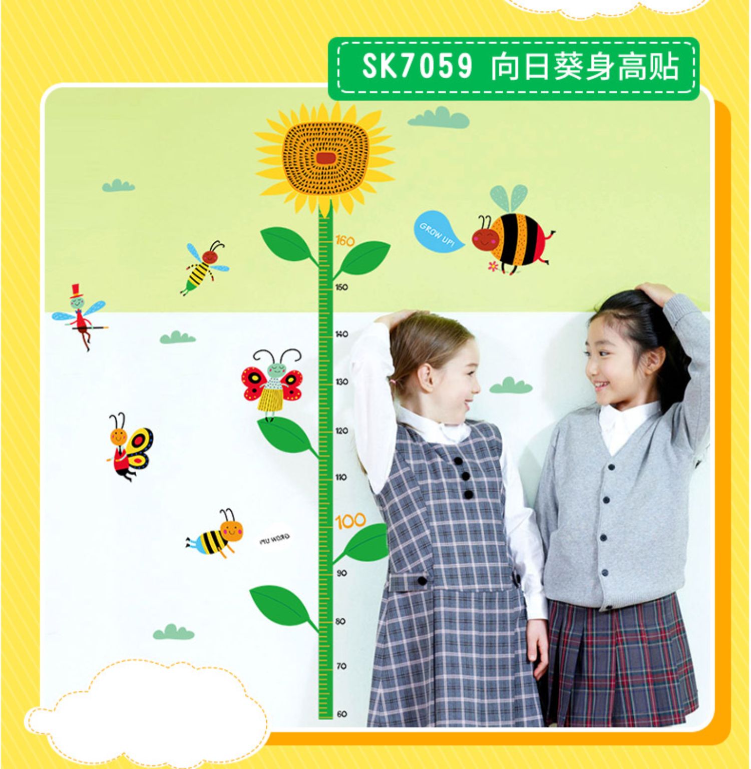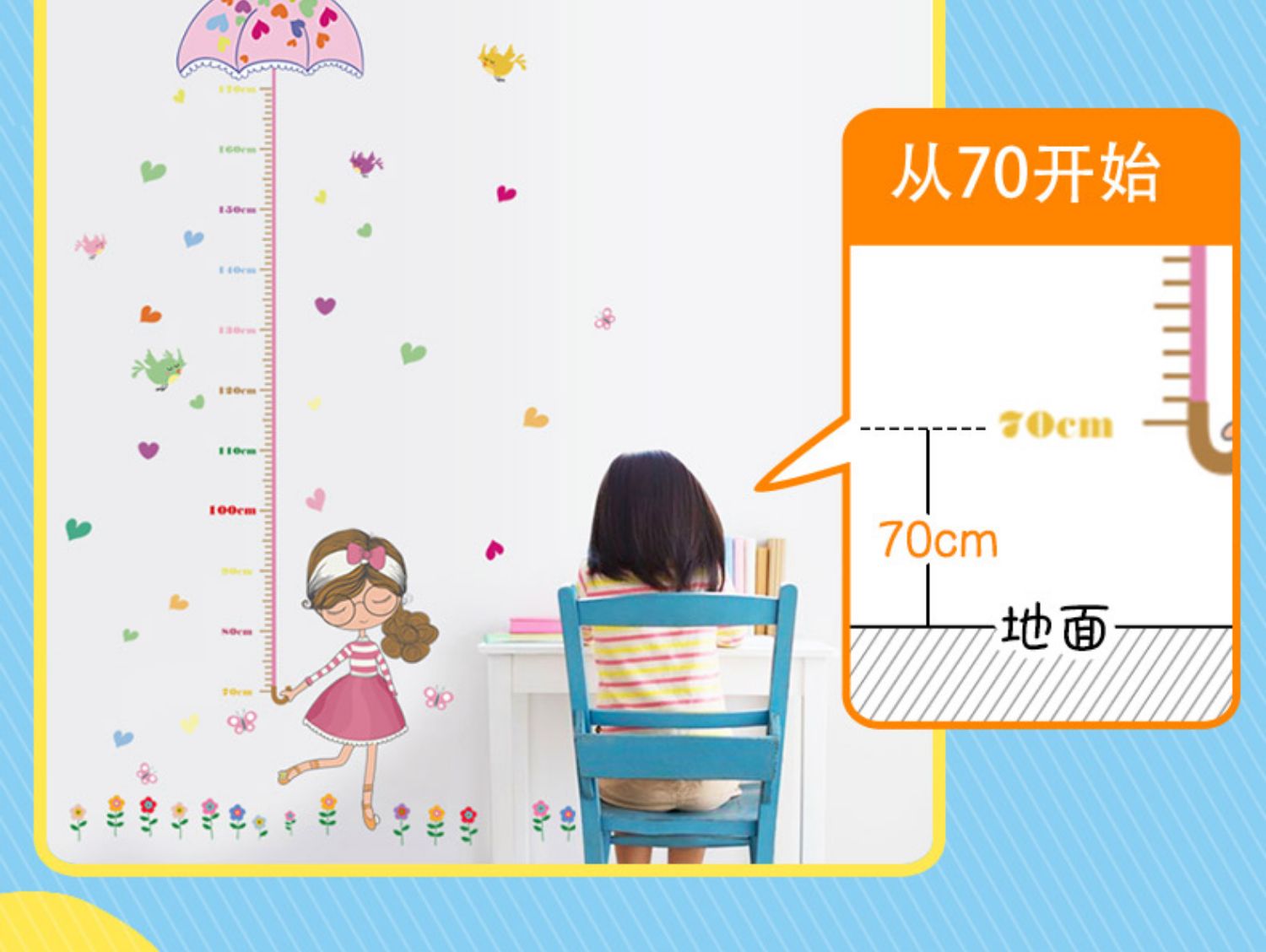 卡通动物儿童宝宝身高贴纸,可移除量身高尺早教墙贴画儿童房墙纸,色泽温和,环保,自粘墙贴,多款可选,儿童房装饰必备!为孩子打造色彩缤纷的家!【包邮】