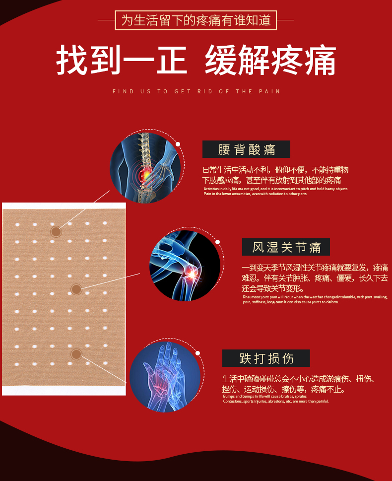 【一正】壹药家医用冷敷贴,祛风除湿、消炎止痛、活血散瘀、通经活络,分为腰椎型,颈椎型,肩周型,骨质增生型,关节型,腱鞘型,足跟型。对常见的风湿骨痛,颈肩腰腿痛有很好的康复效果