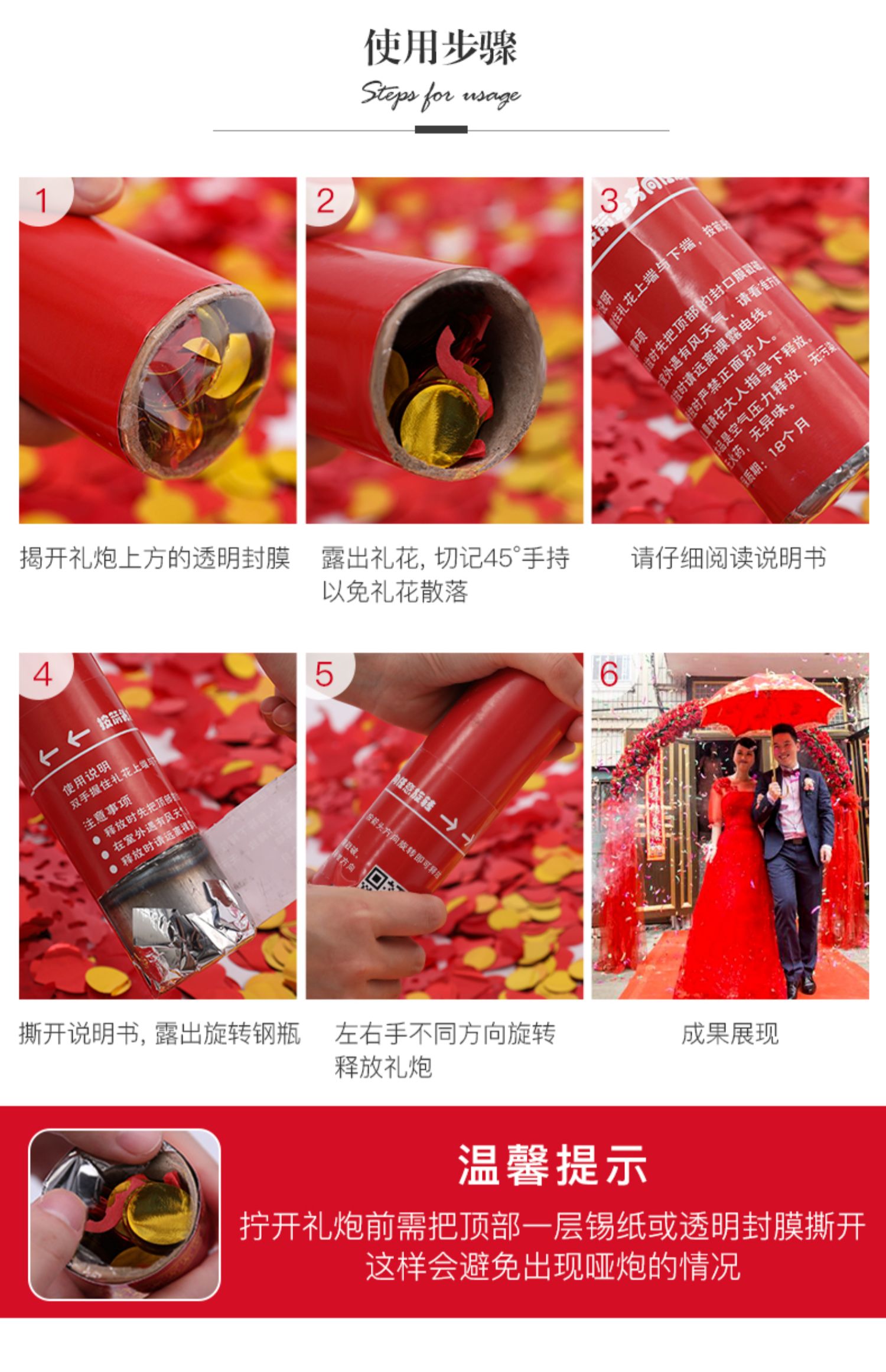 优质加厚婚庆红包礼炮,婚庆套装,开业礼炮,可选种款式,个性创意,出跑率高,哑炮必赔!射程远,使用范围广,用料考究,佳节新年婚庆开业用品,婚庆必备哦!