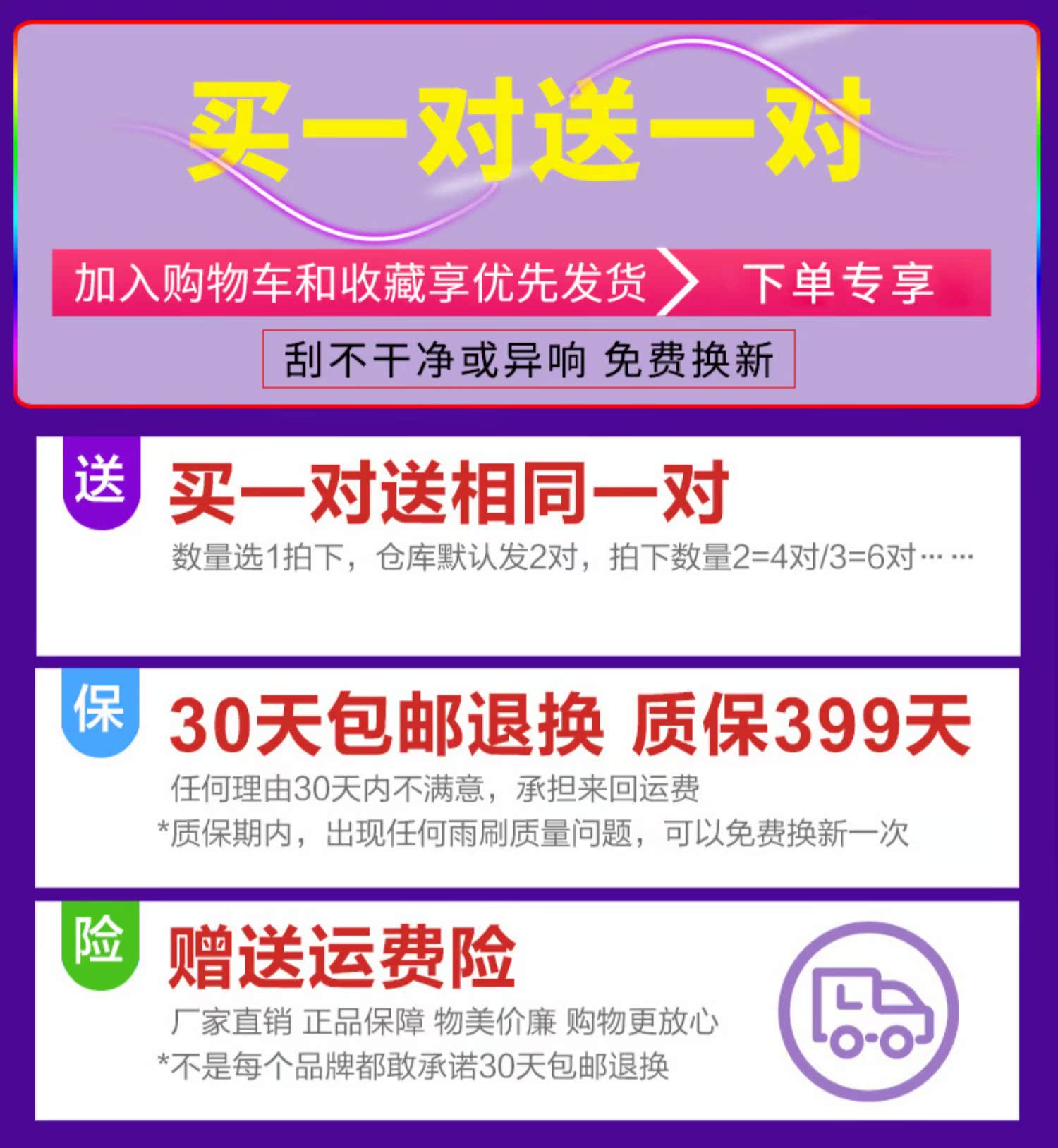 【适合99%车型】优质材料,专车专用,告别频换更换雨刷的烦恼,高清静音耐用,需要什么车型请备注,399天质量问题包换【赠运费险】